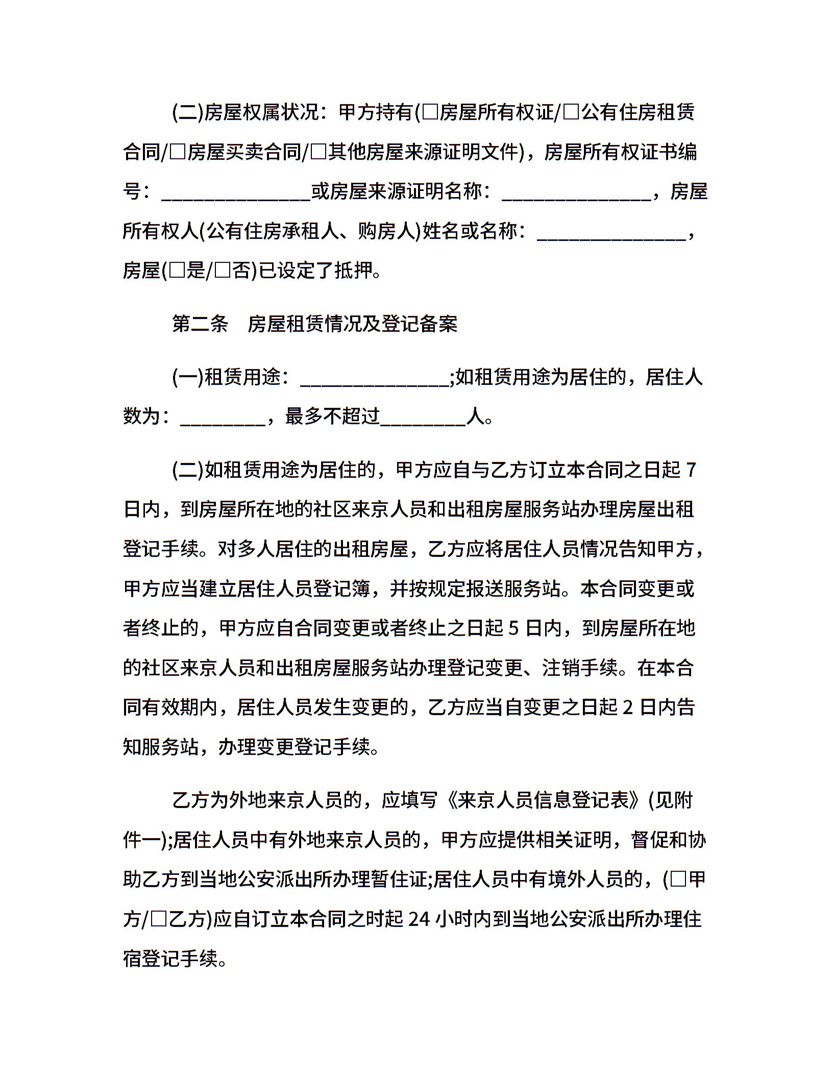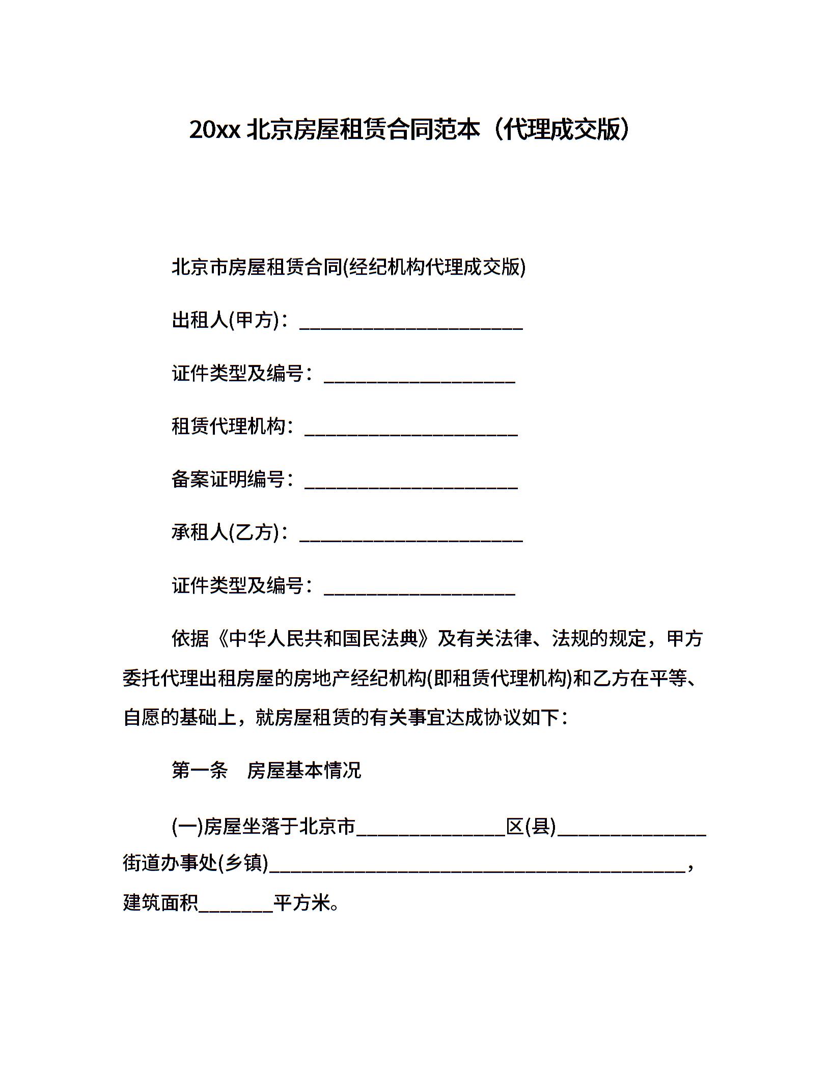 20xx北京房屋租赁合同范本(代理成交版)
