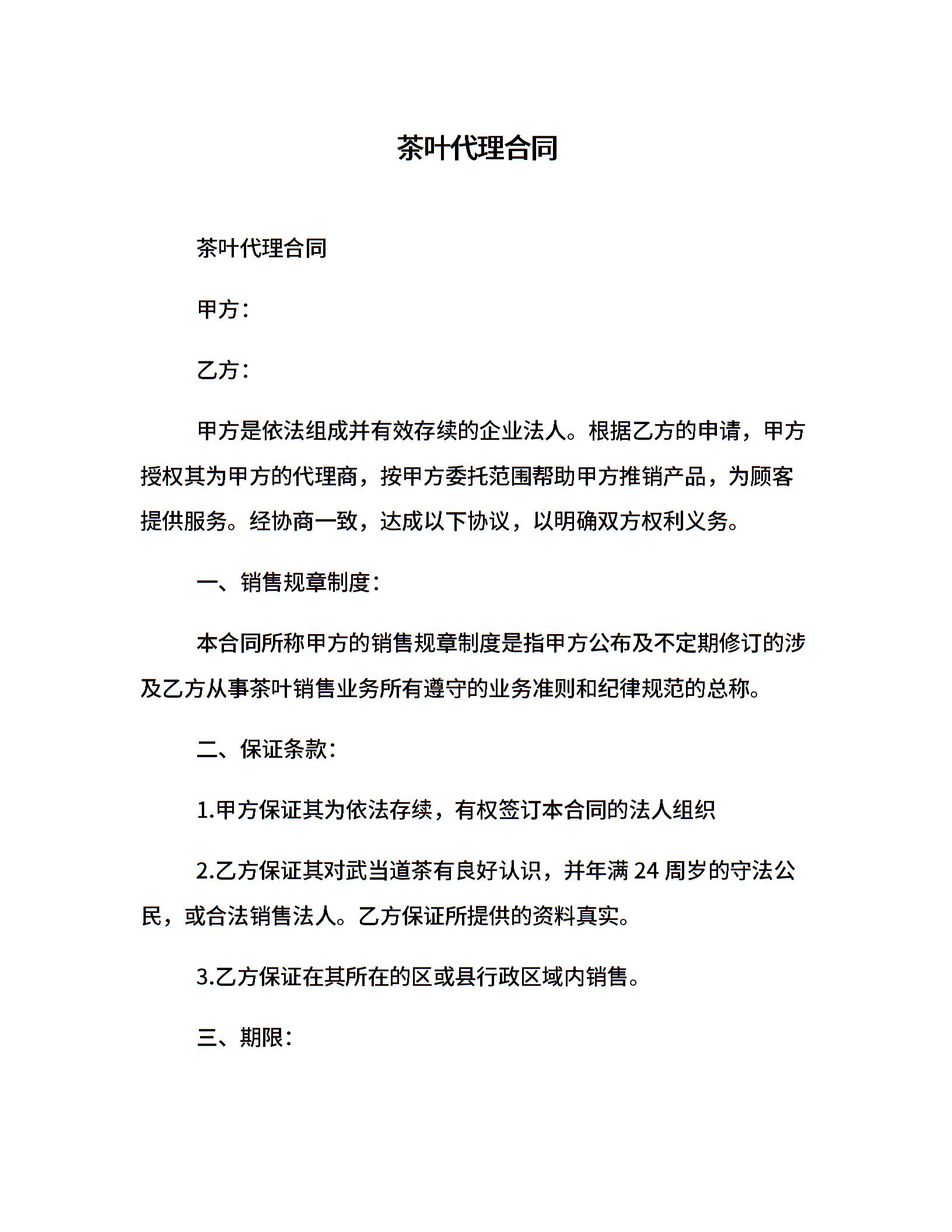 茶叶代理合同