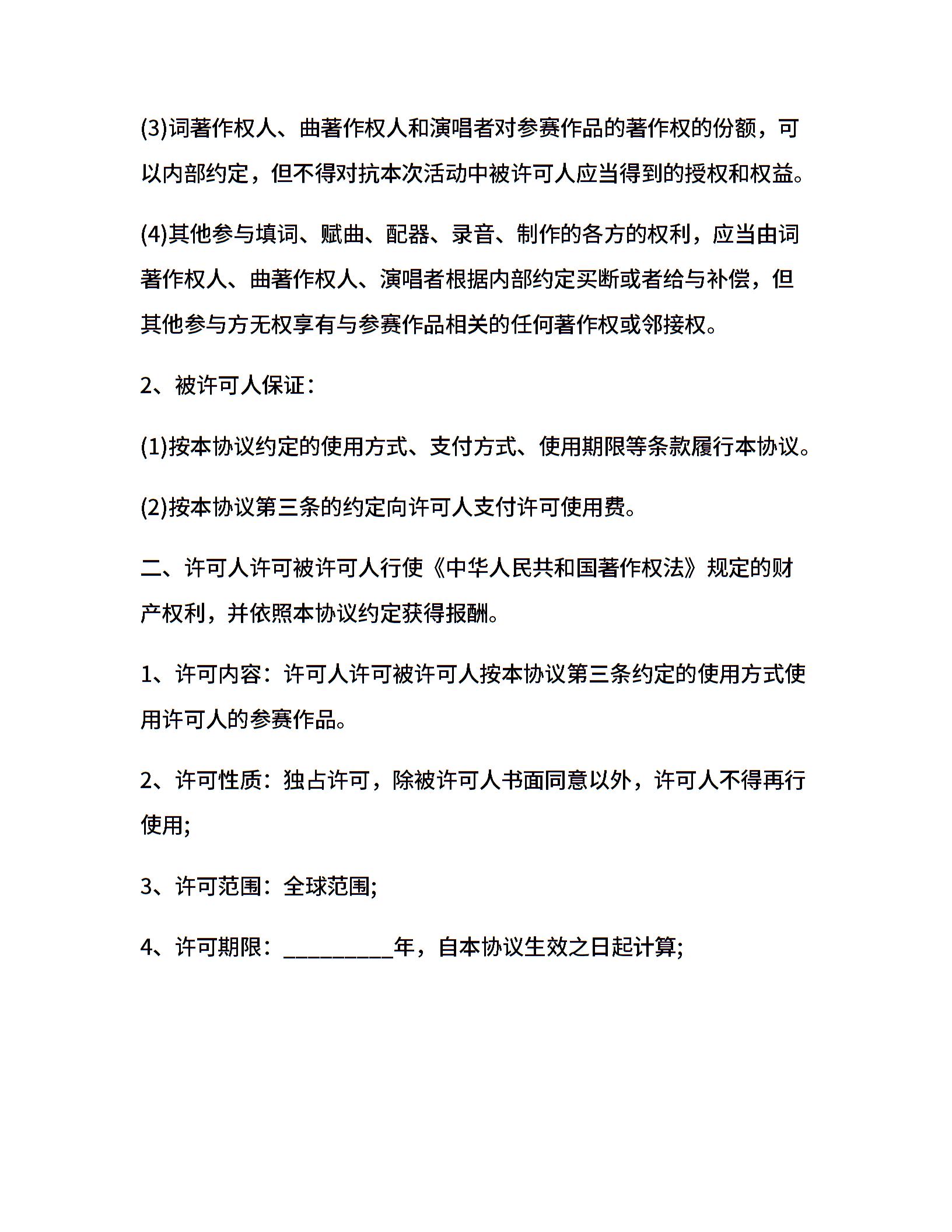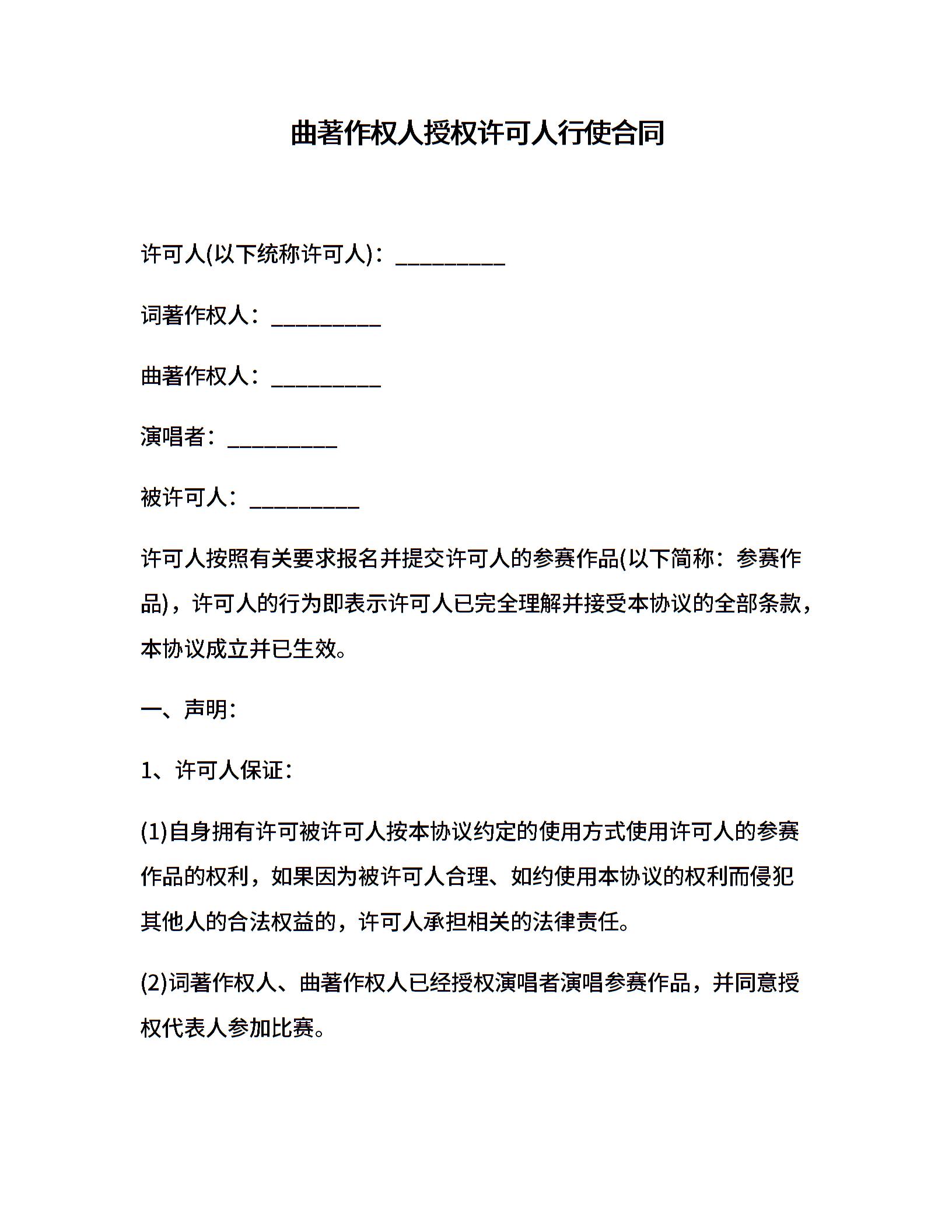 曲著作权人授权许可人行使合同