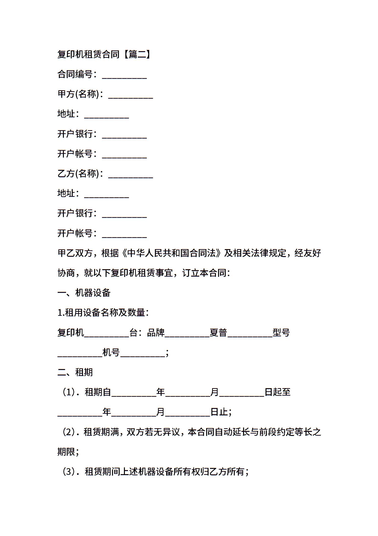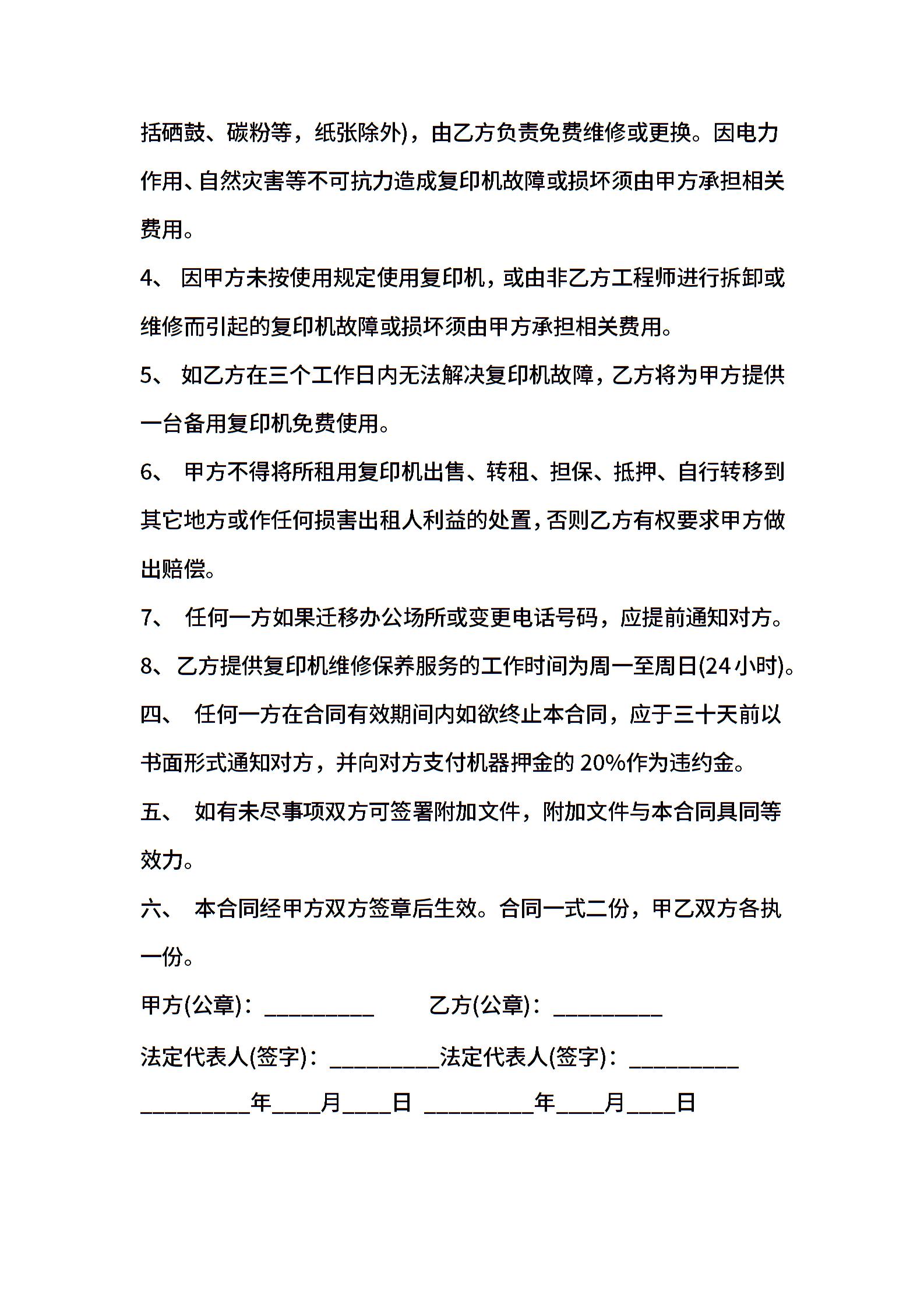 复印机租赁合同