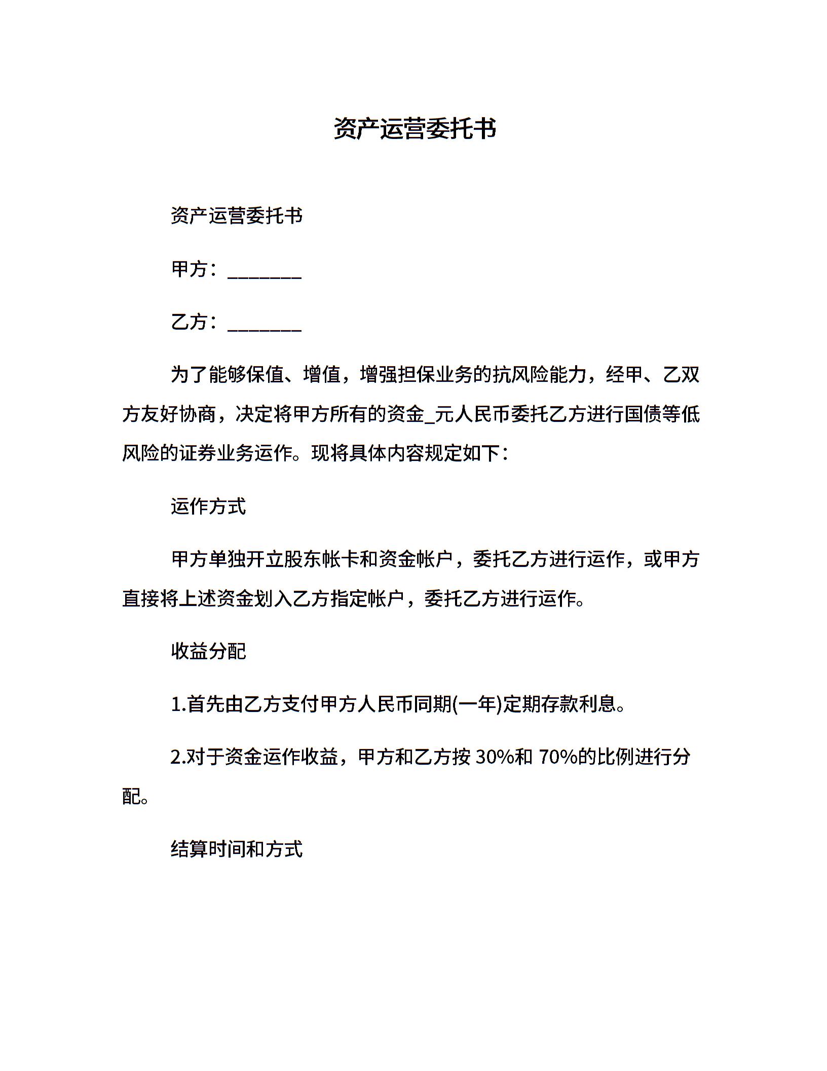 资产运营委托书