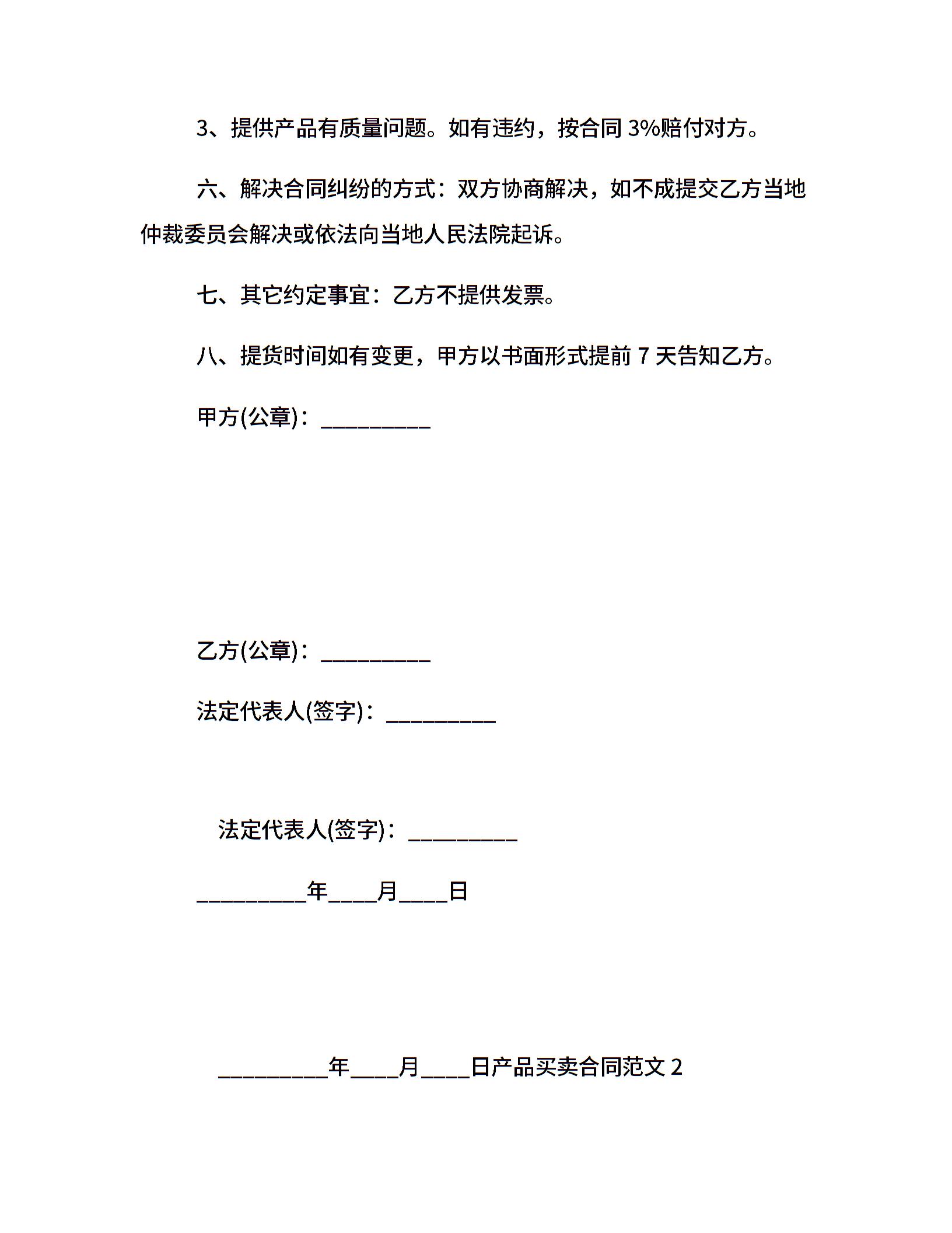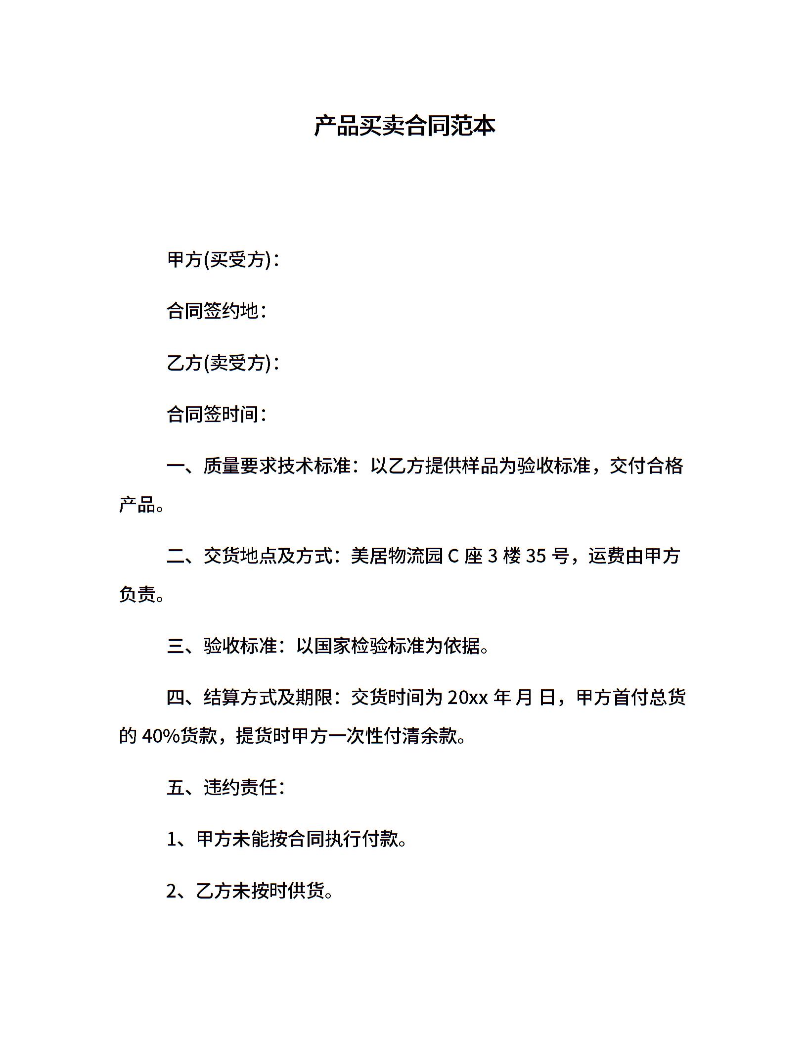 产品买卖合同范本