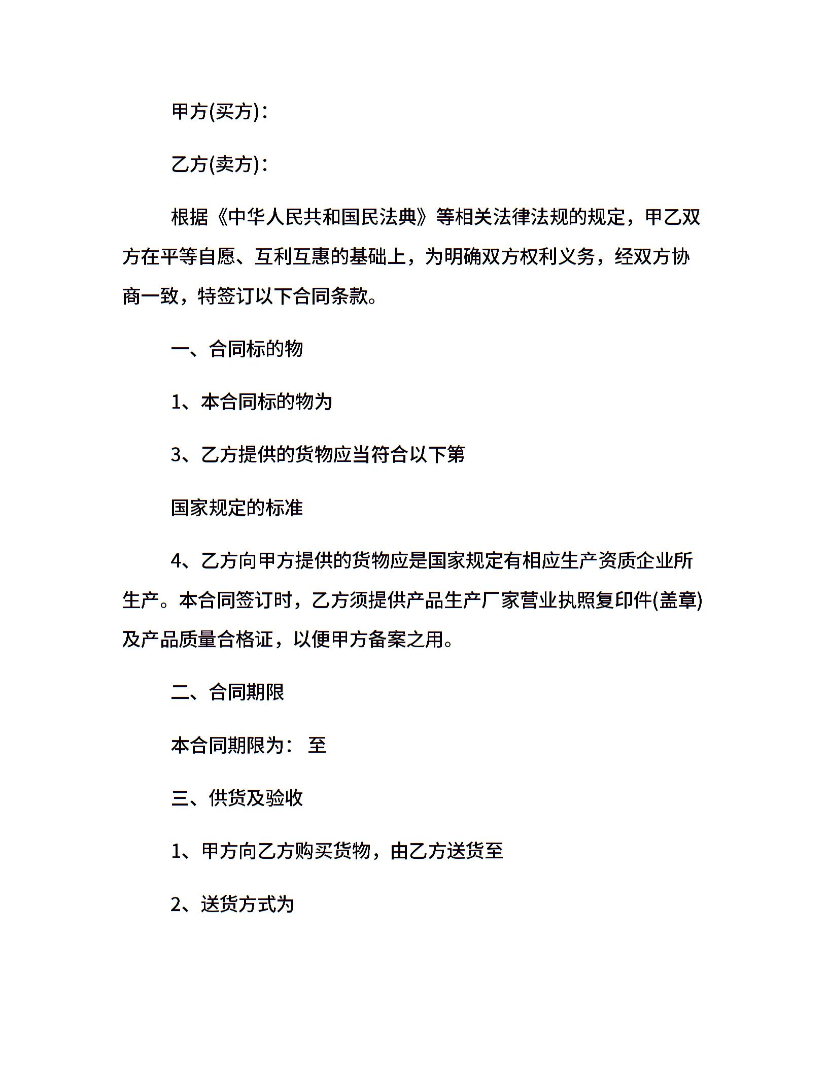 当前位置:量子办公 > 合同模板 > 买卖合同 >