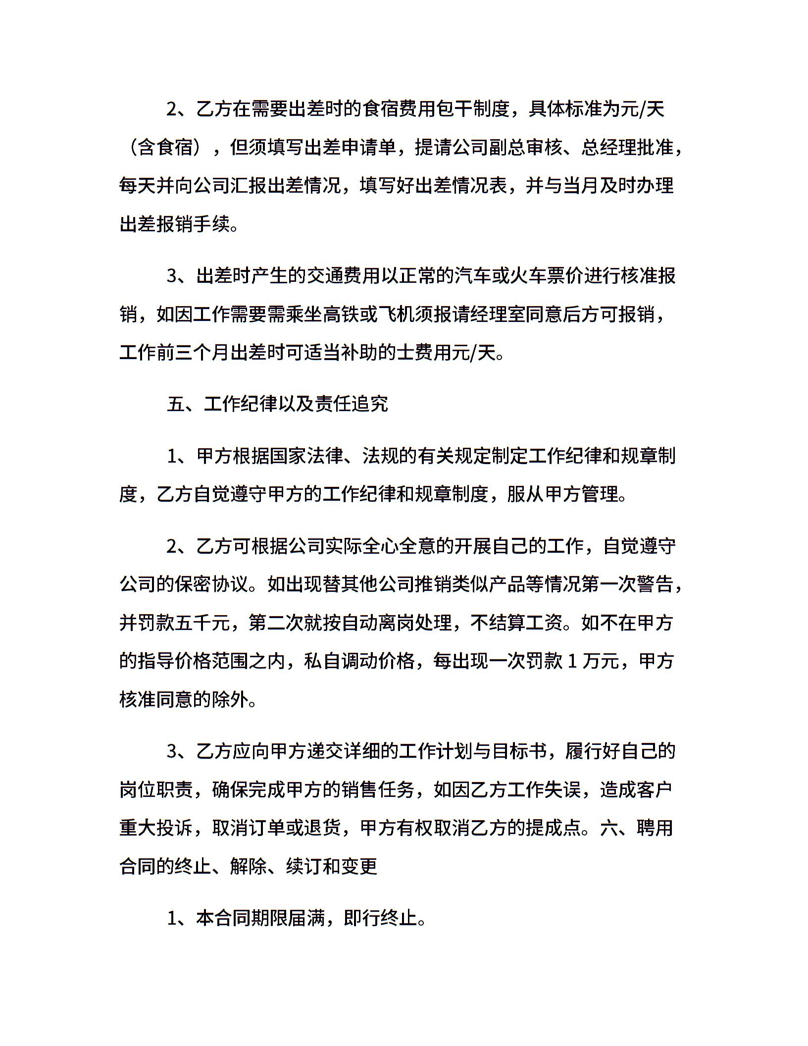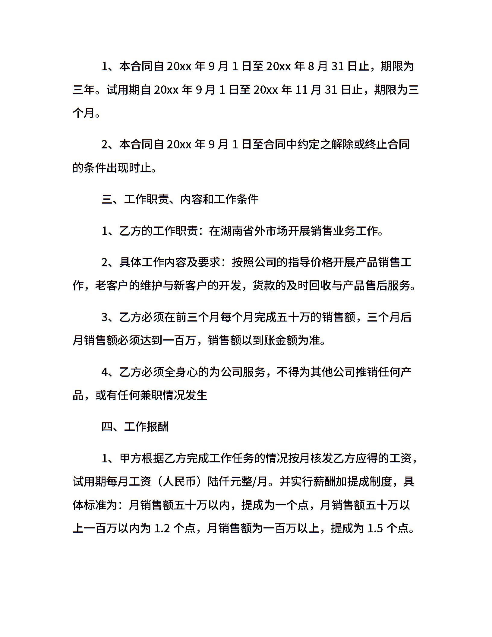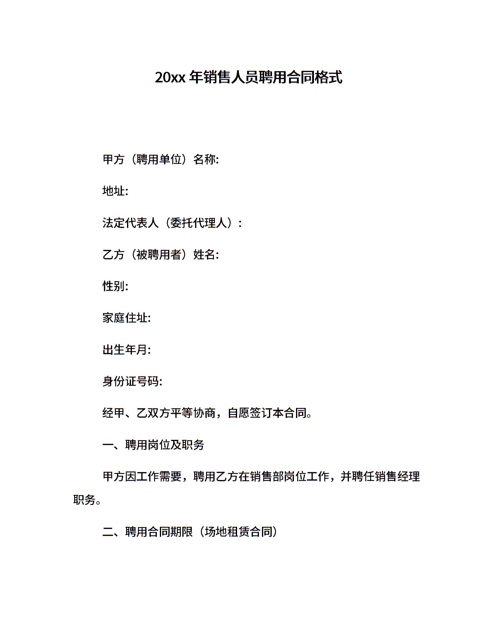 20xx年销售人员聘用合同格式