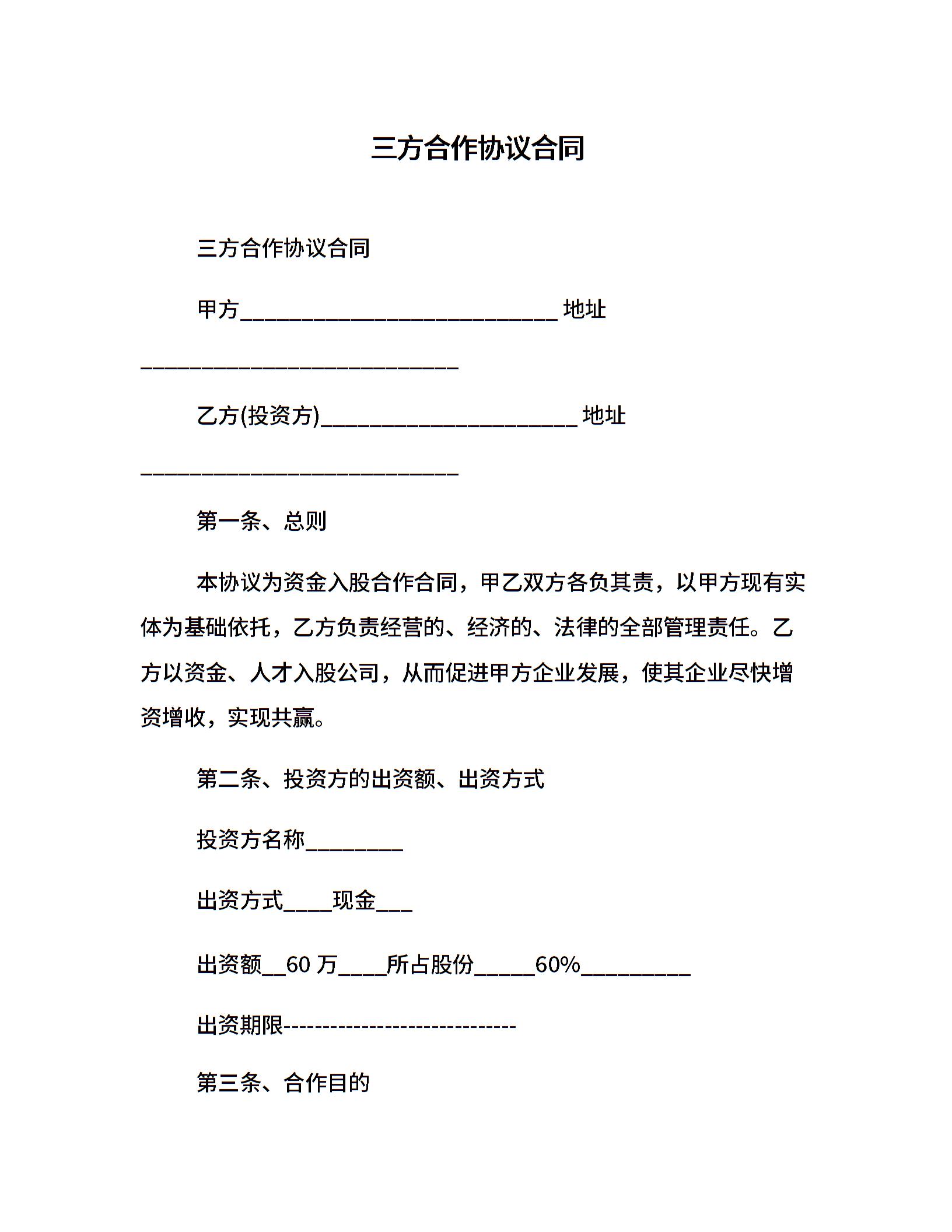 三方合作协议合同