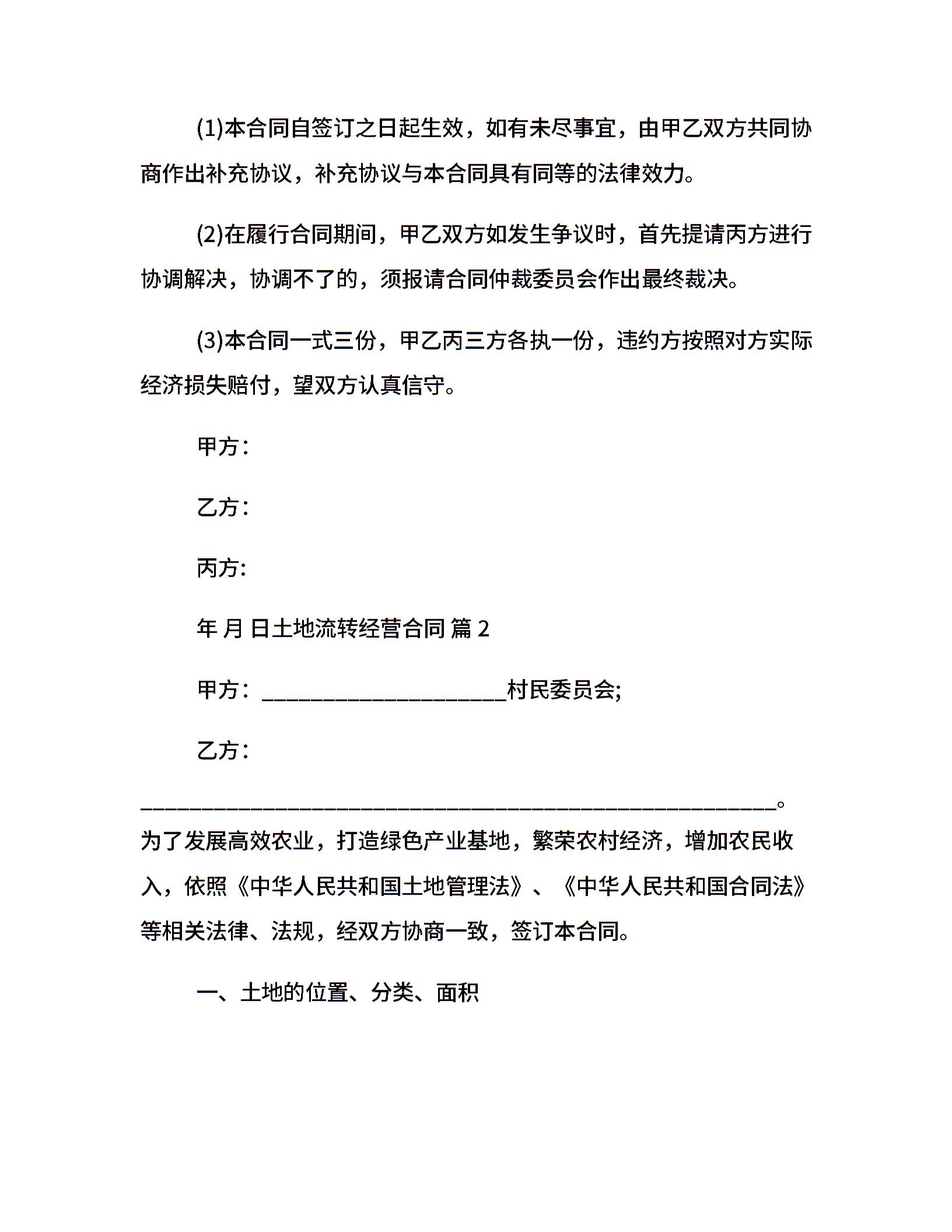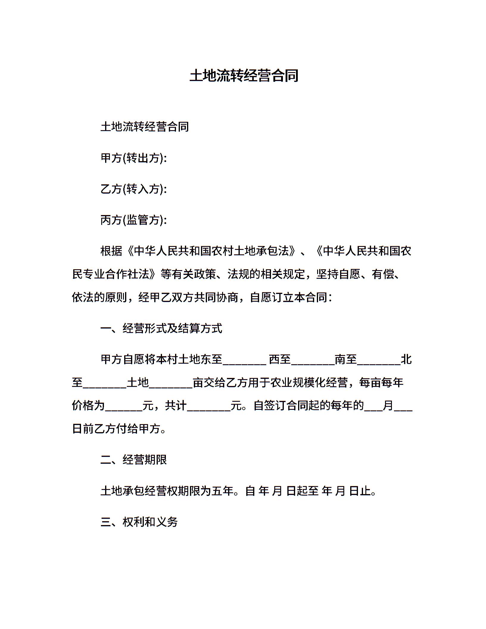 土地流转经营合同