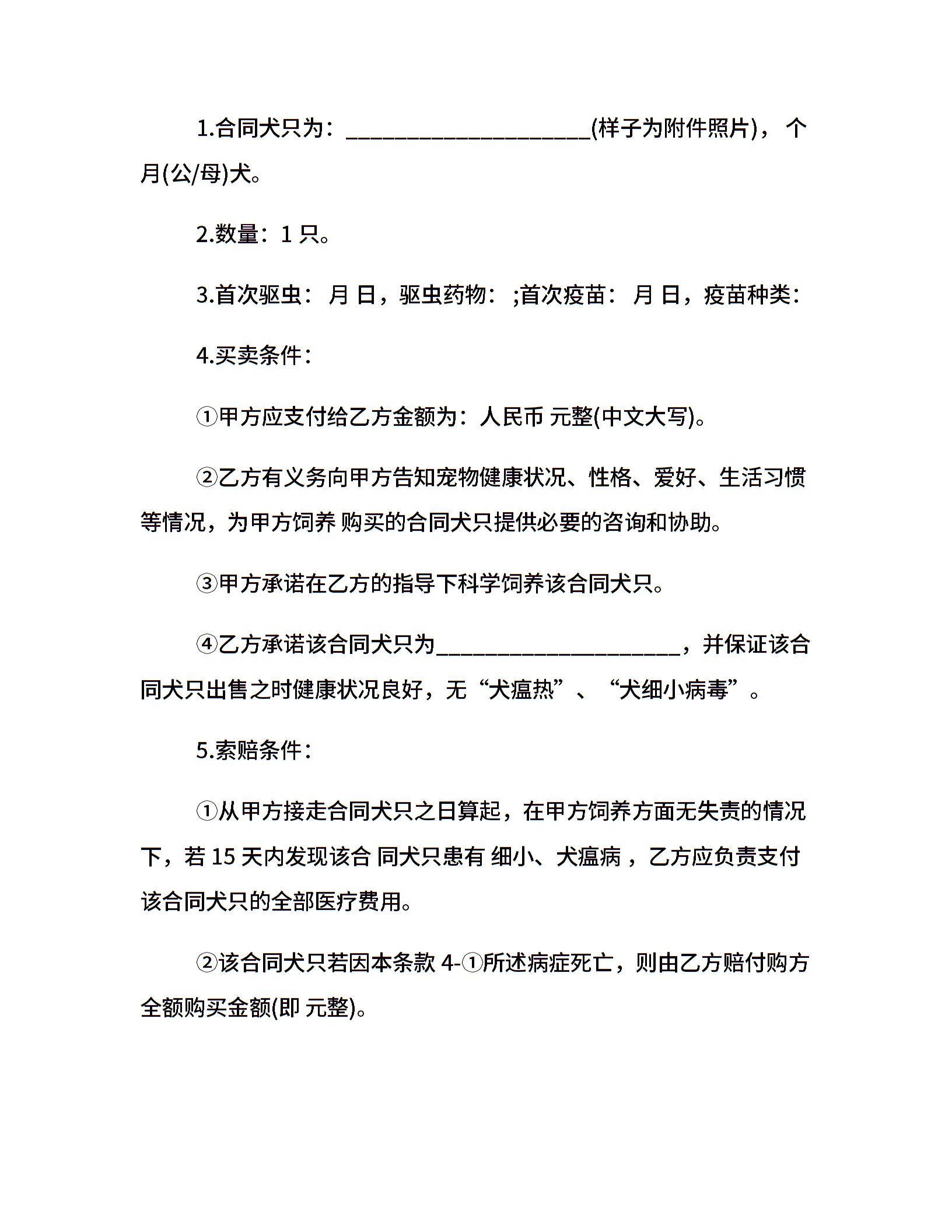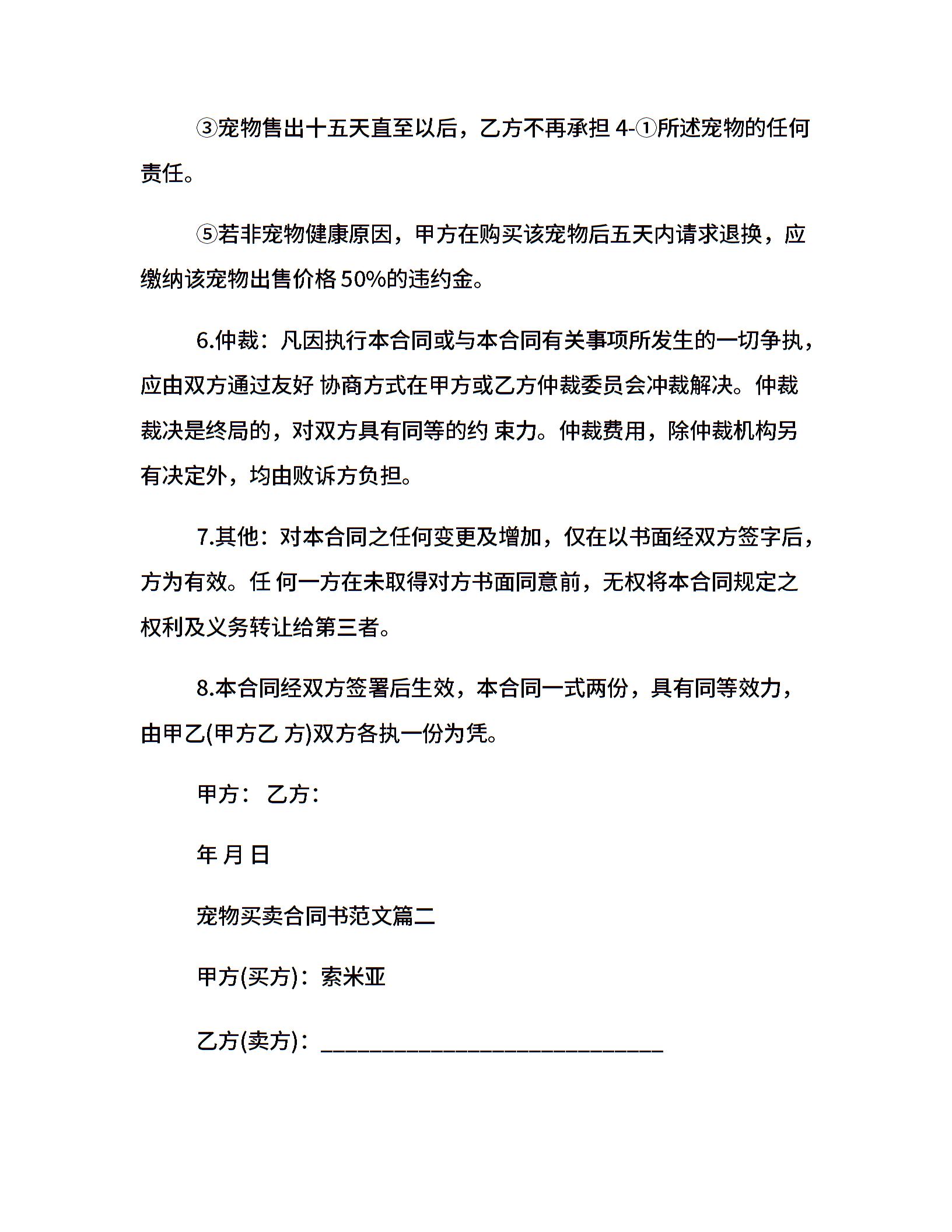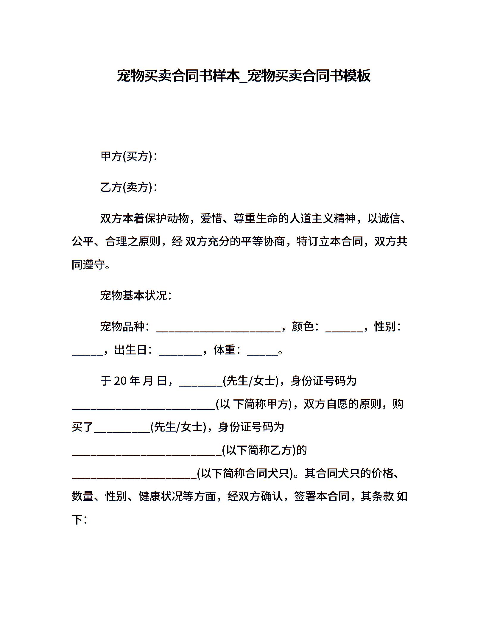 宠物买卖合同书样本_宠物买卖合同书模板