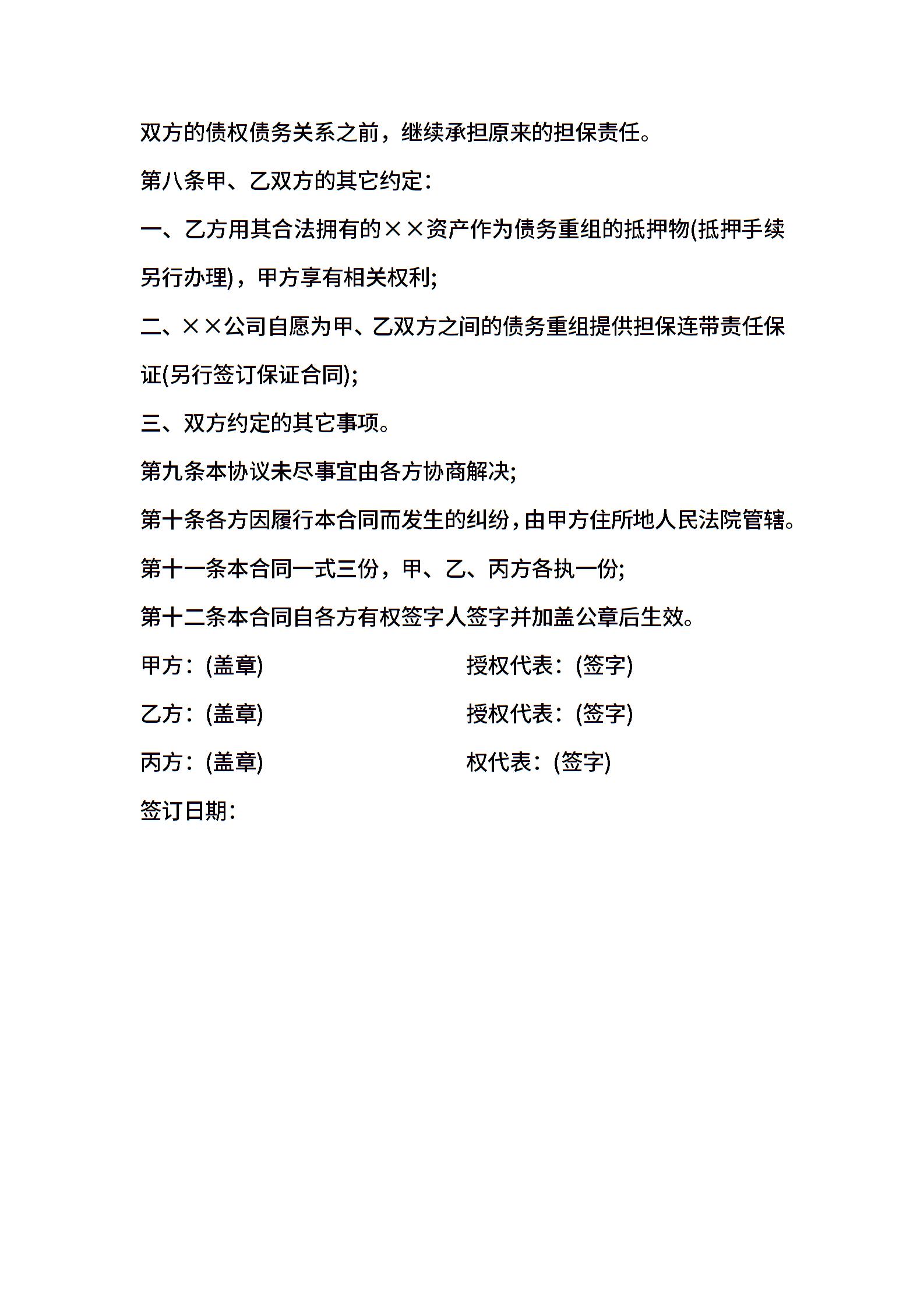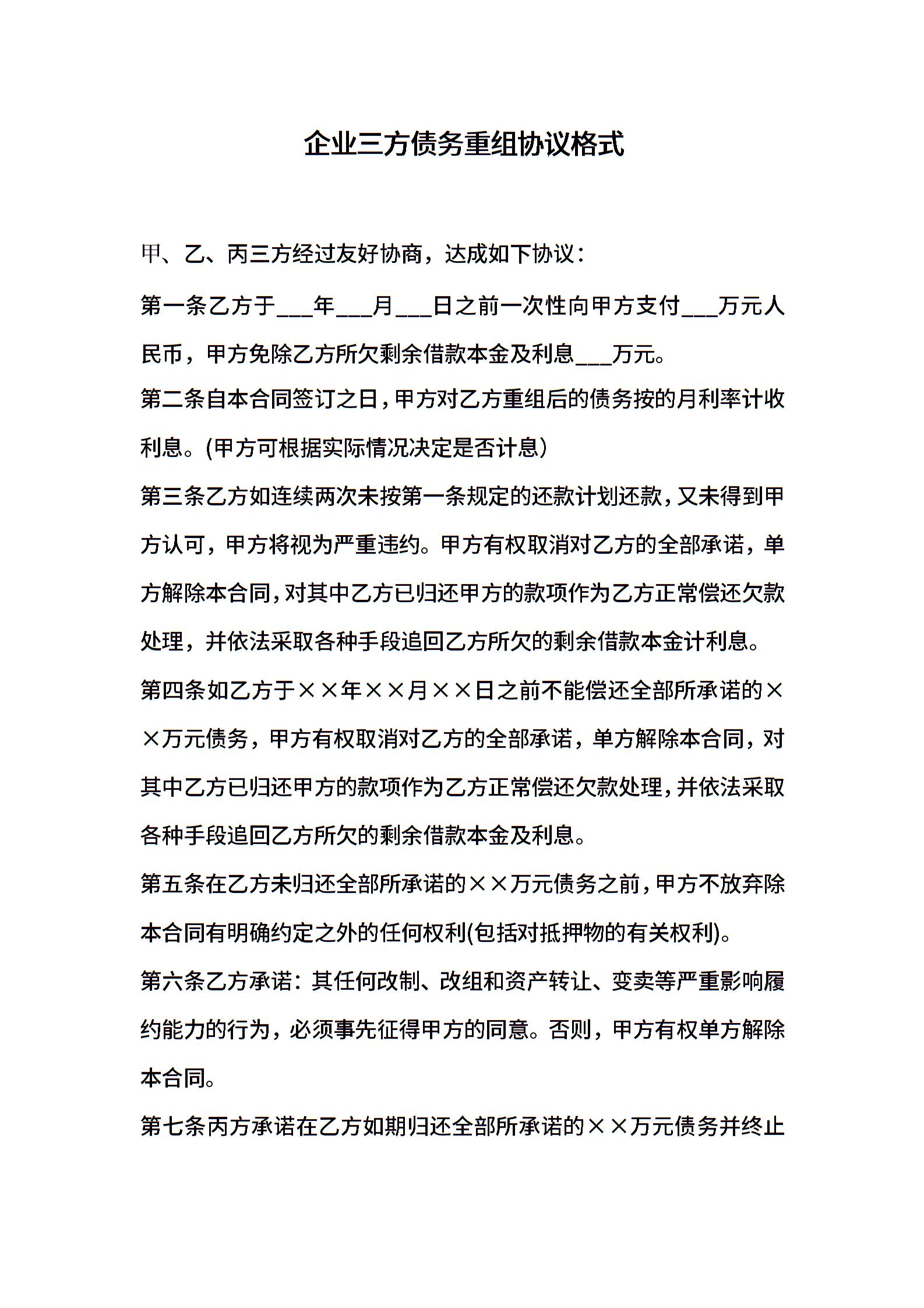 企业三方债务重组协议格式