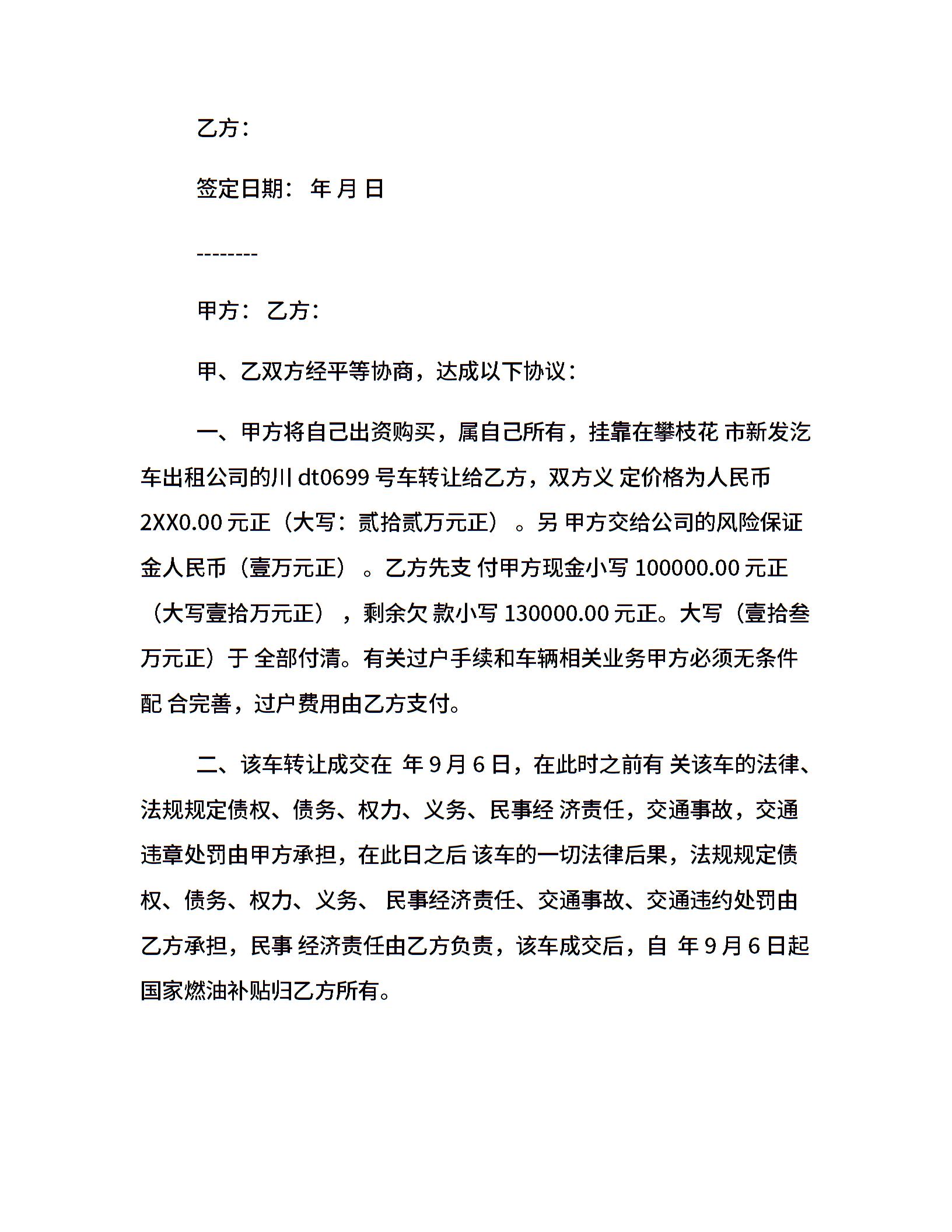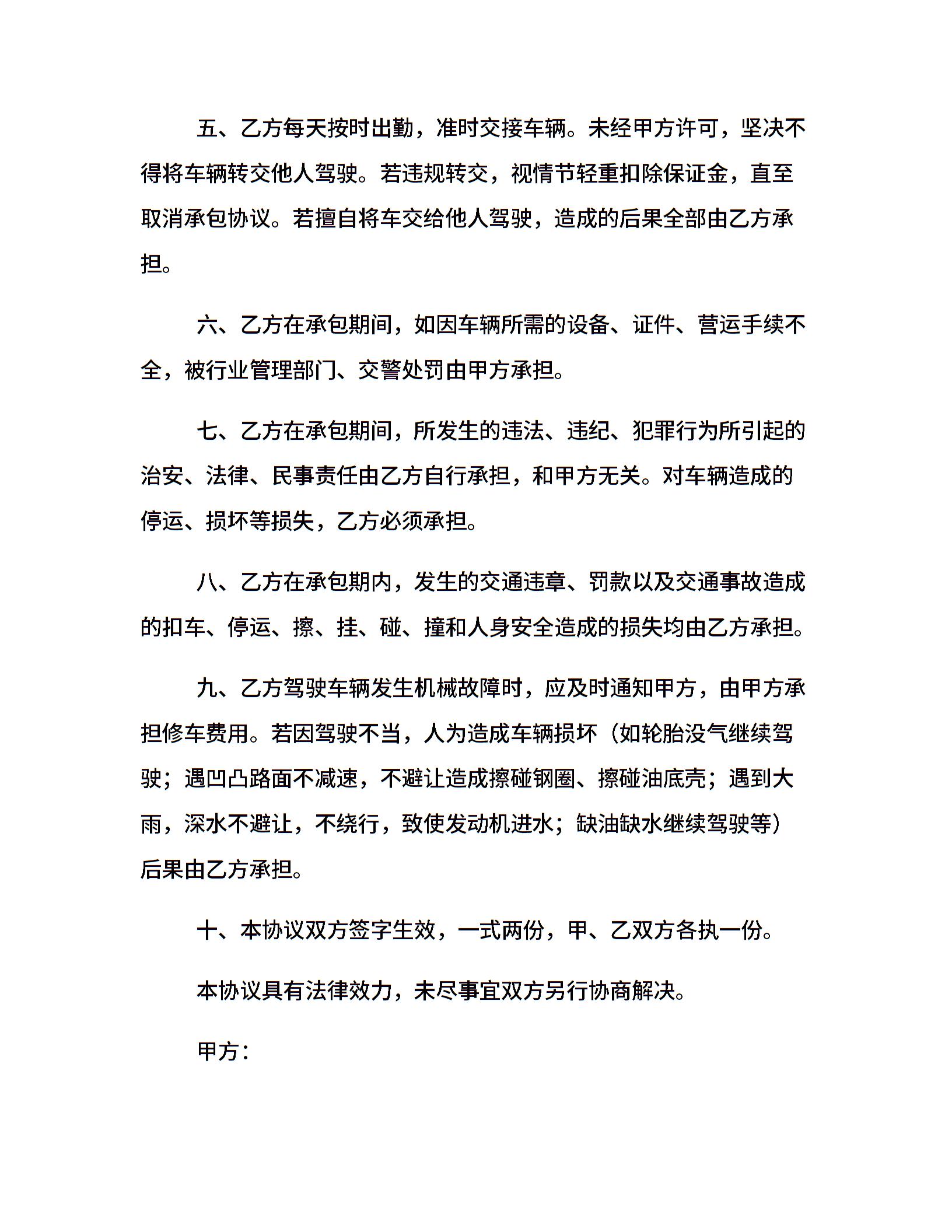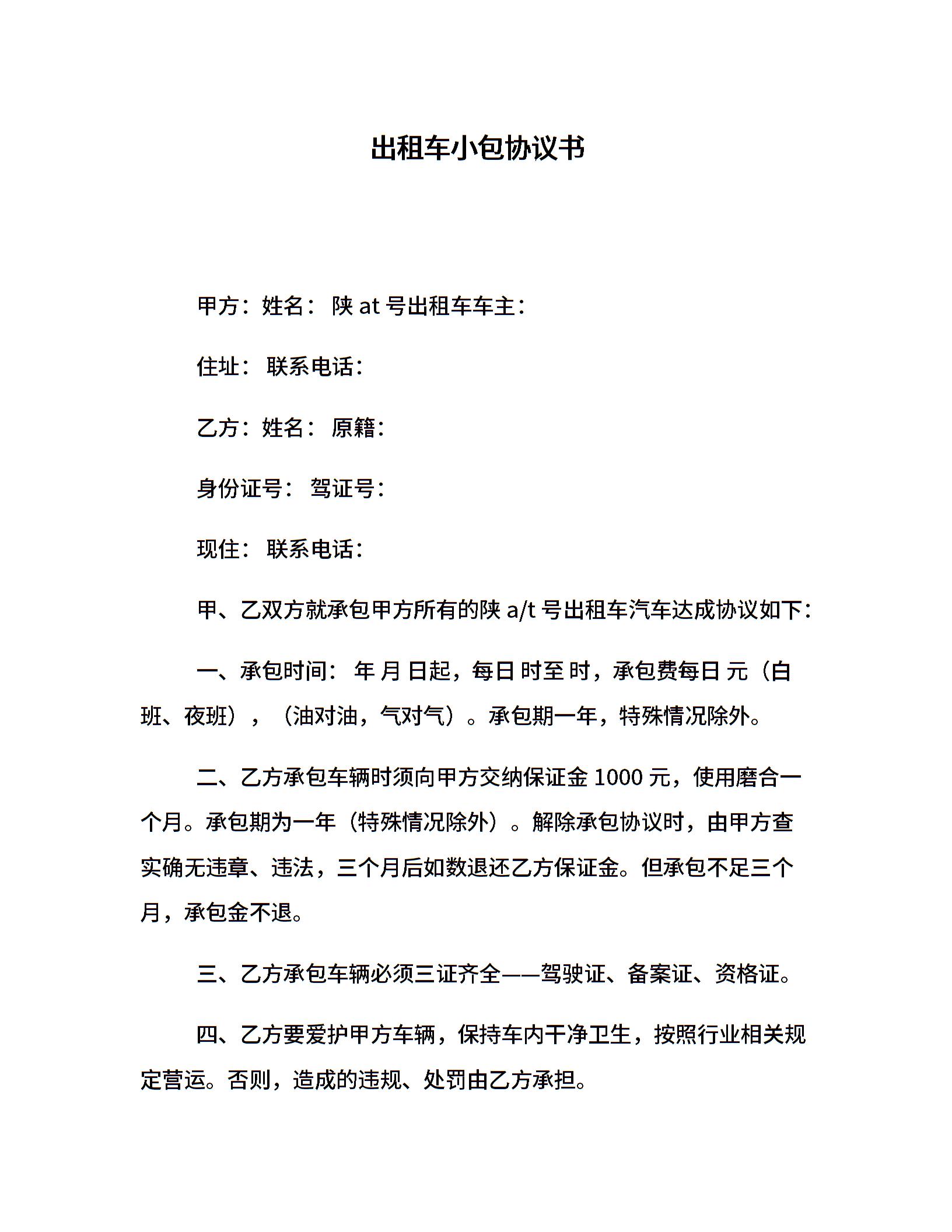 出租车小包协议书