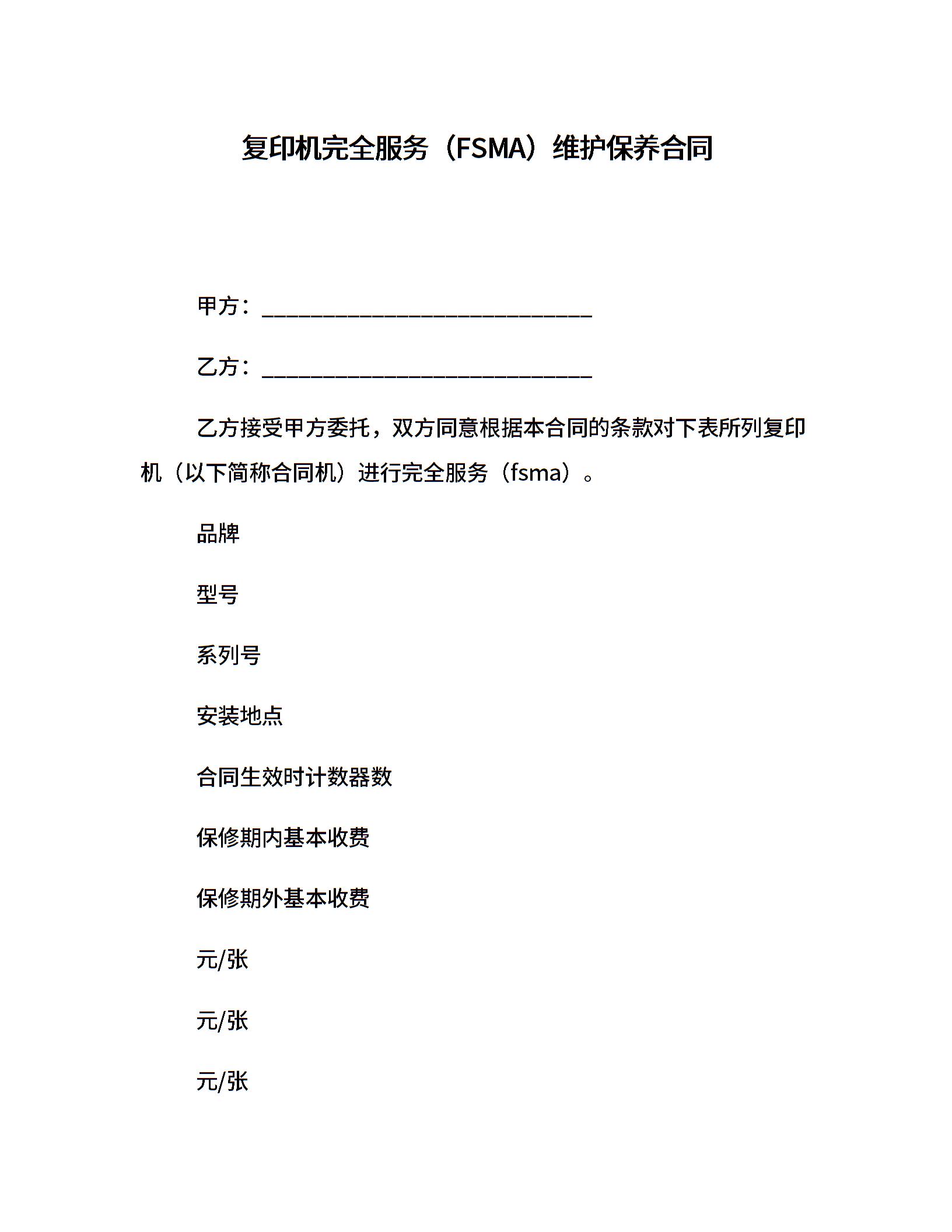 复印机完全服务(FSMA)维护保养合同