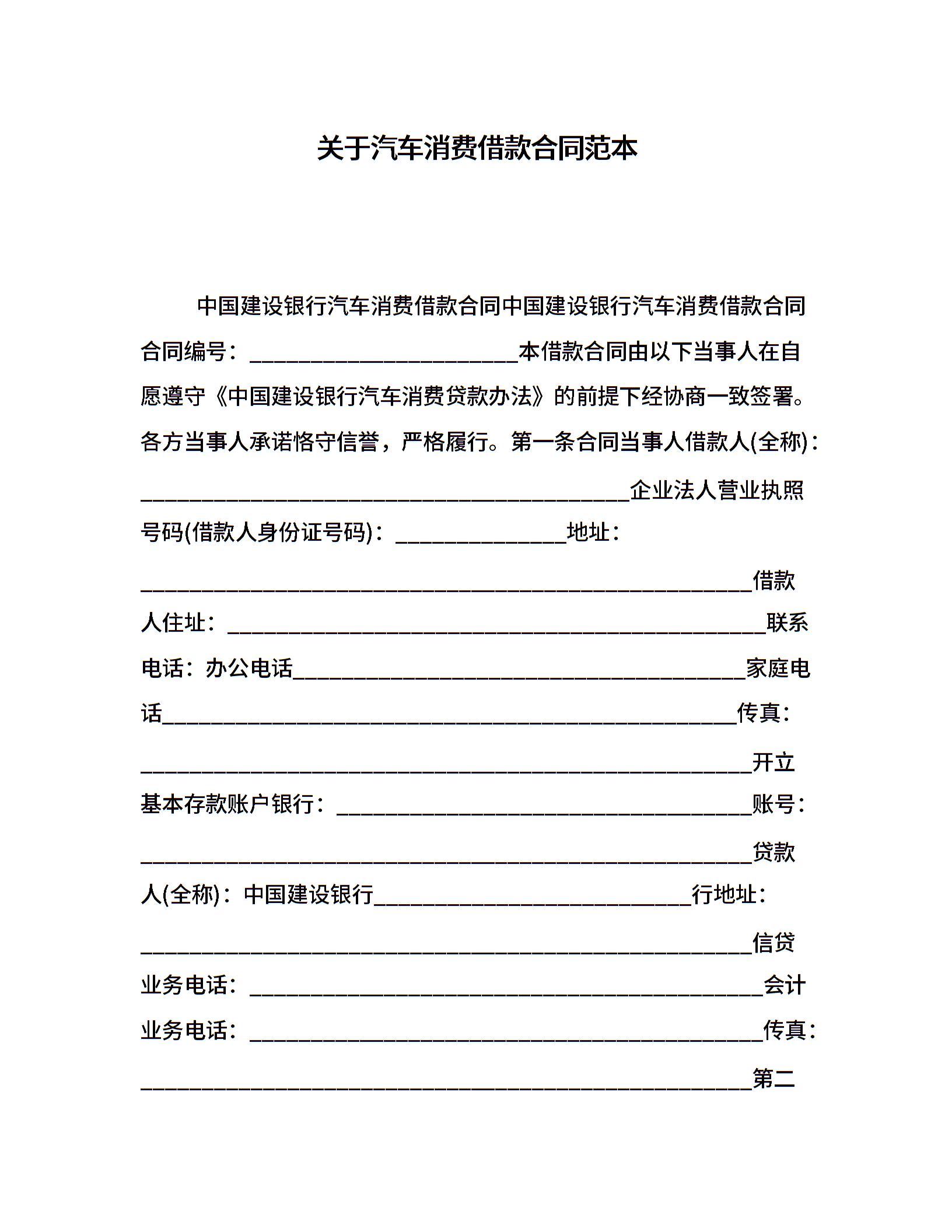 关于汽车消费借款合同范本