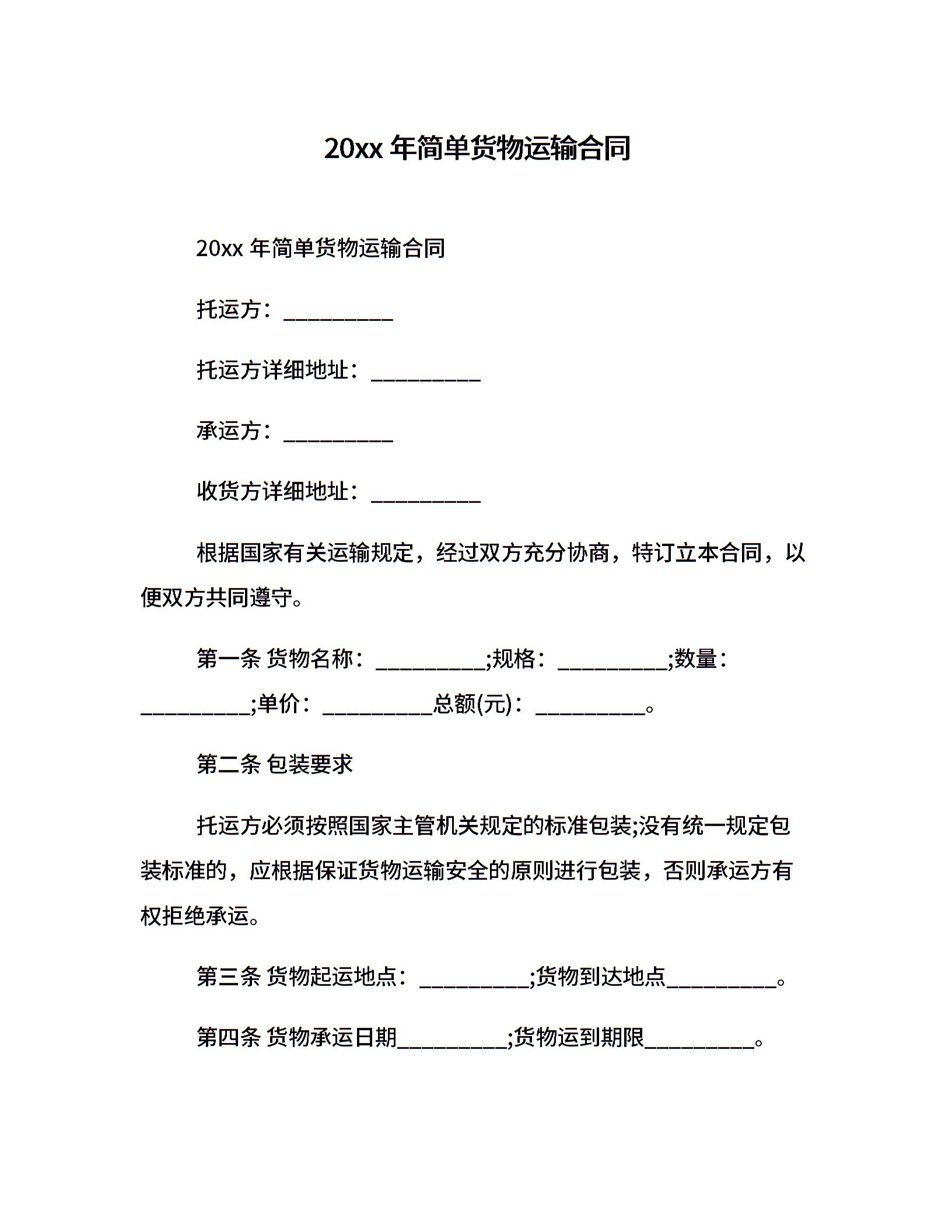 20xx年简单货物运输合同