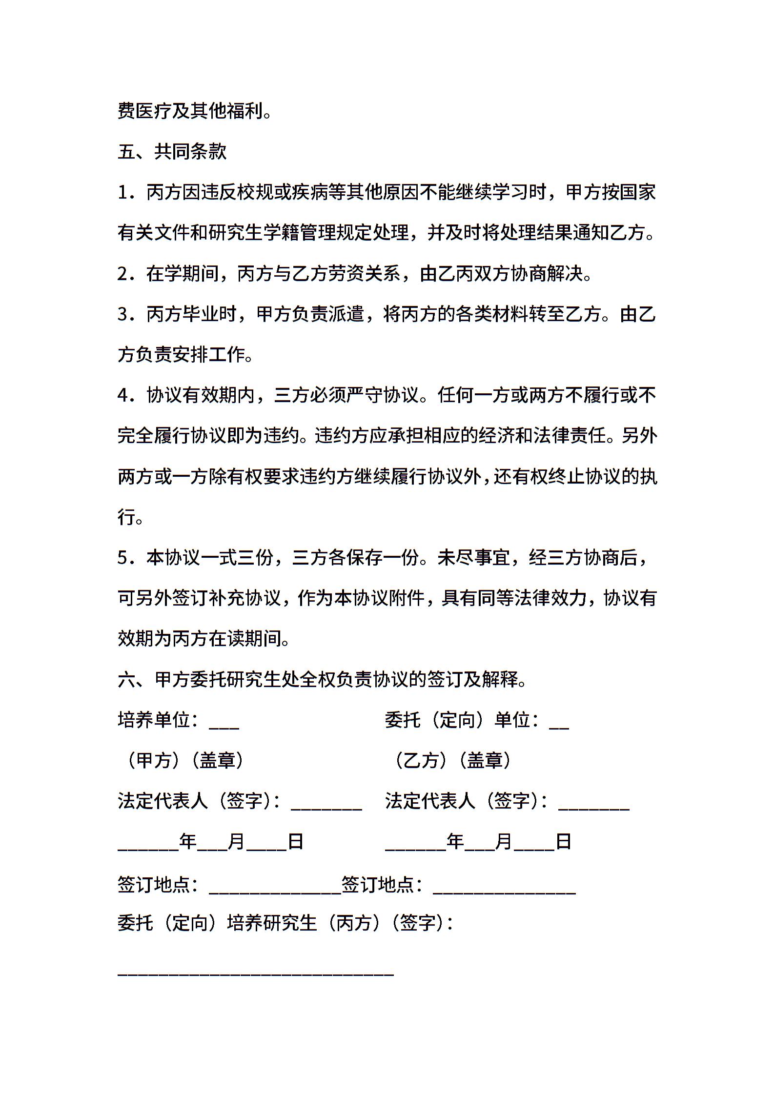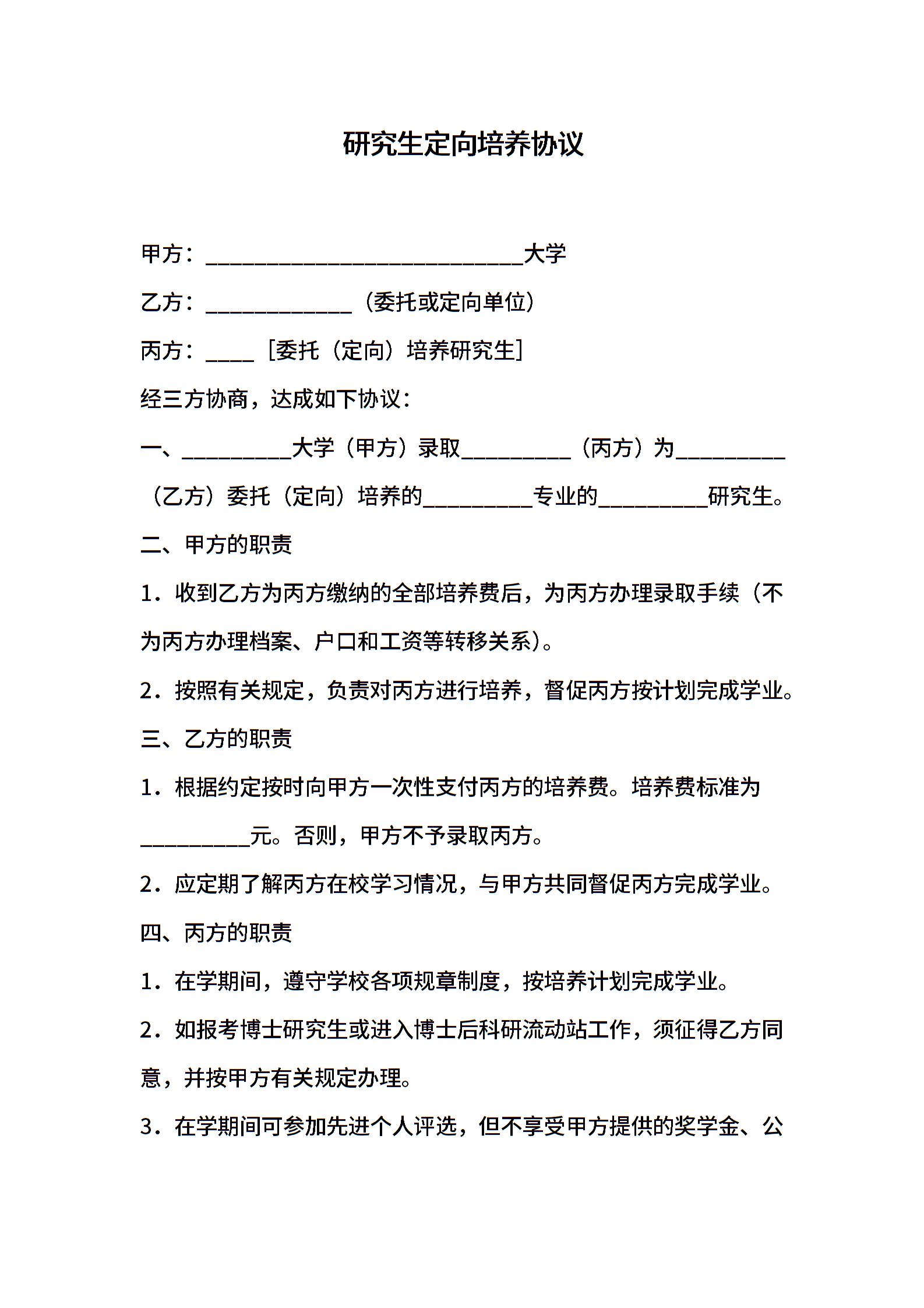 研究生定向培养协议