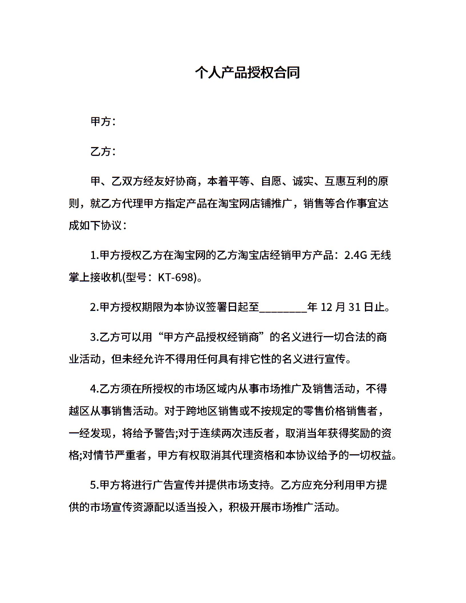 个人产品授权合同