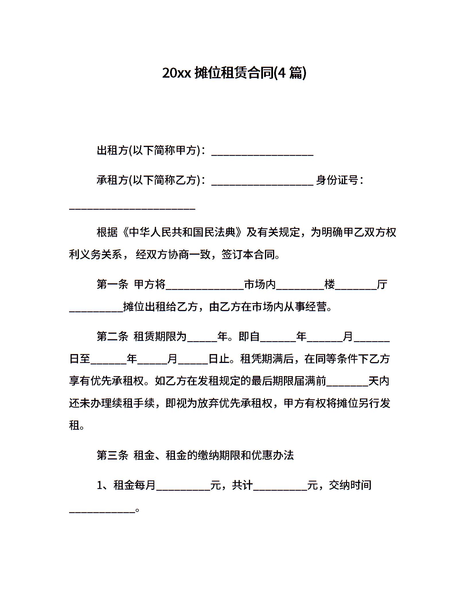20xx摊位租赁合同(4篇)