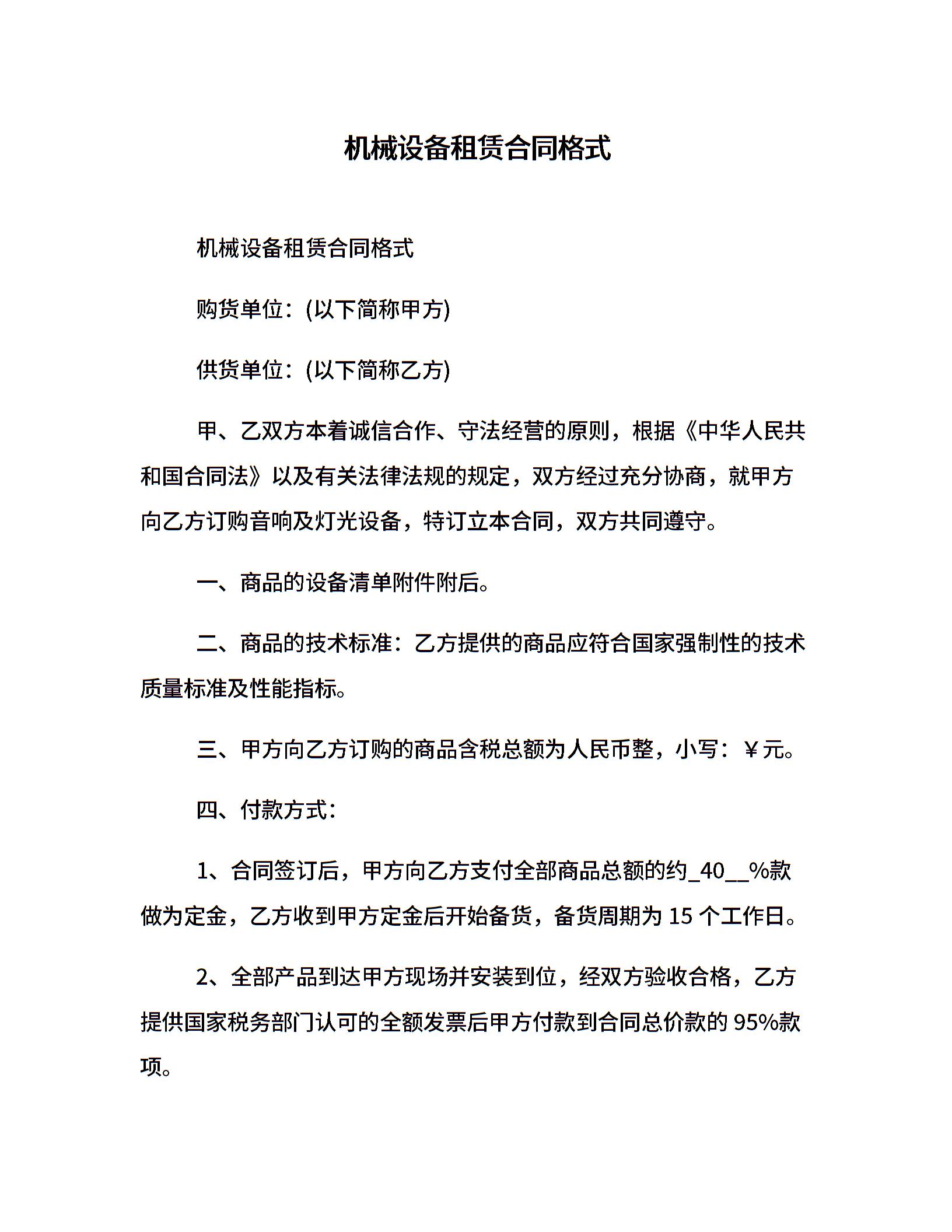 机械设备租赁合同格式