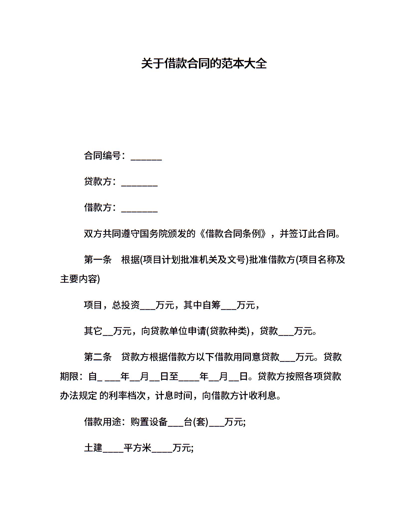 关于借款合同的范本大全