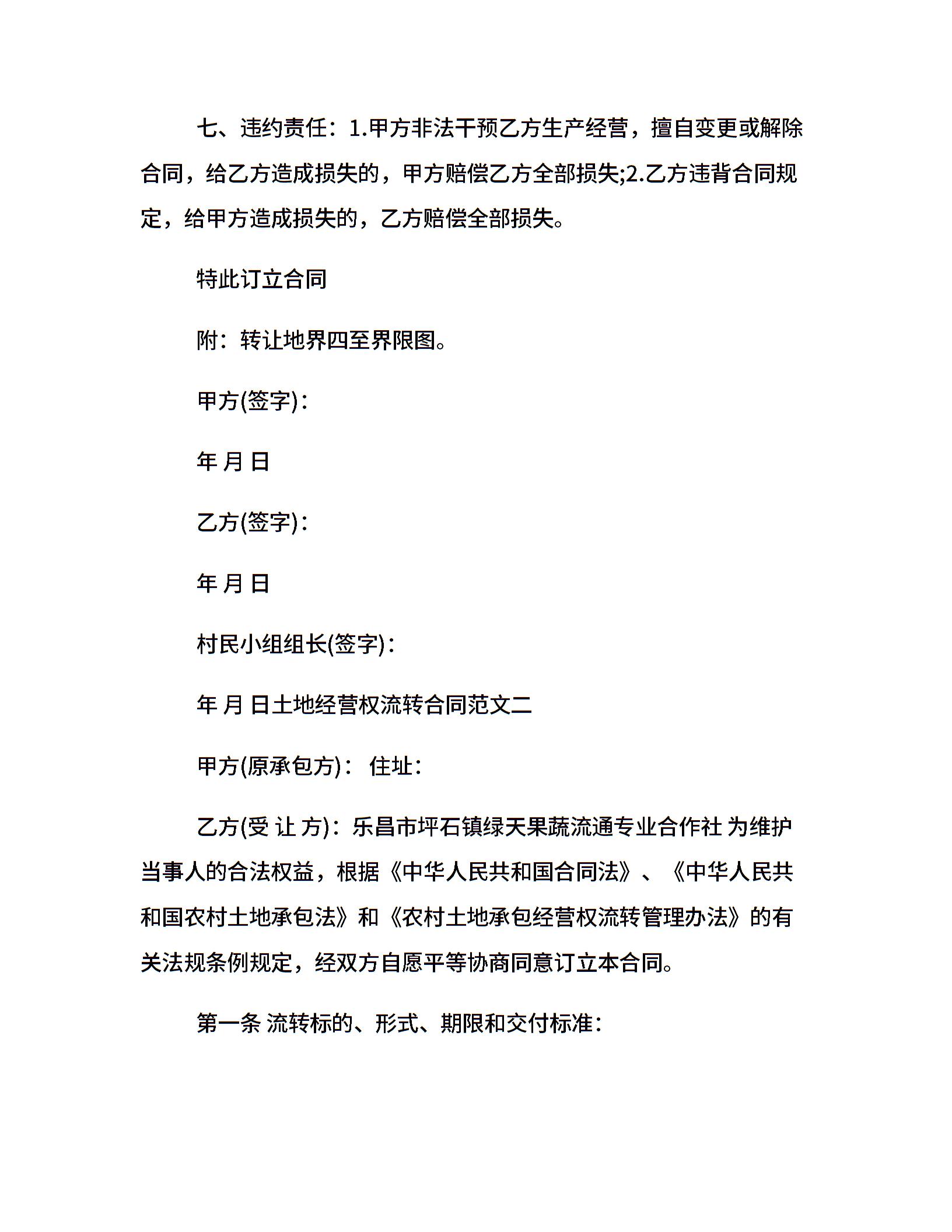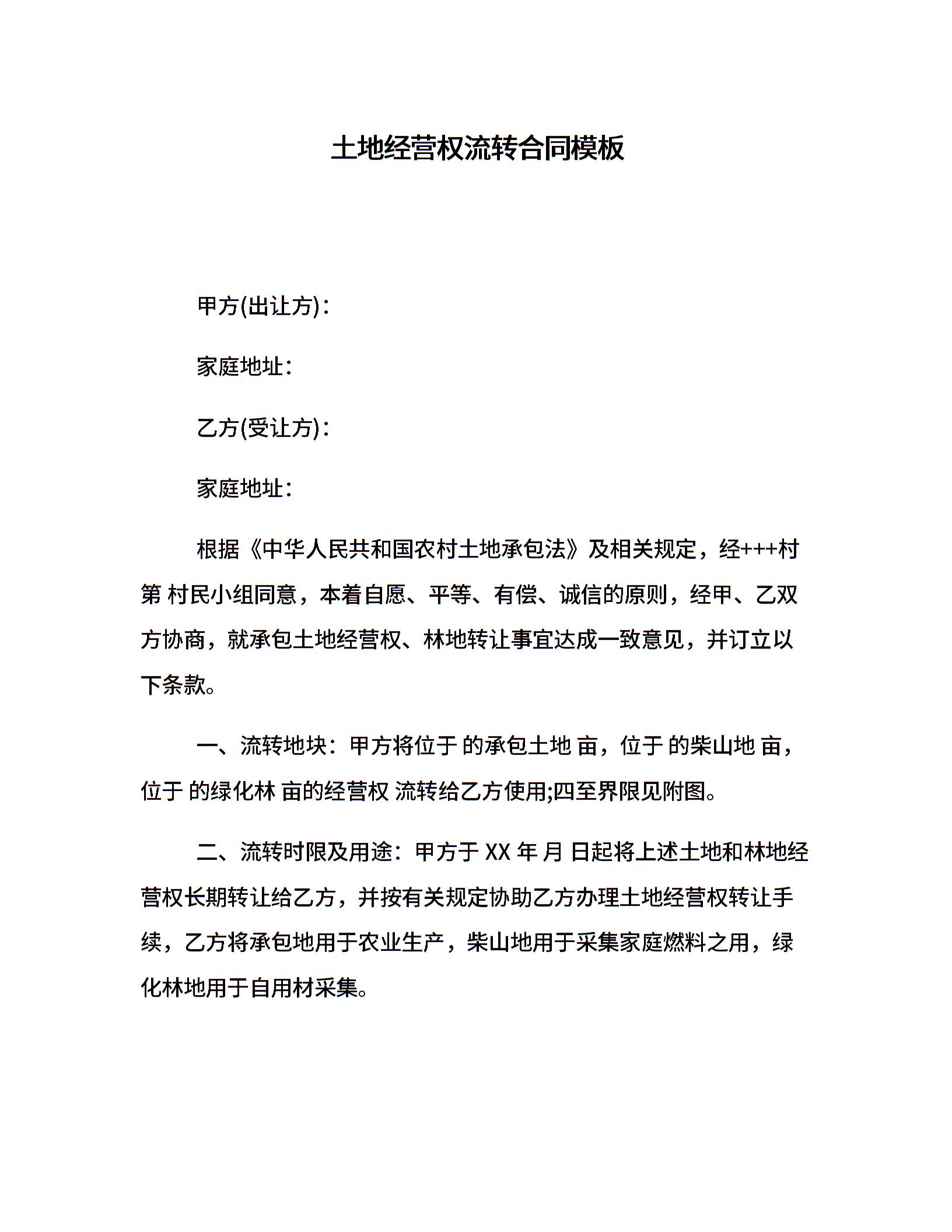土地经营权流转合同模板