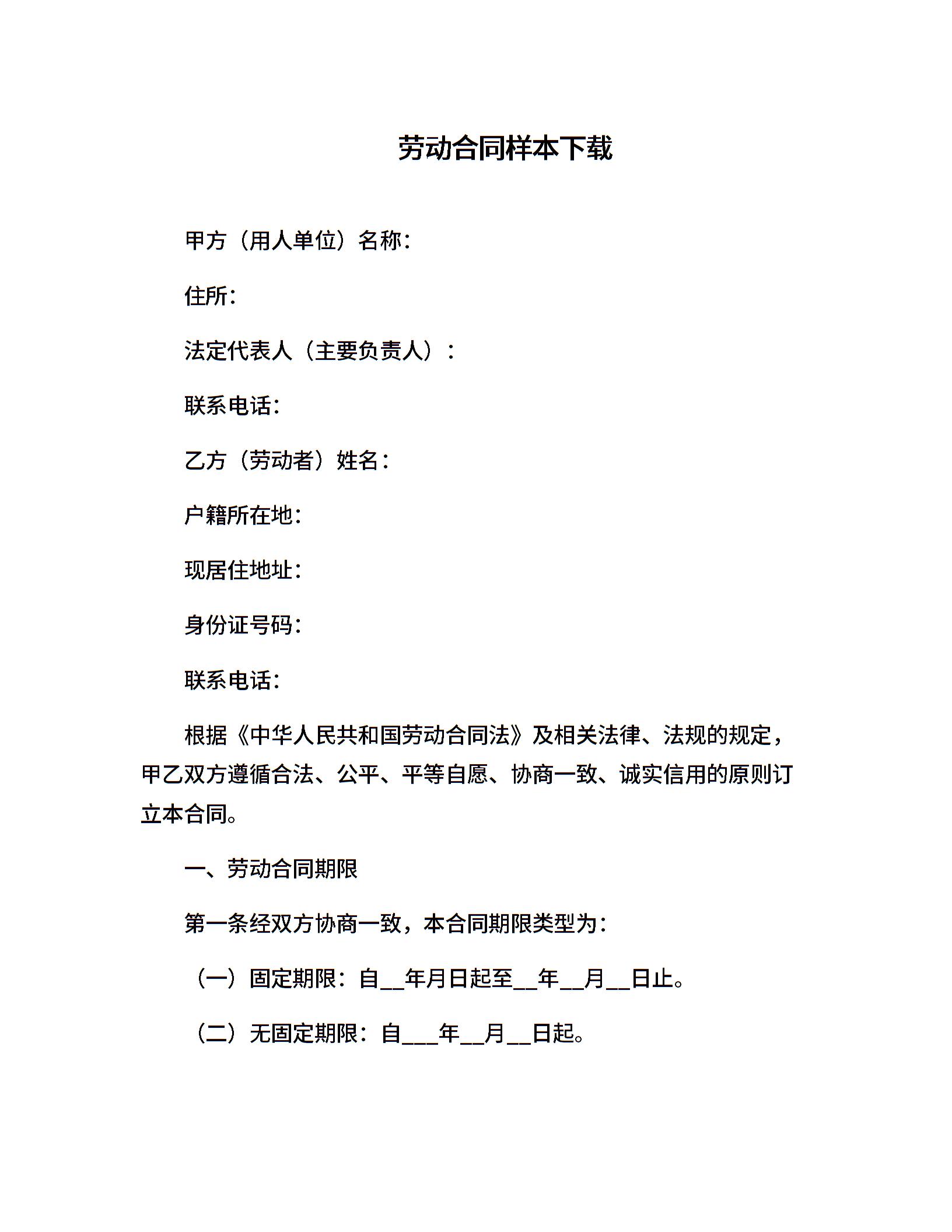 劳动合同样本下载