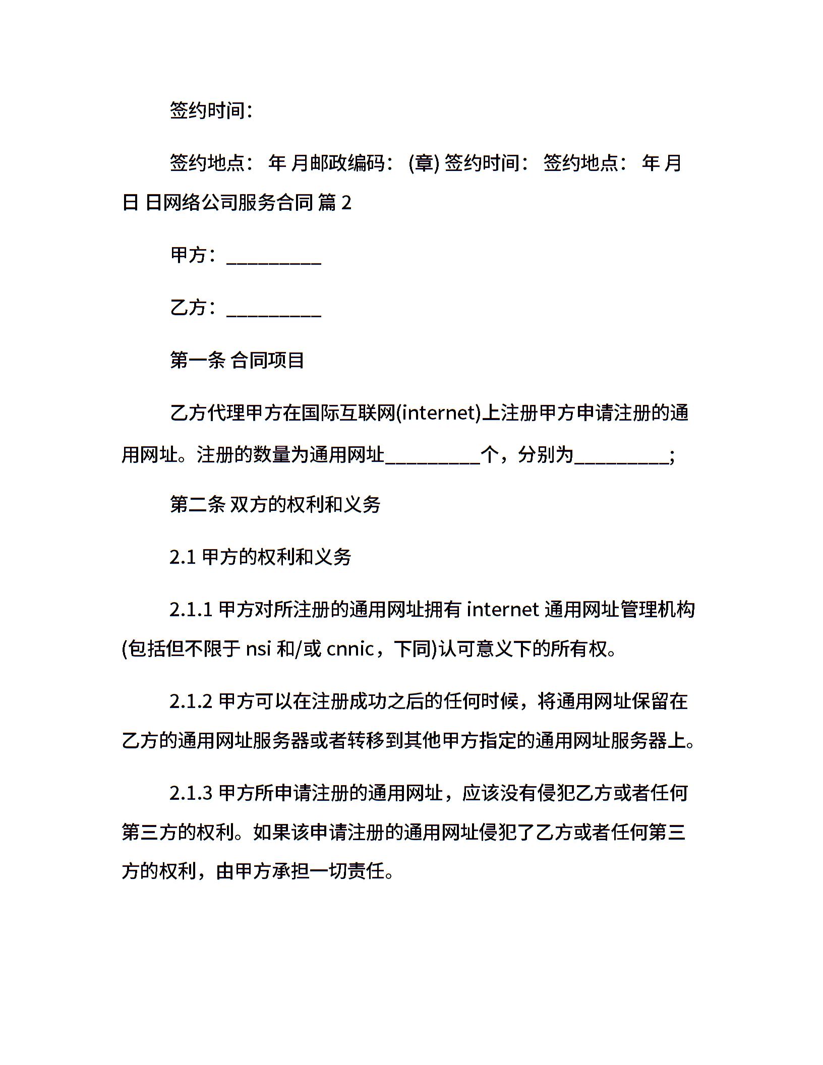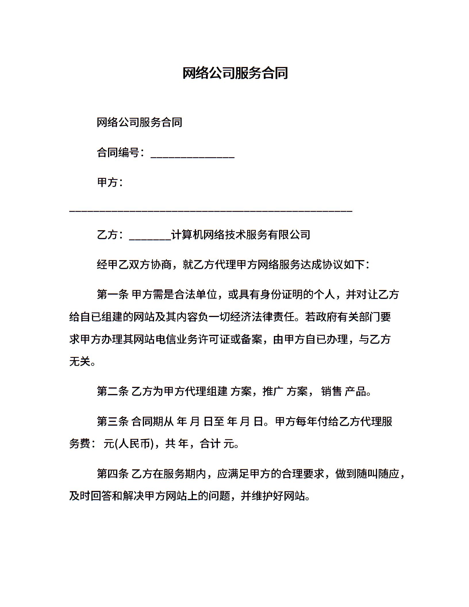 网络公司服务合同