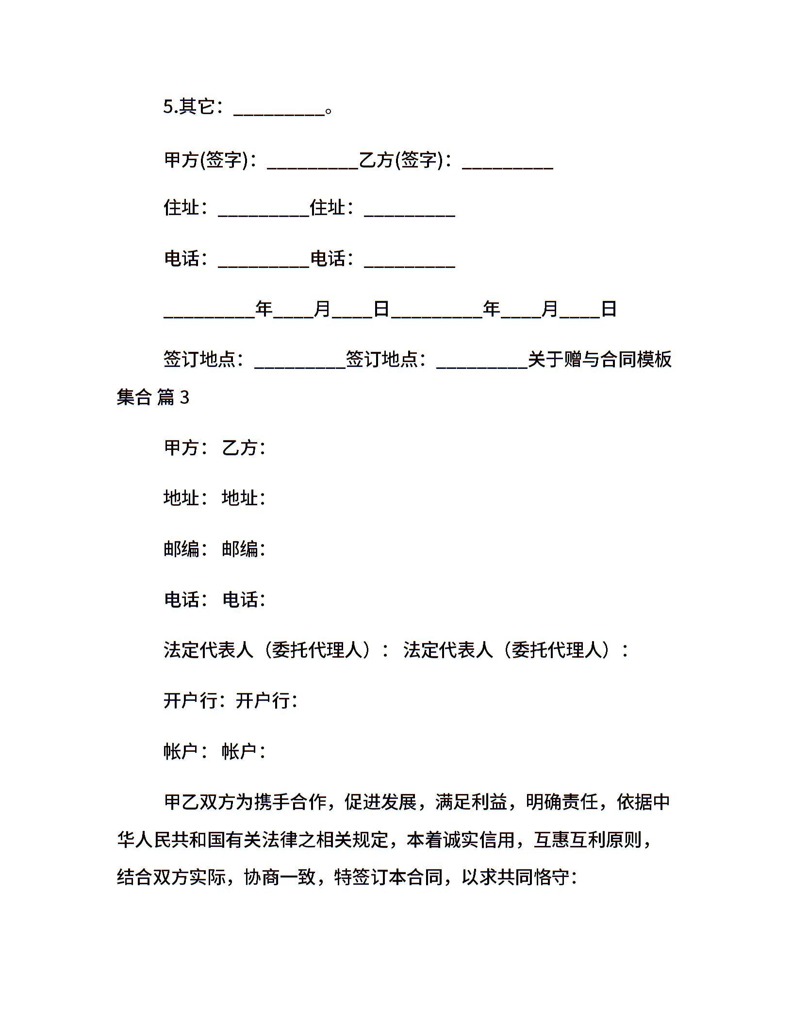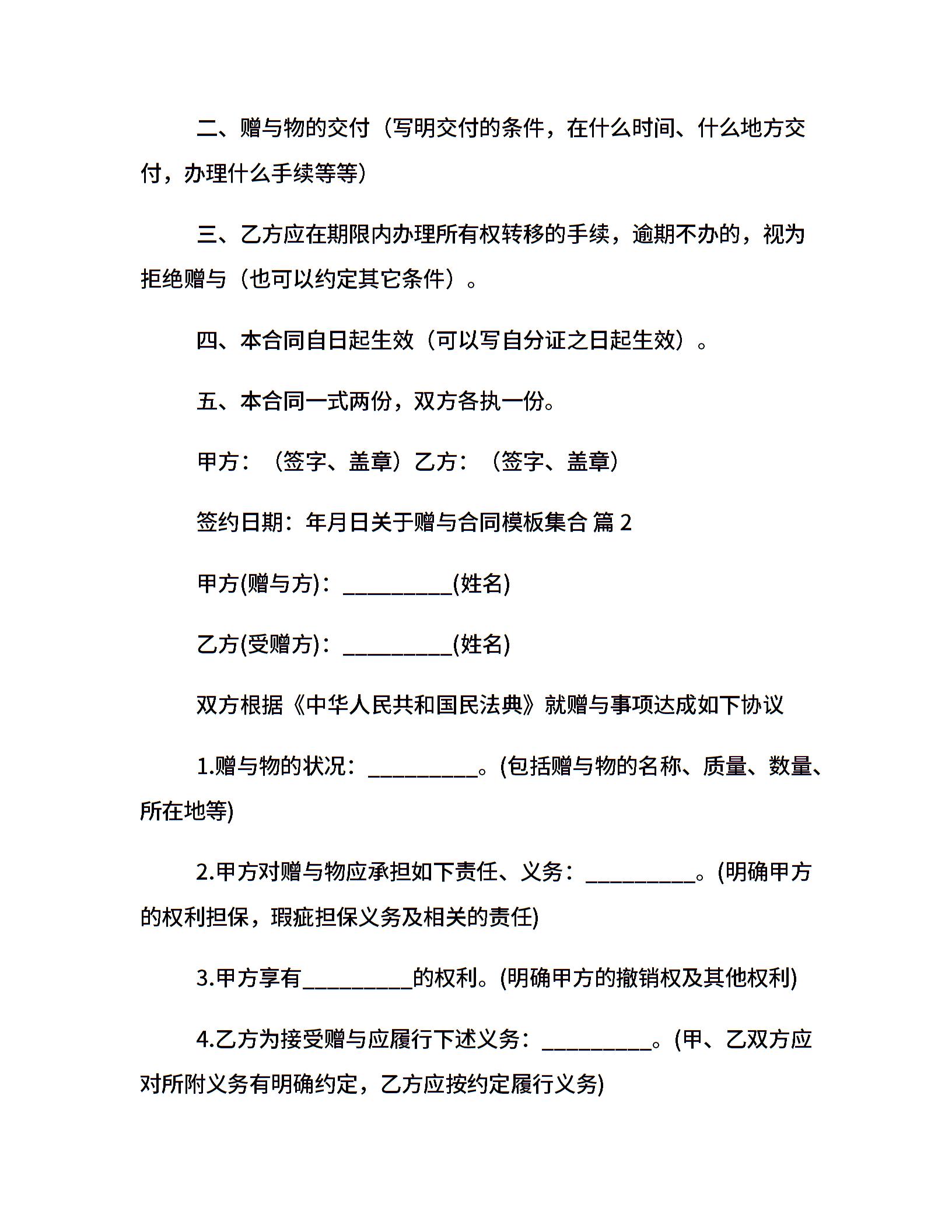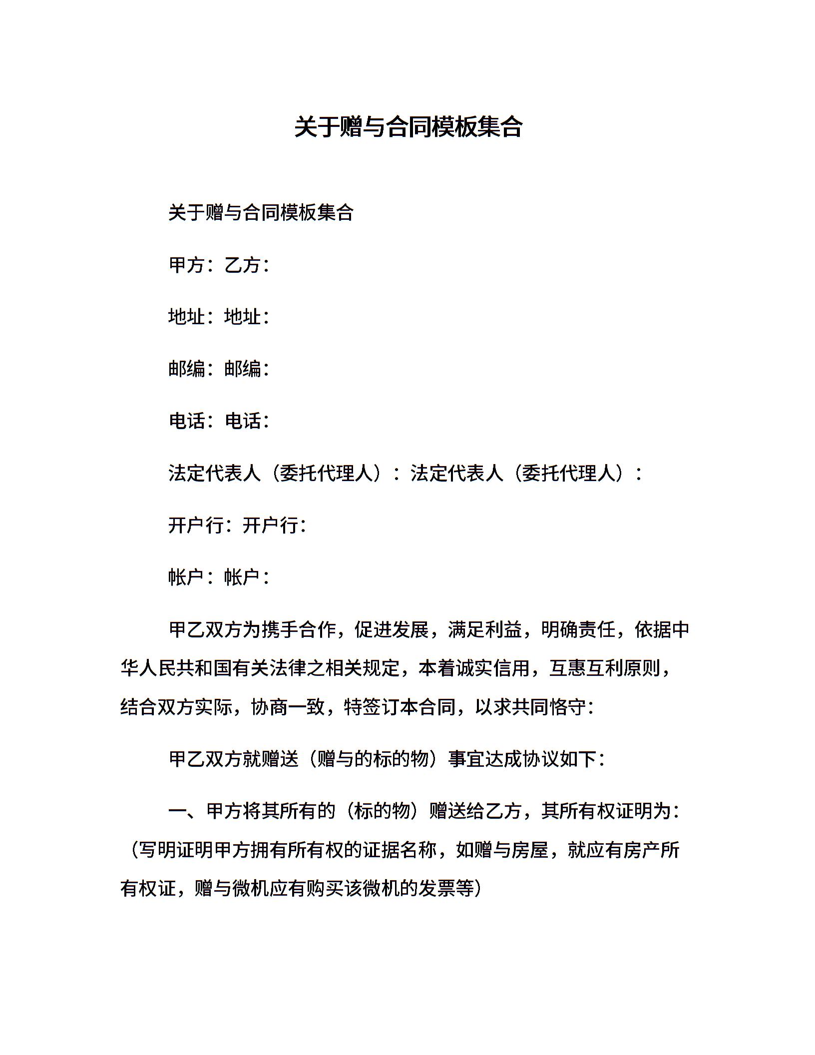 关于赠与合同模板集合