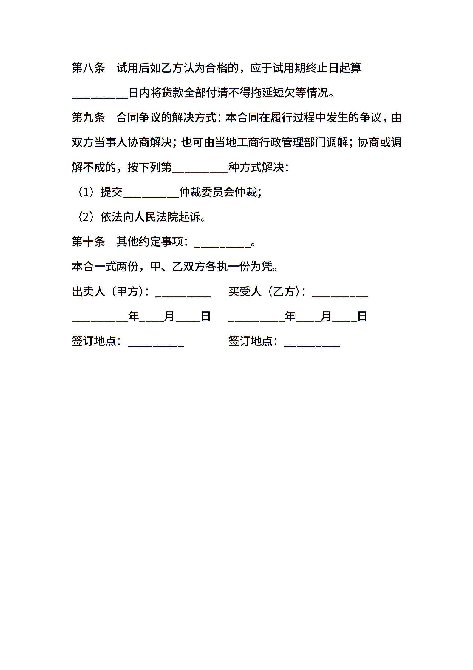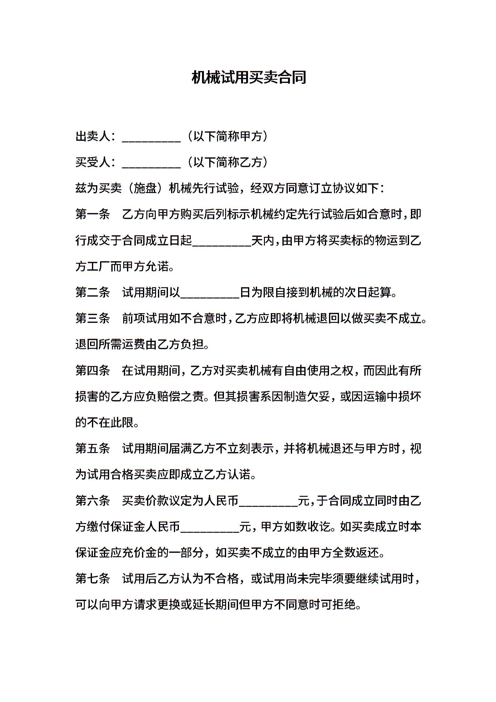 机械试用买卖合同