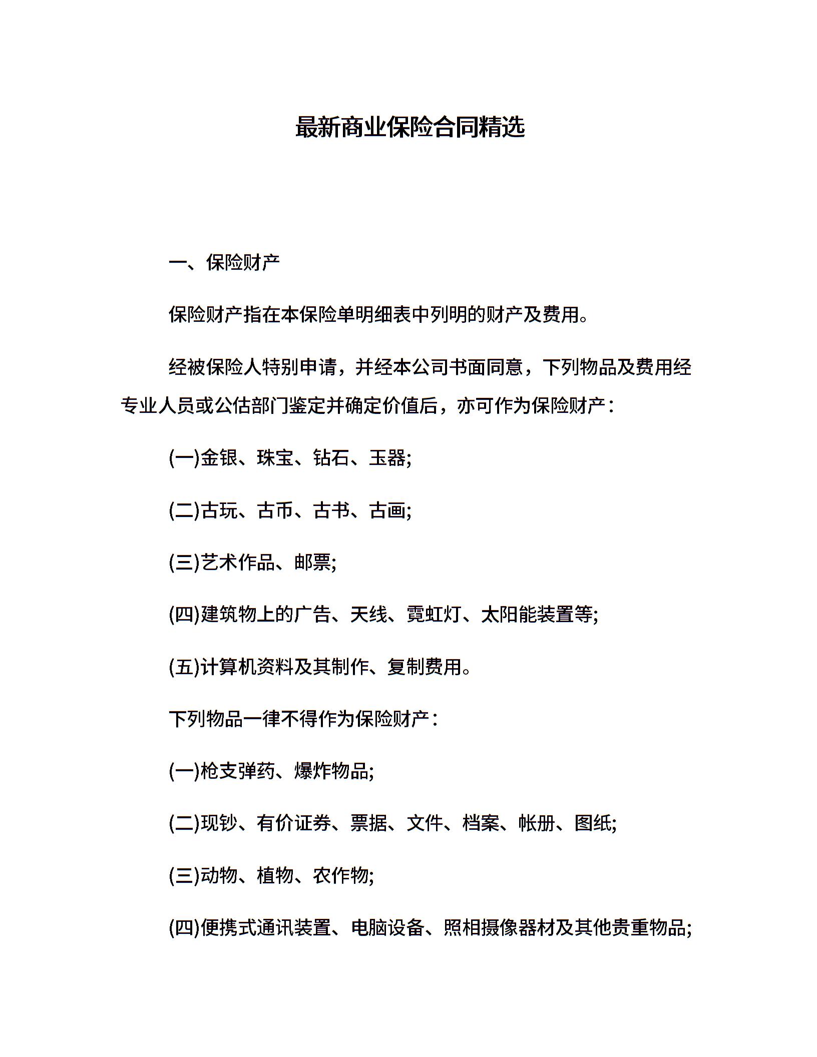 最新商业保险合同精选
