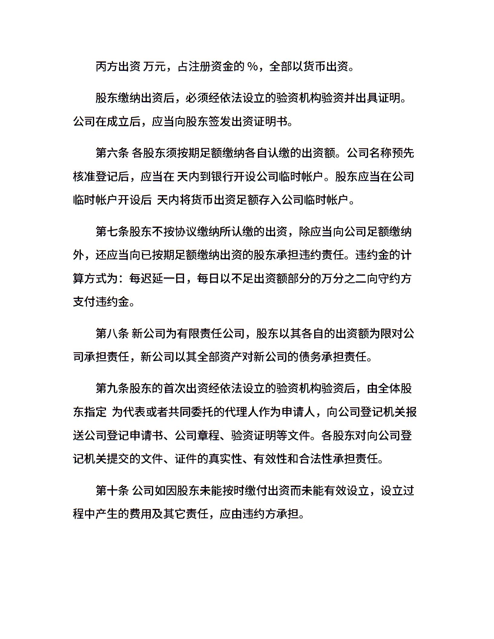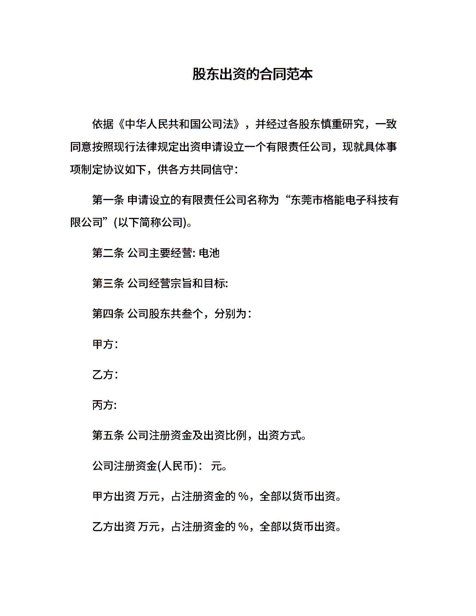 股东出资的合同范本
