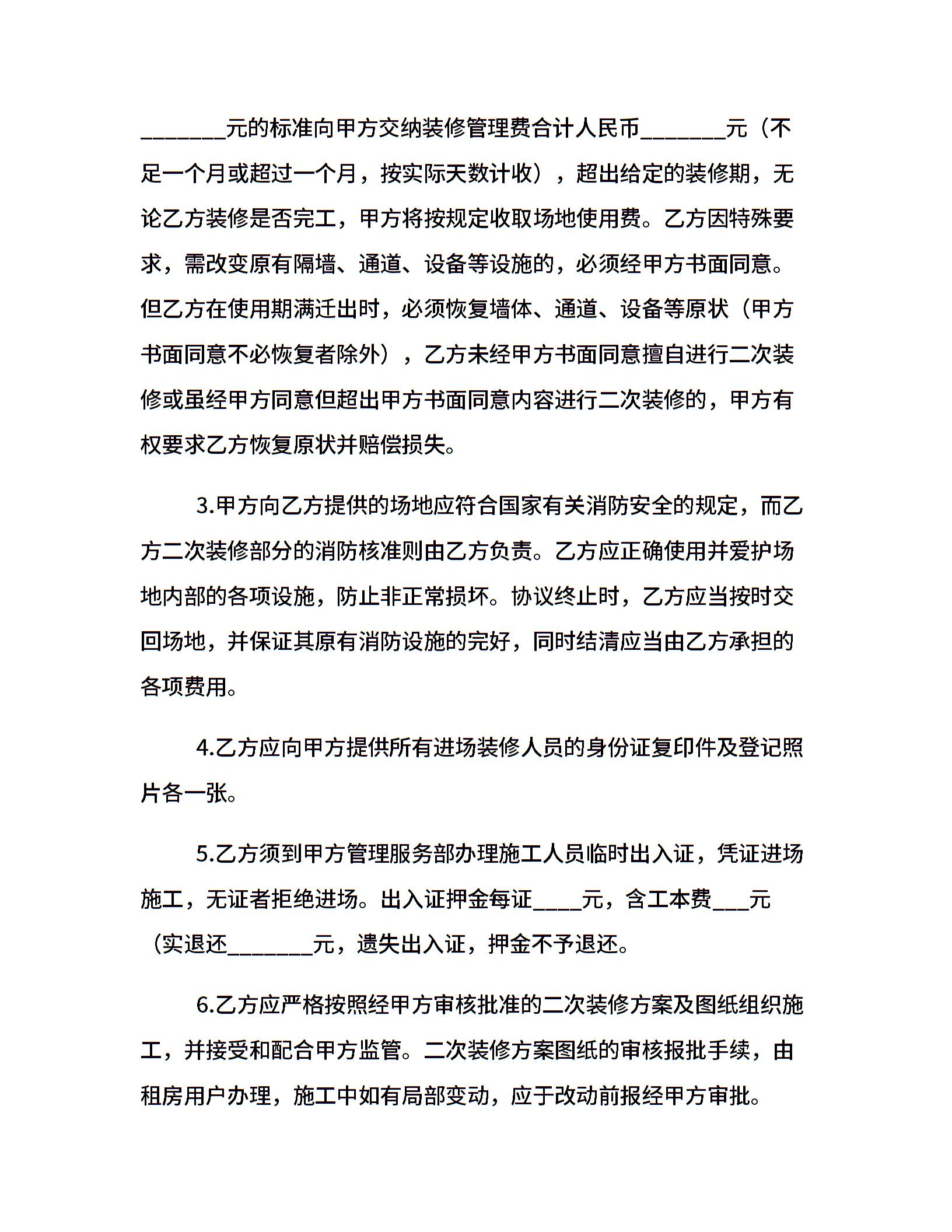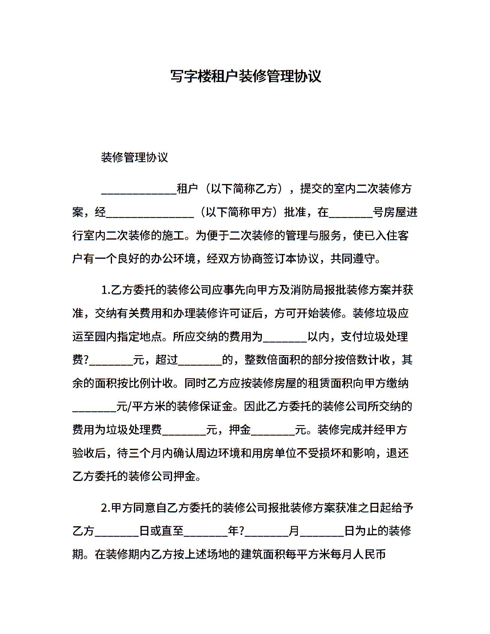 写字楼租户装修管理协议