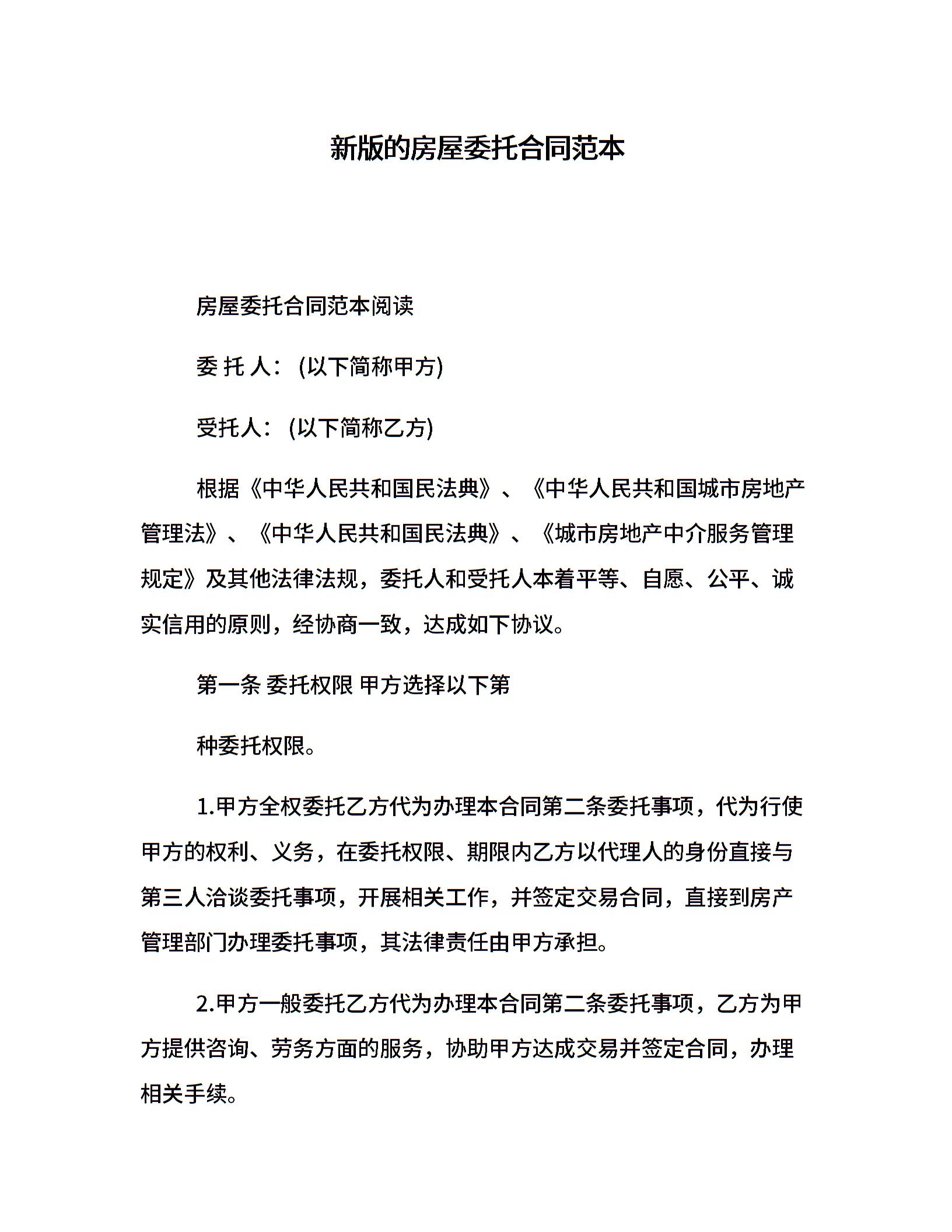 新版的房屋委托合同范本
