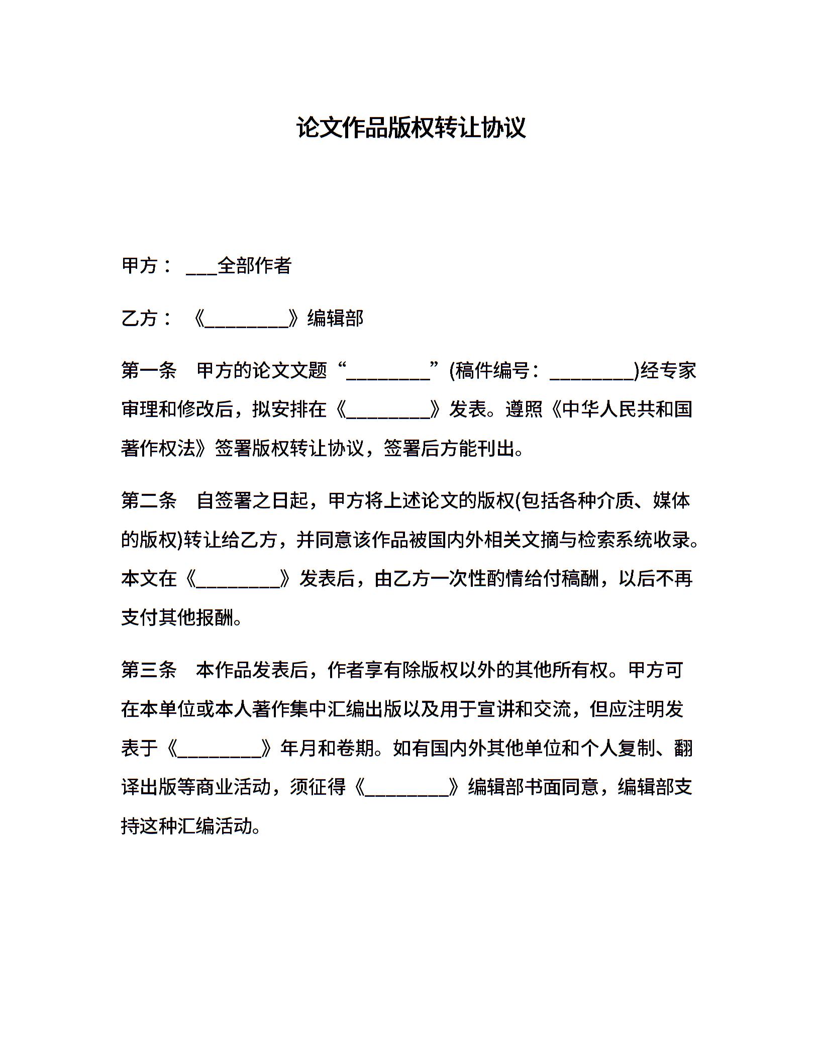 论文作品版权转让协议