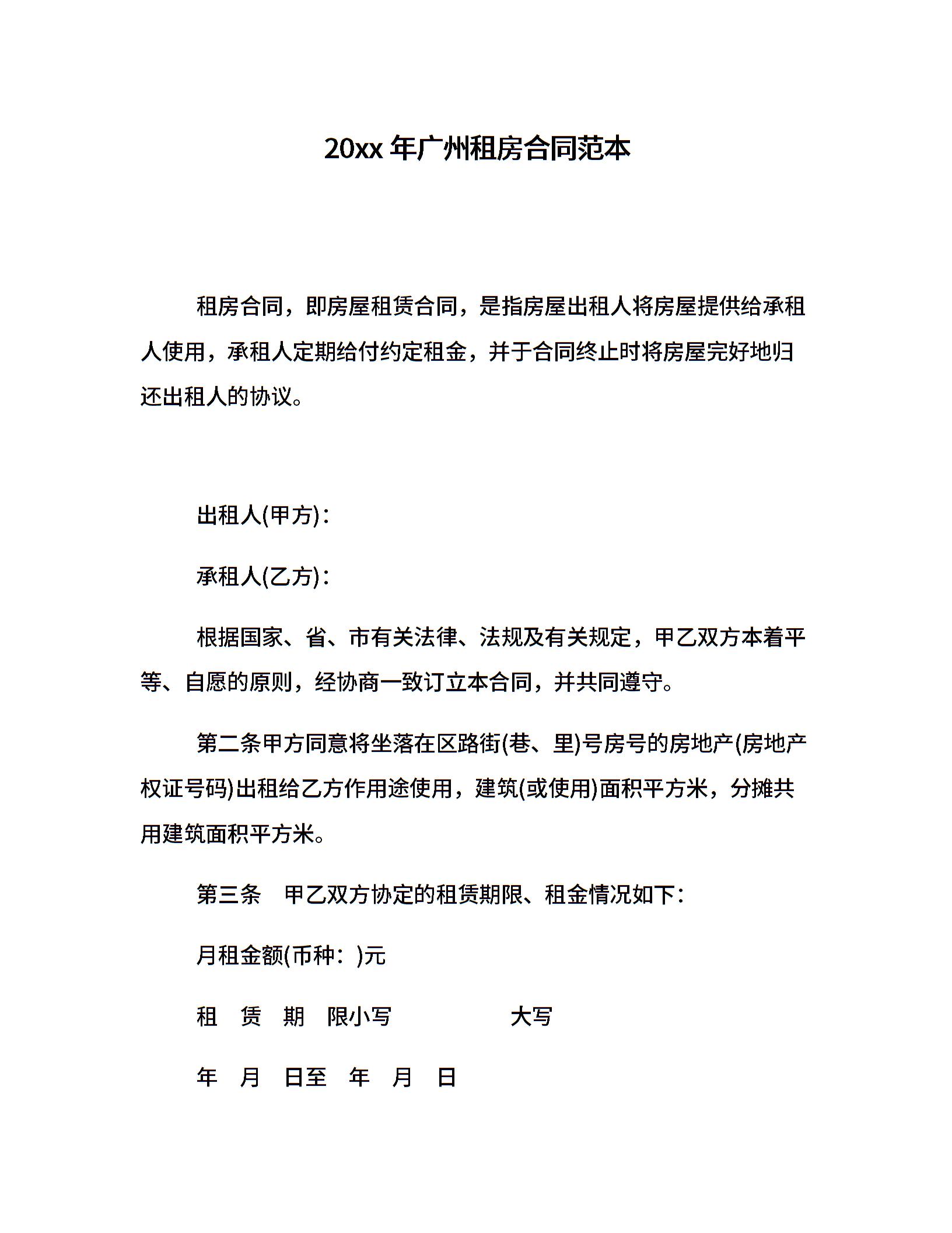20xx年广州租房合同范本