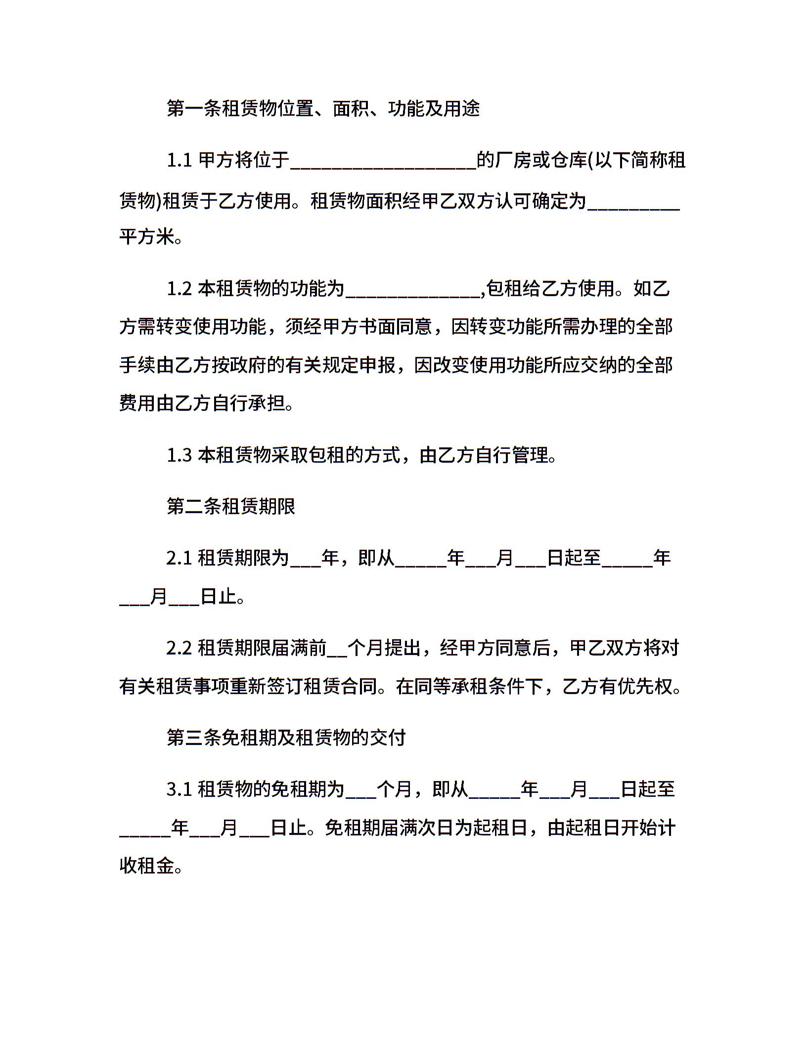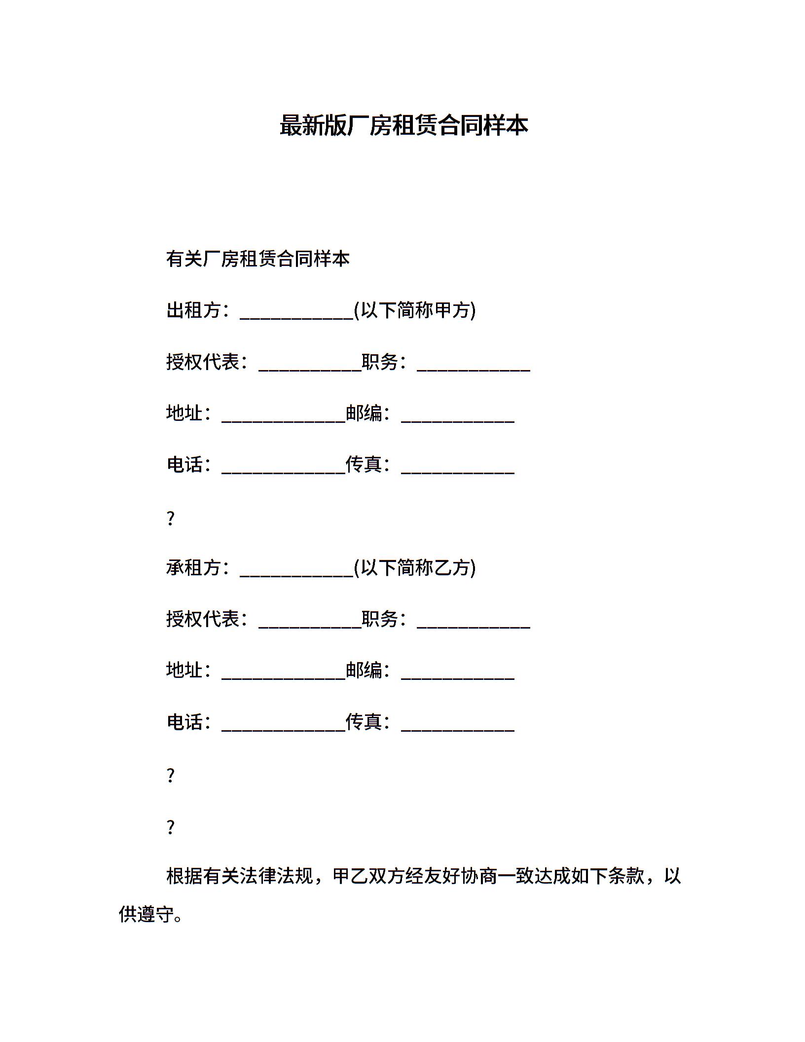 最新版厂房租赁合同样本