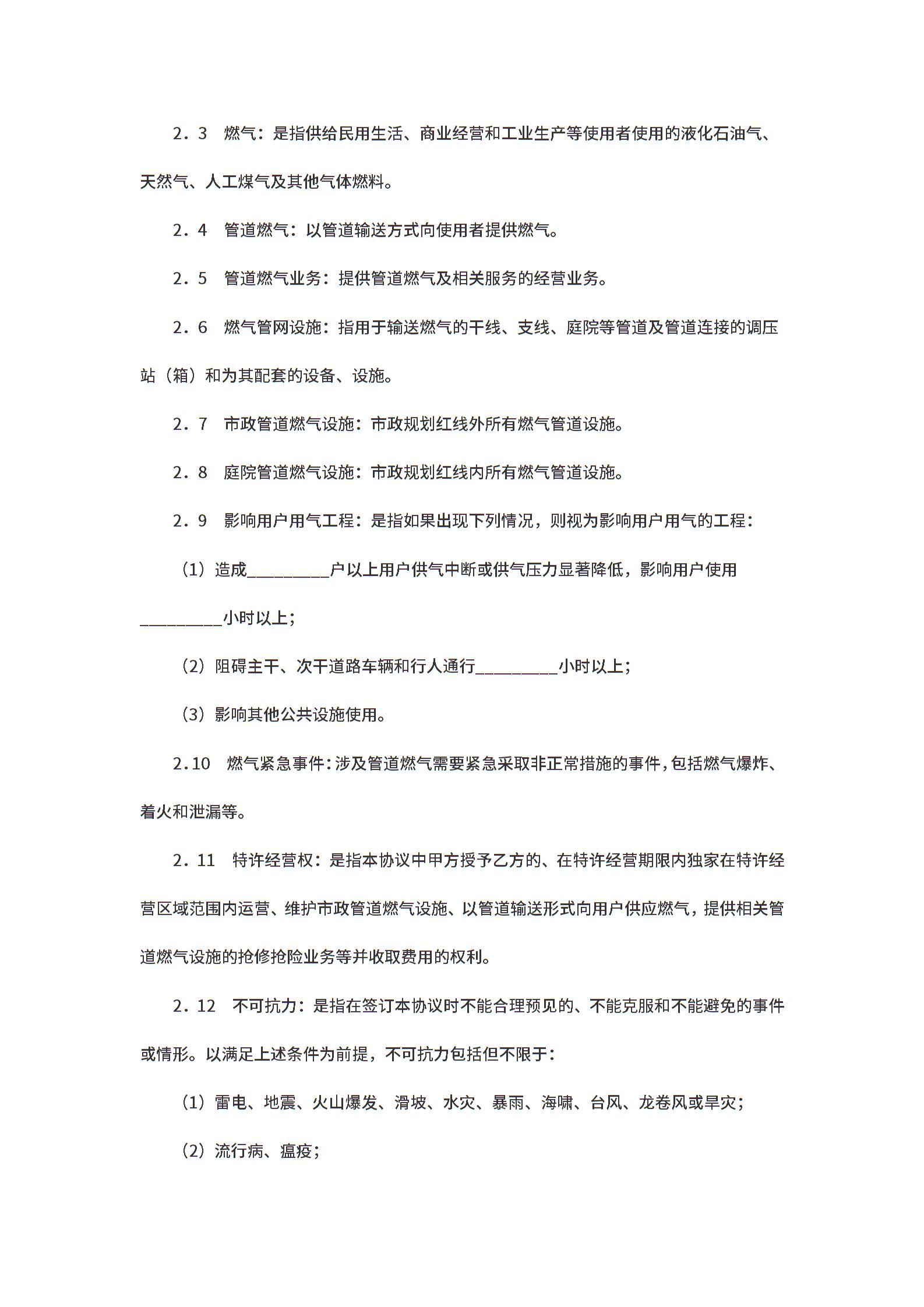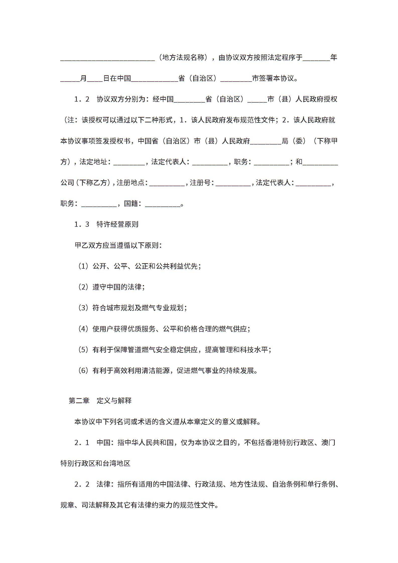 城市管道燃气特许经营协议(示范文本GF-2004-2502)