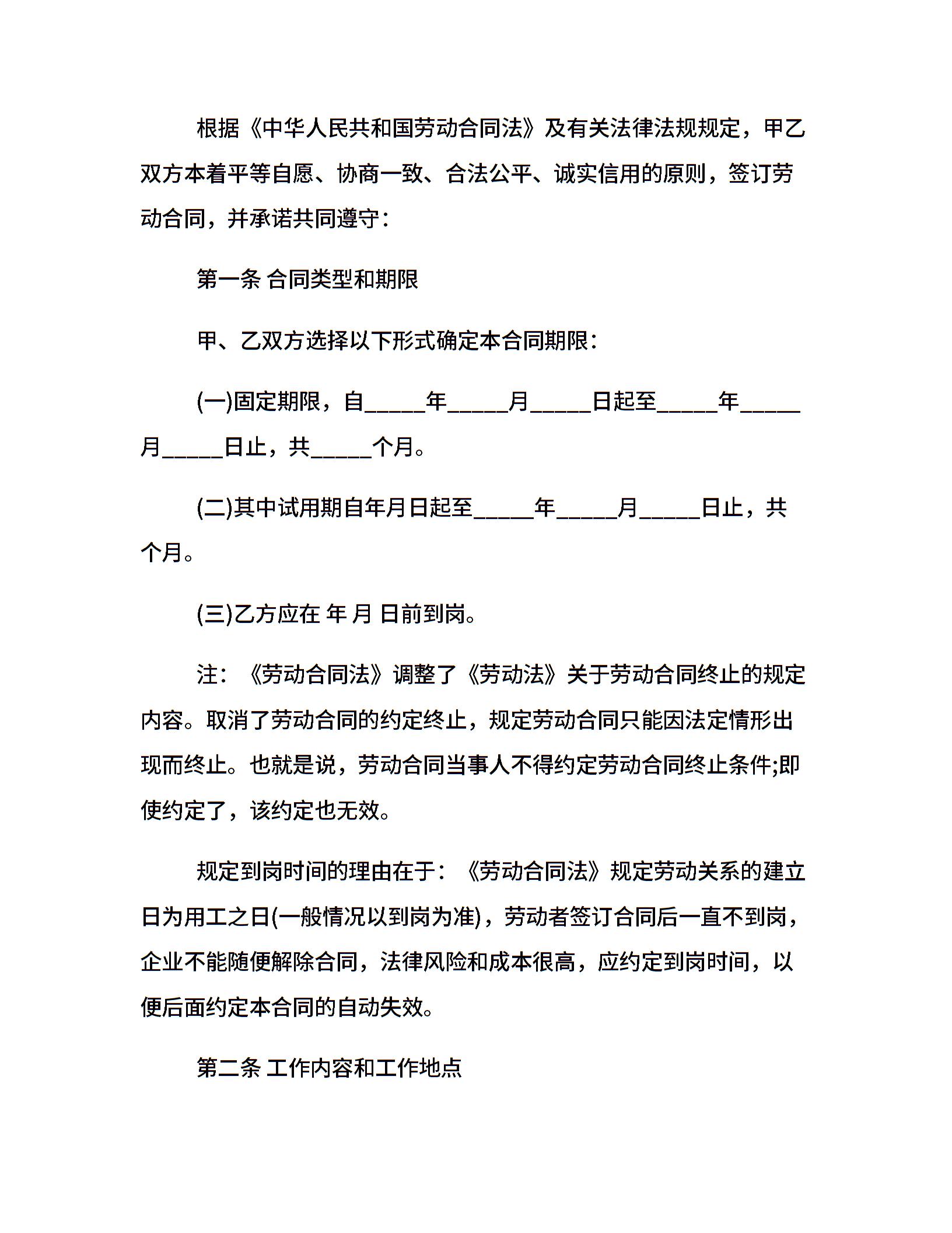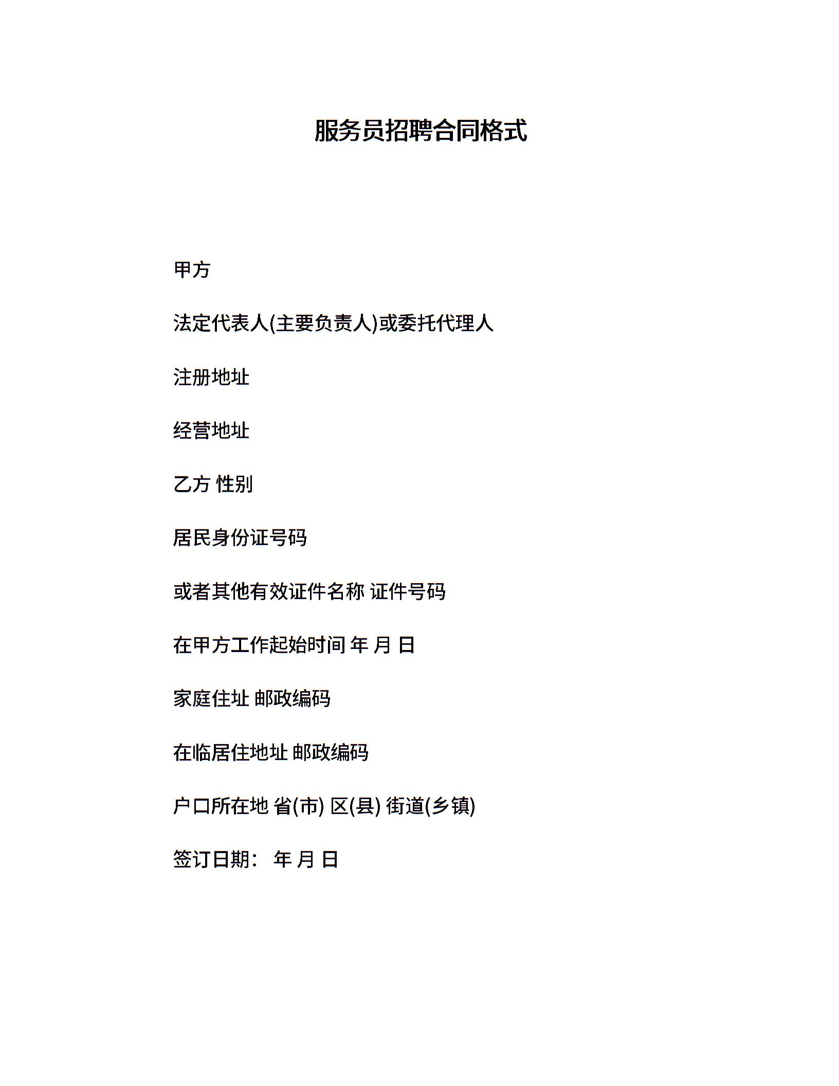 服务员招聘合同格式