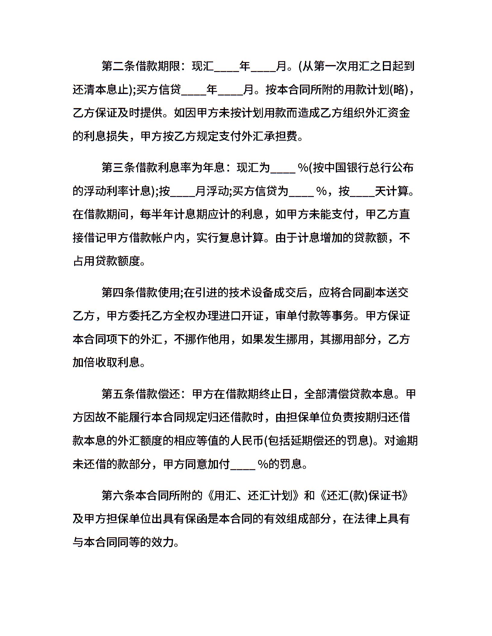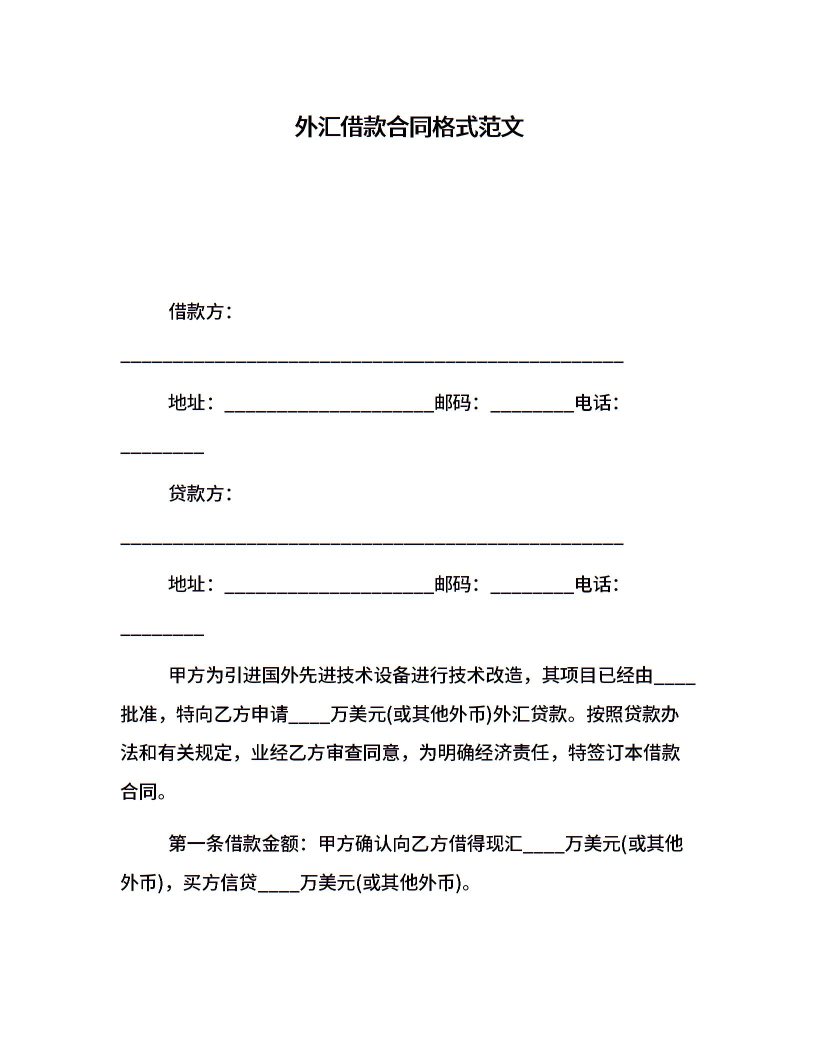 外汇借款合同格式范文
