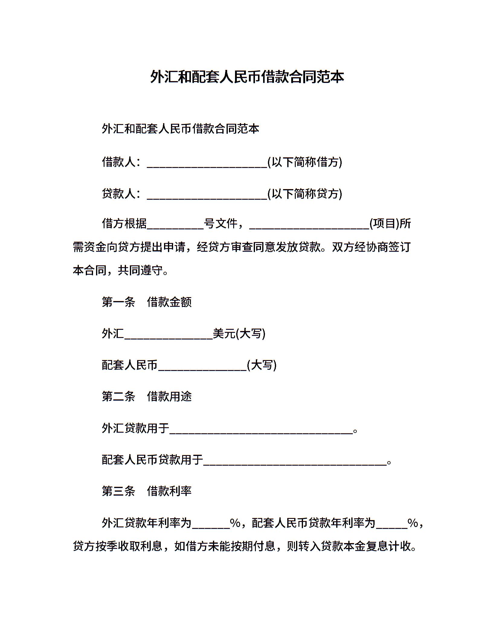 外汇和配套人民币借款合同范本