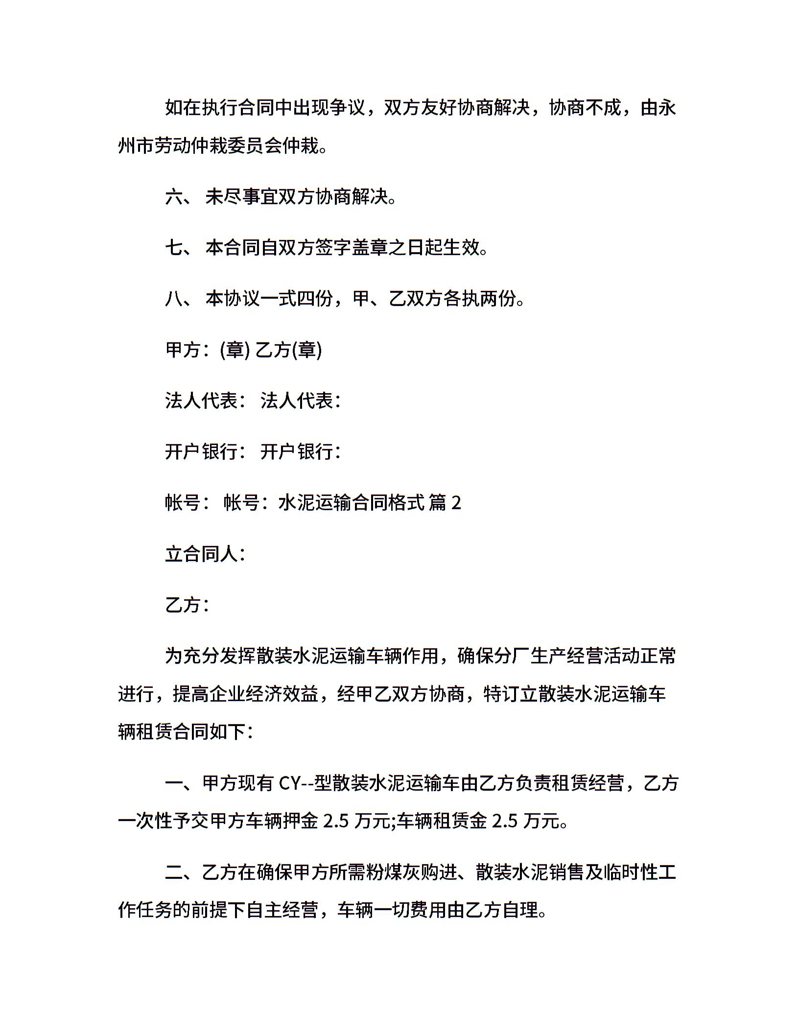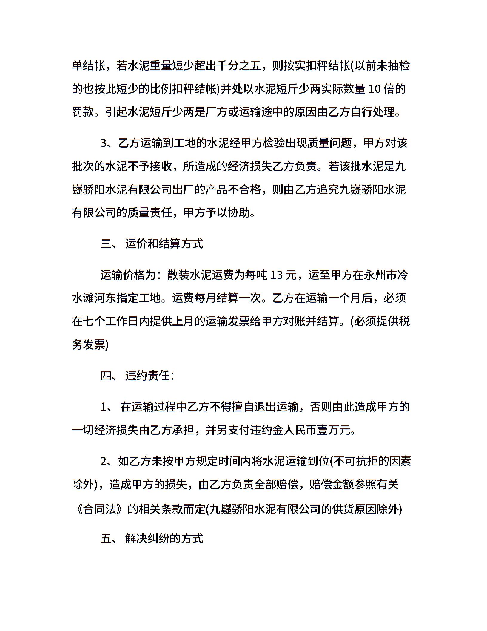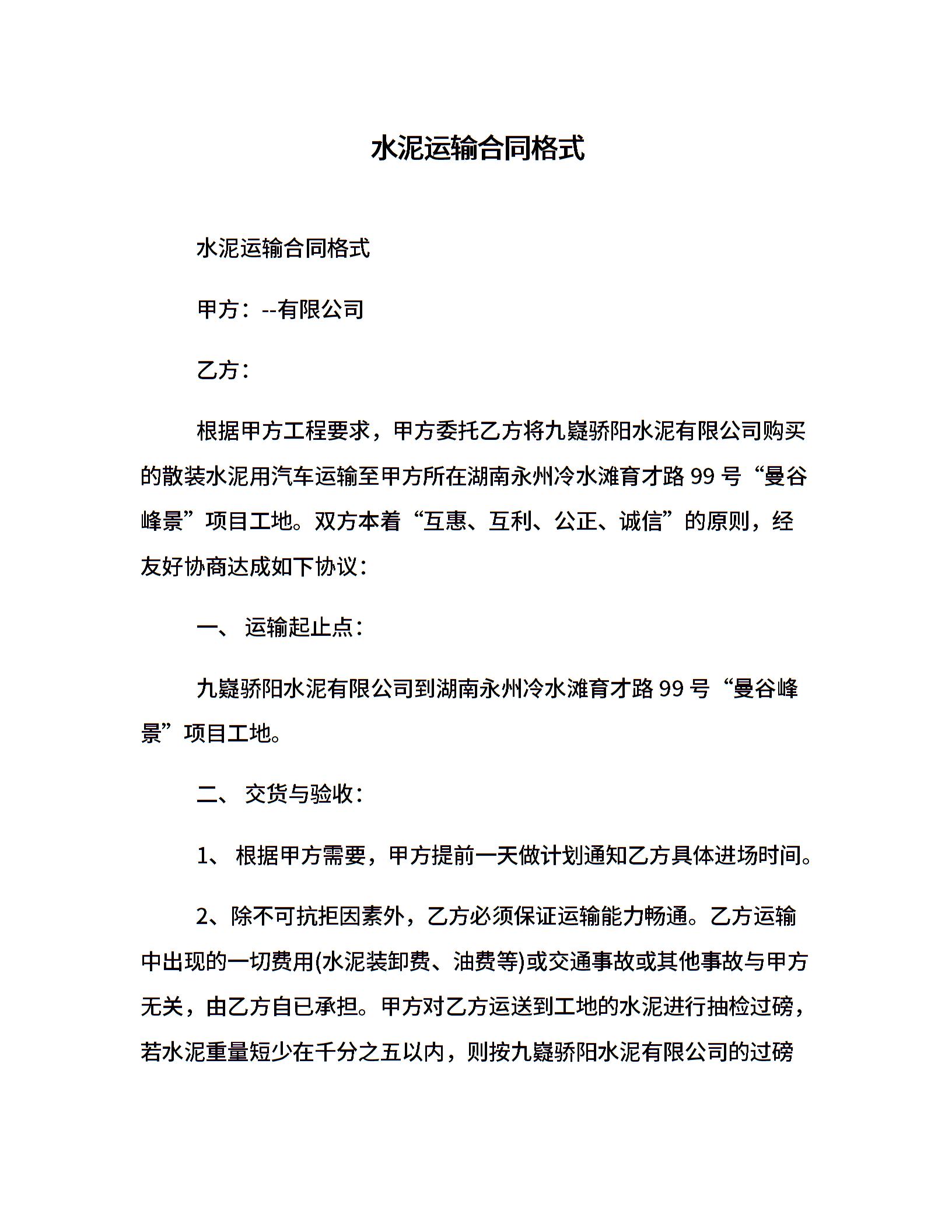 水泥运输合同格式