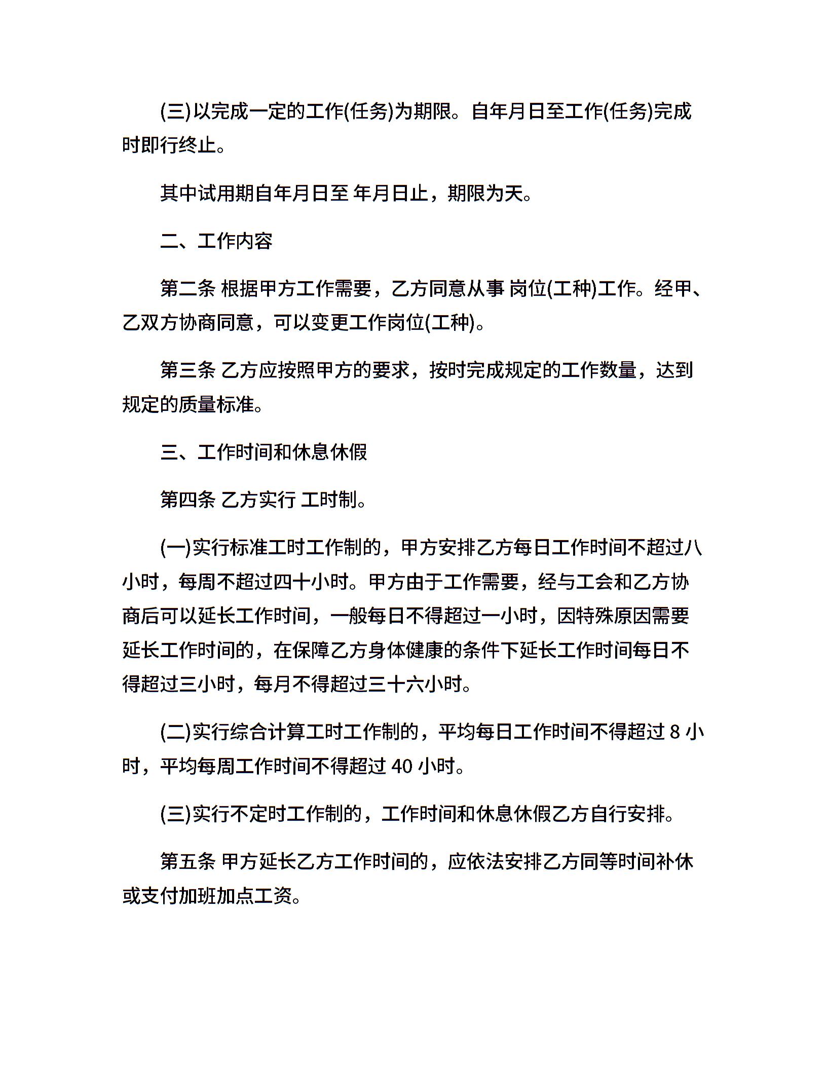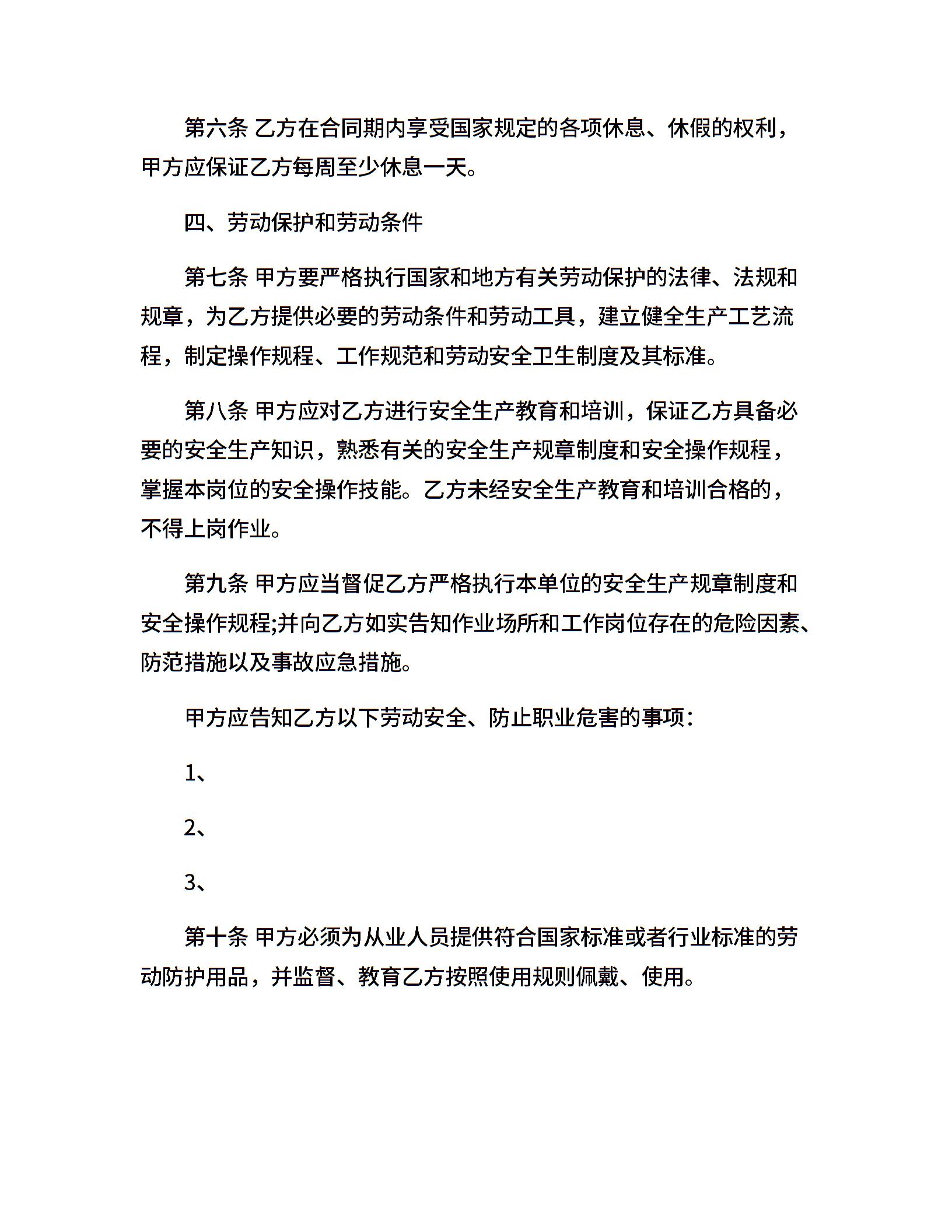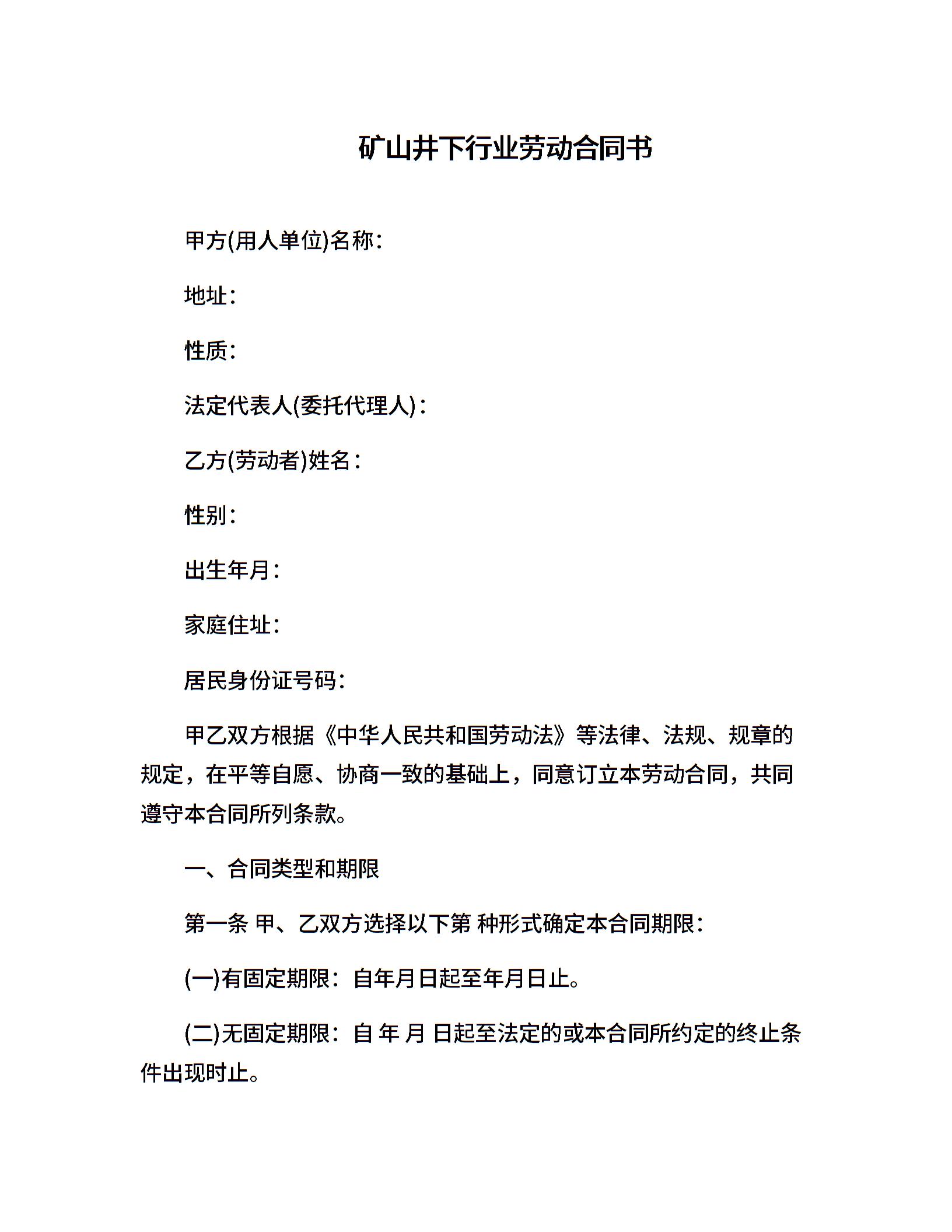 矿山井下行业劳动合同书
