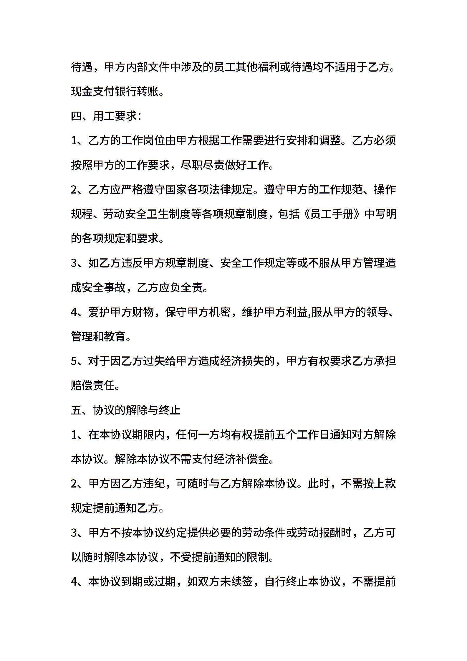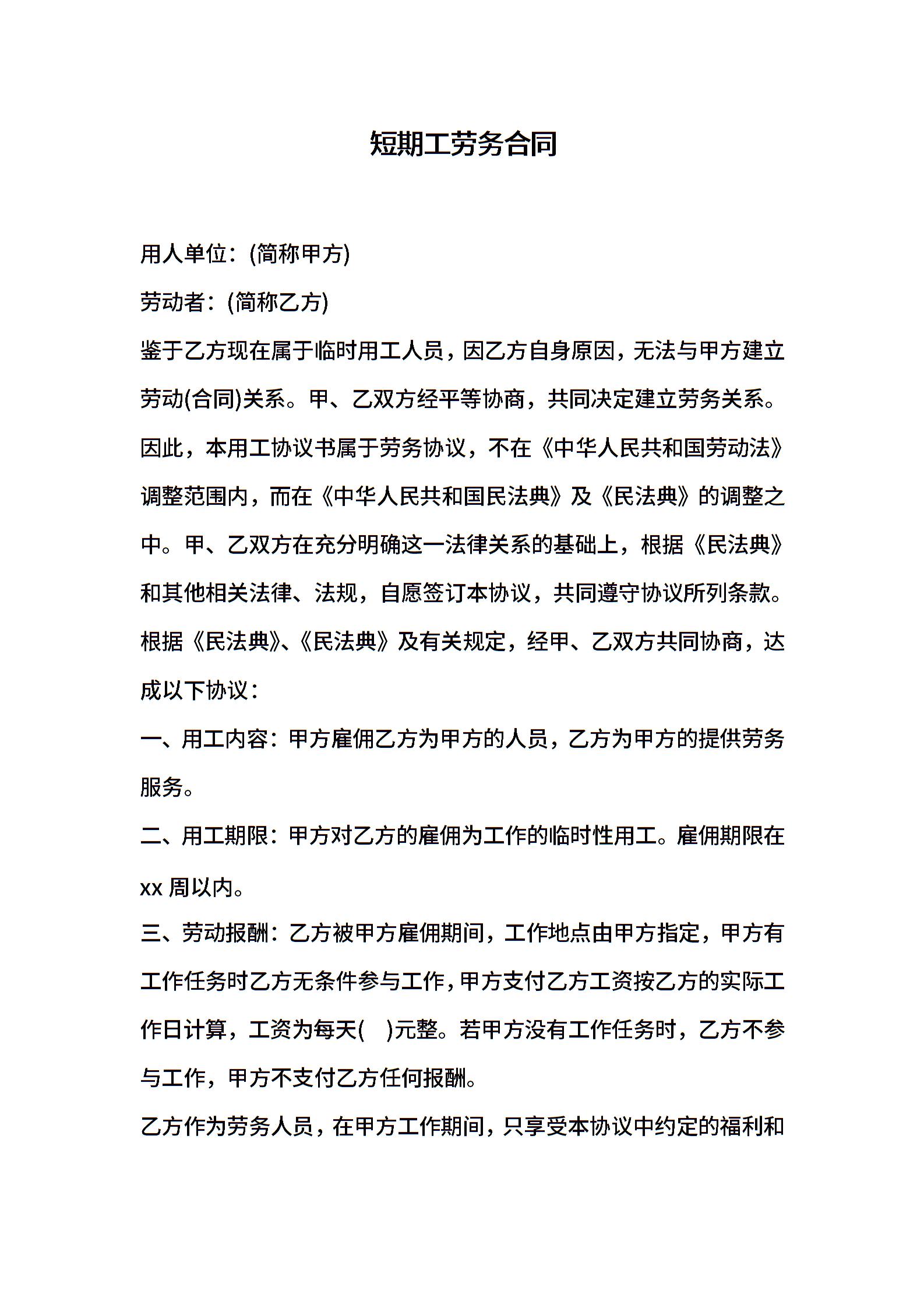 短期工劳务合同