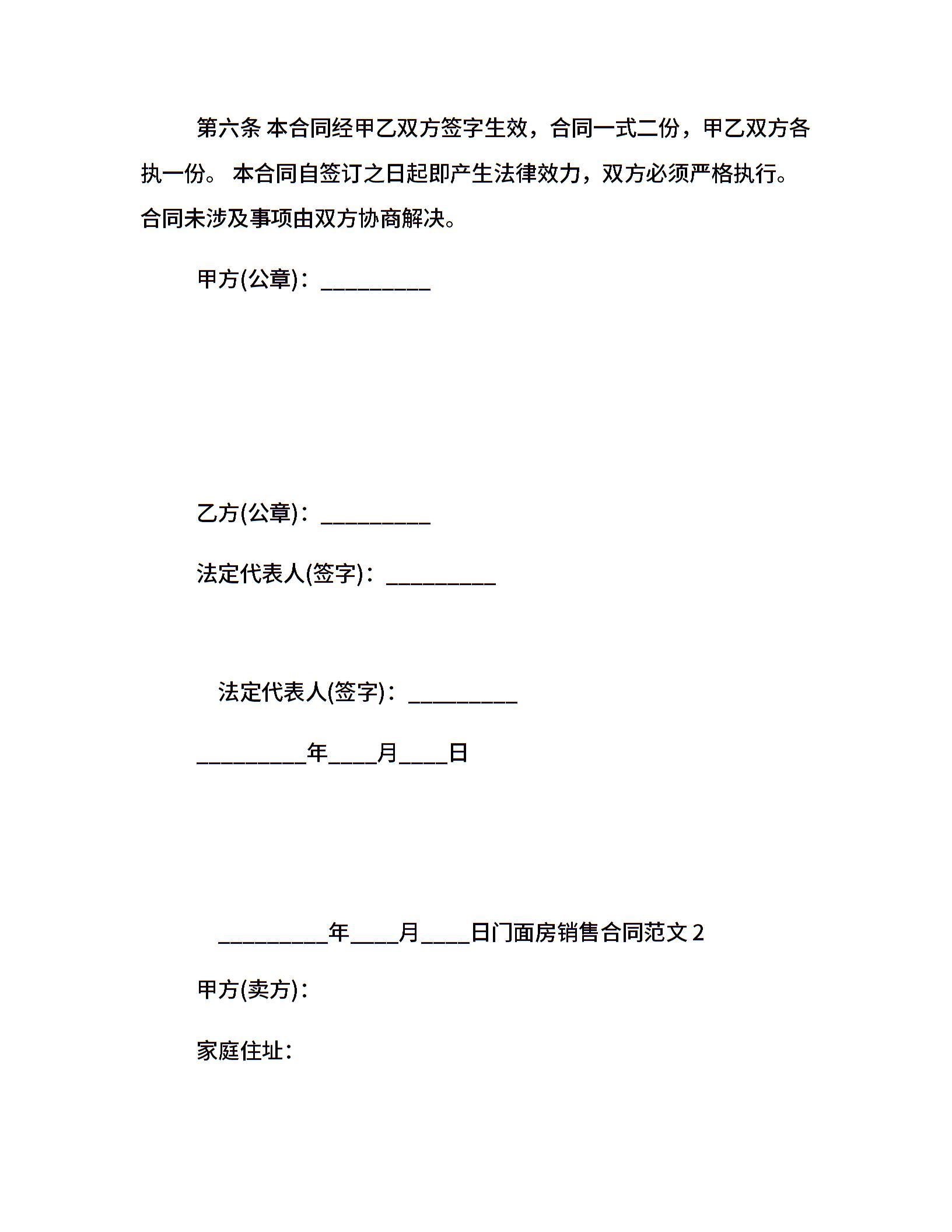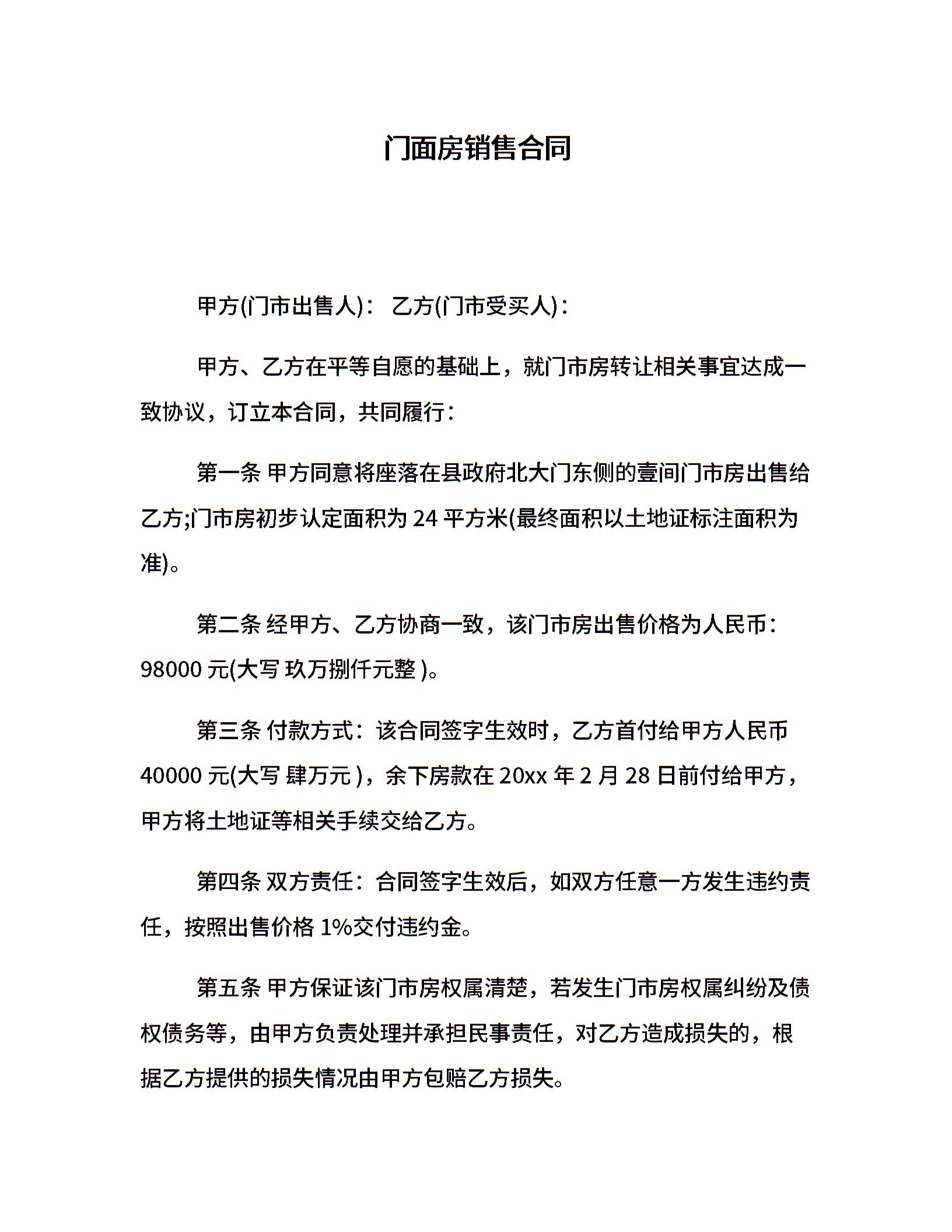 门面房销售合同