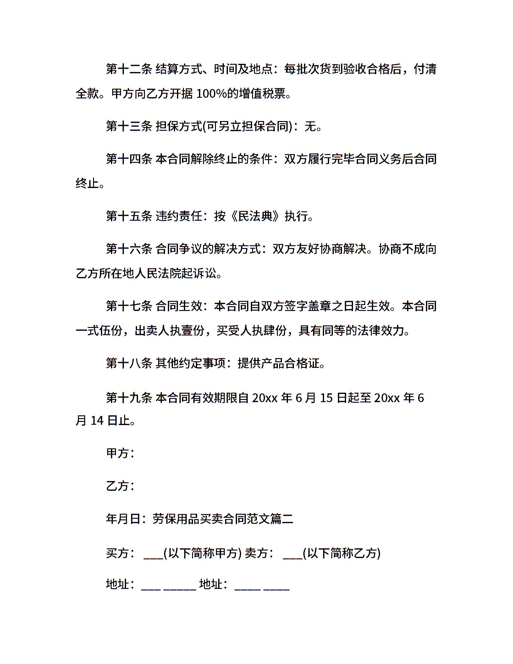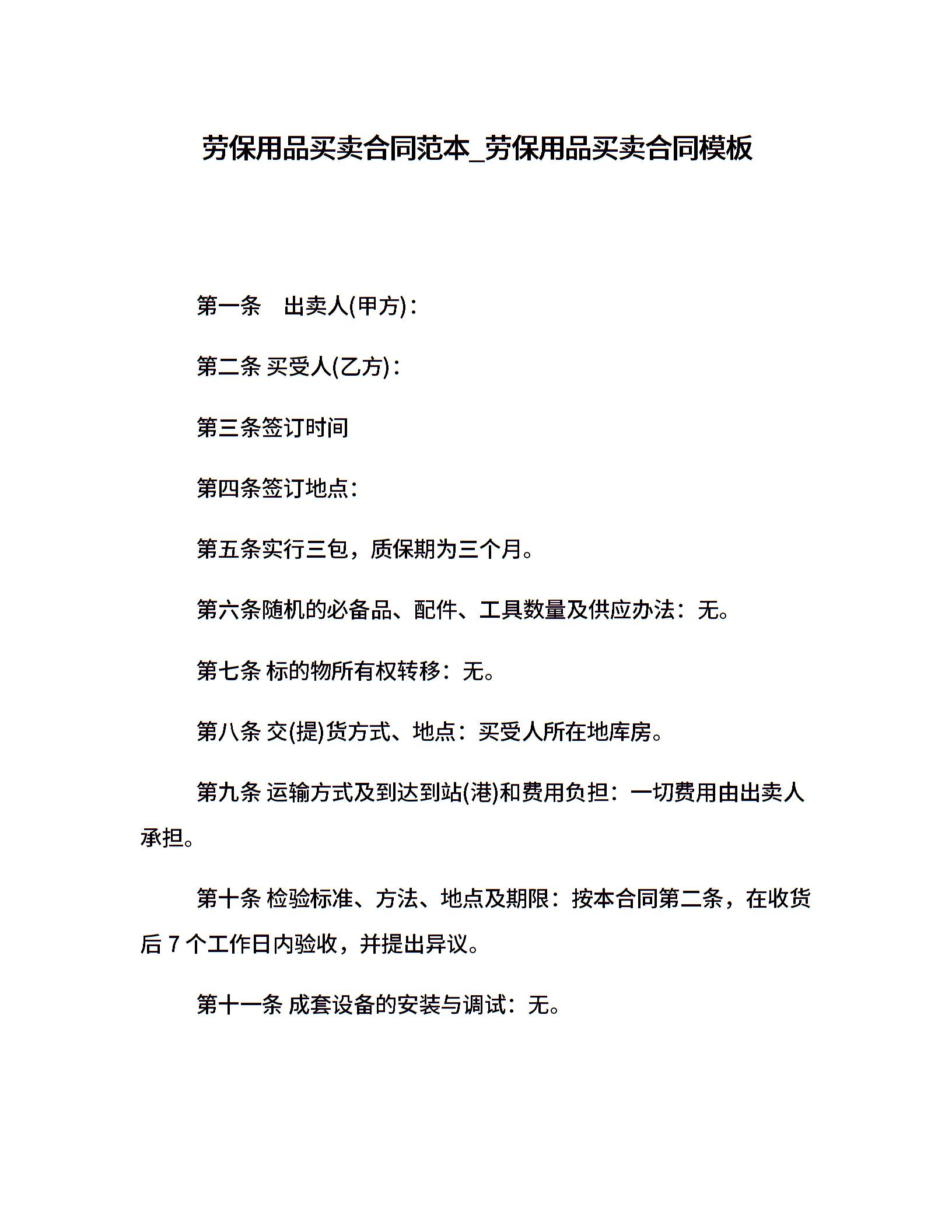 劳保用品买卖合同范本_劳保用品买卖合同模板