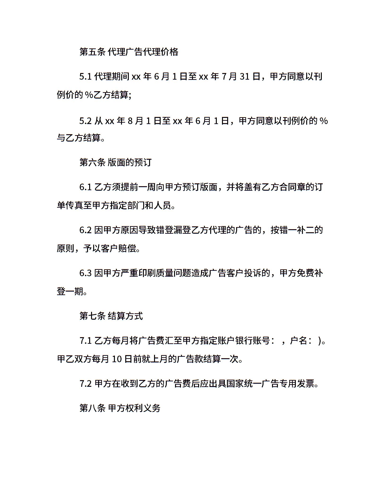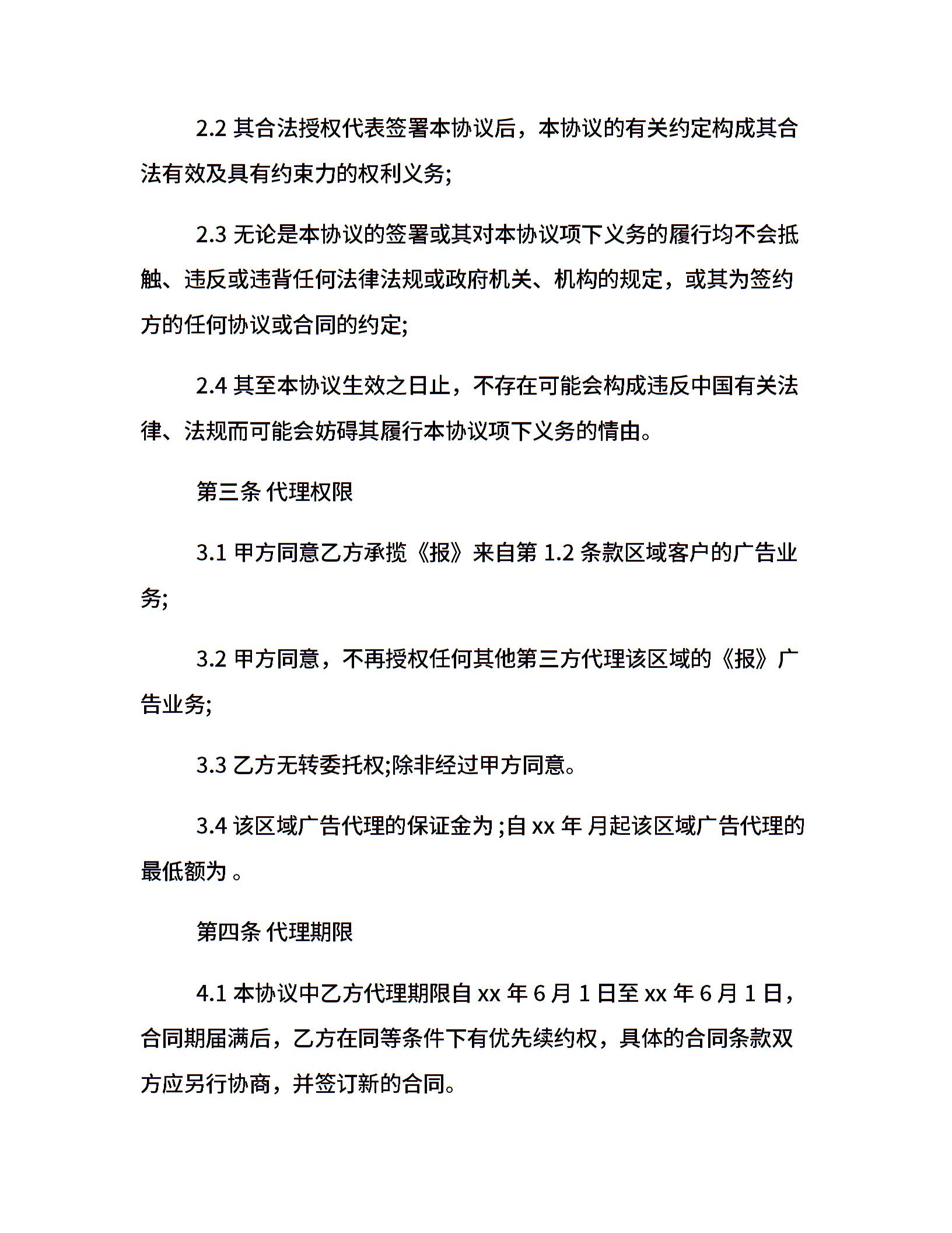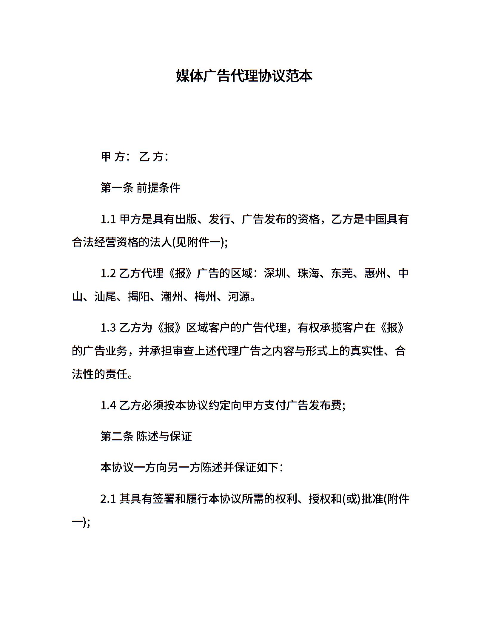 媒体广告代理协议范本