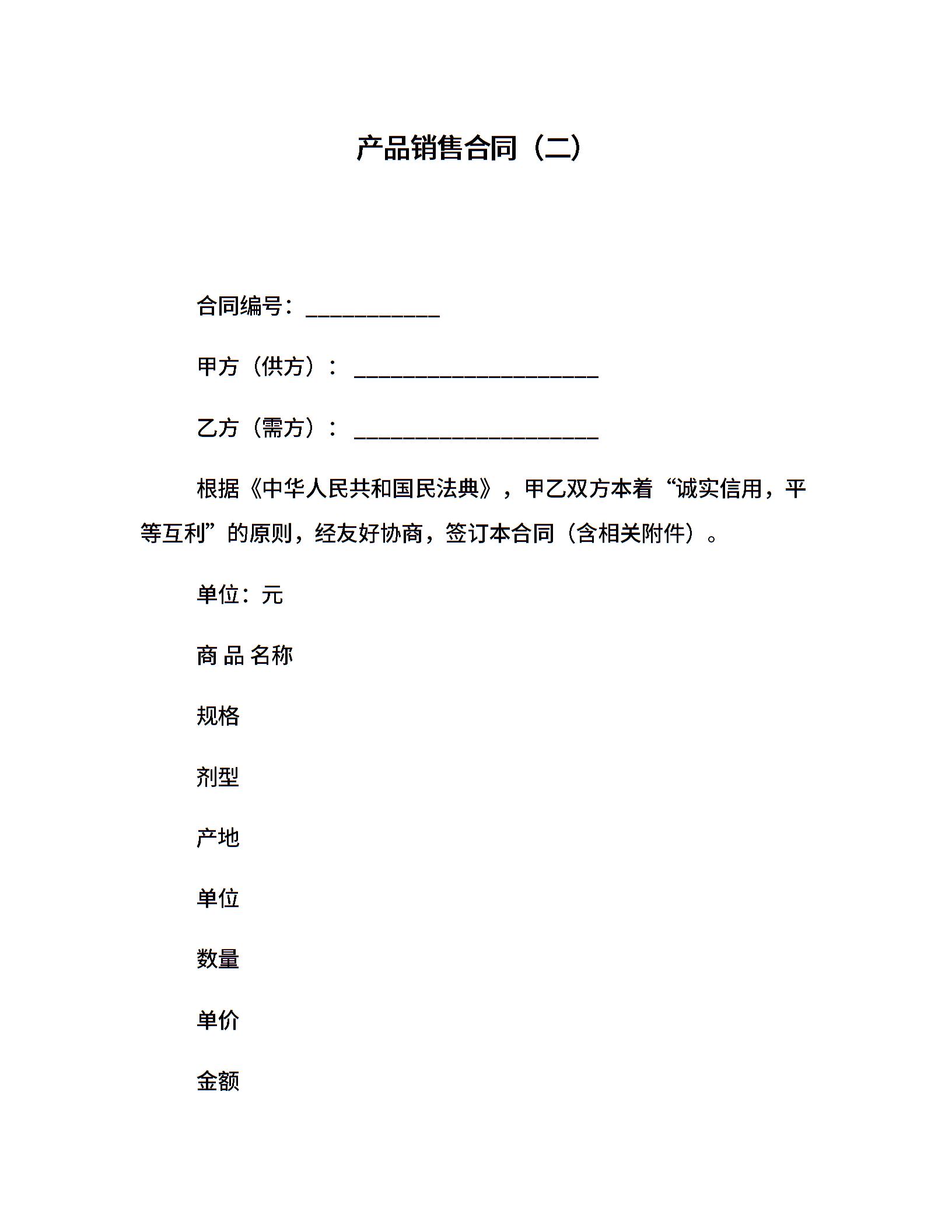 产品销售合同(二)