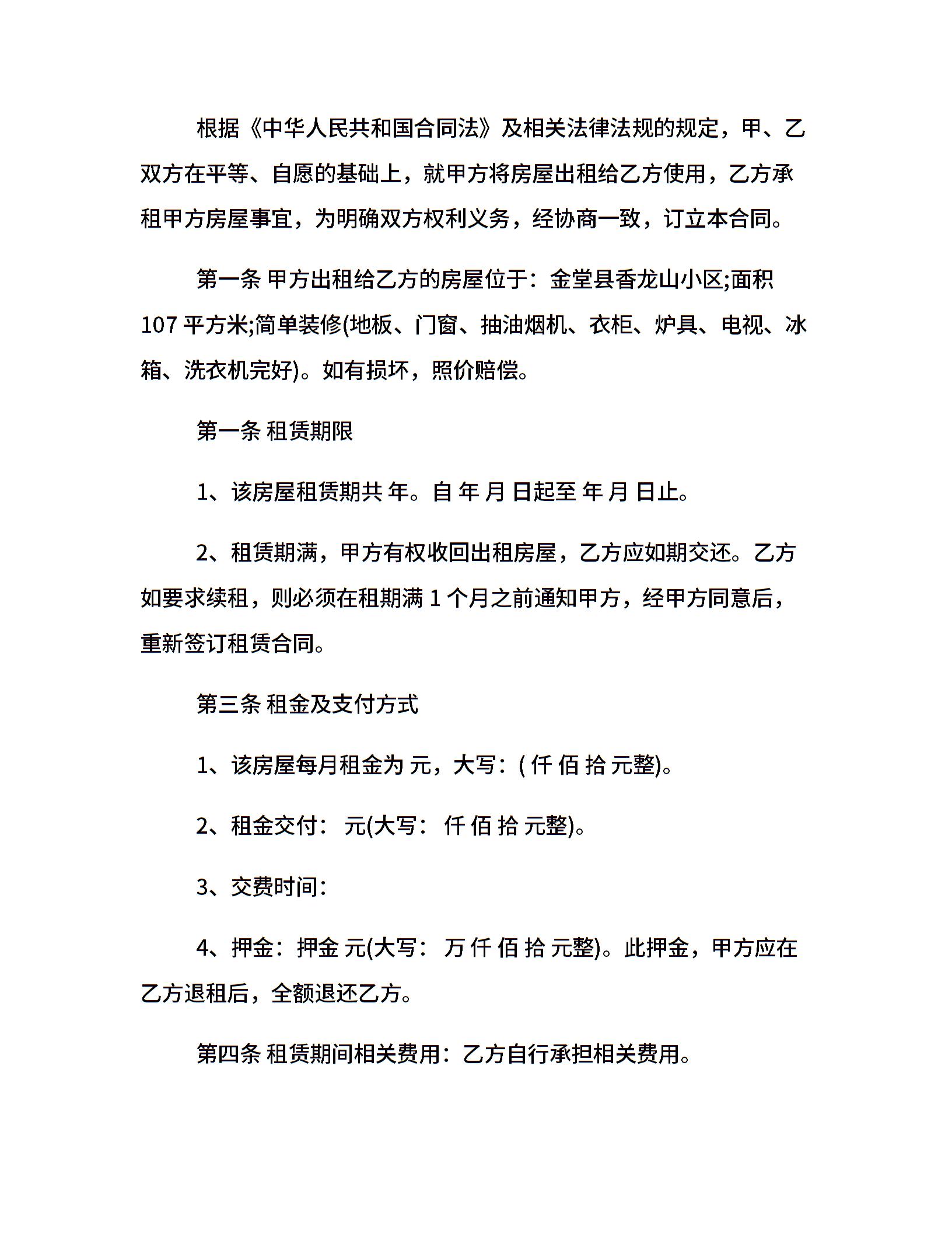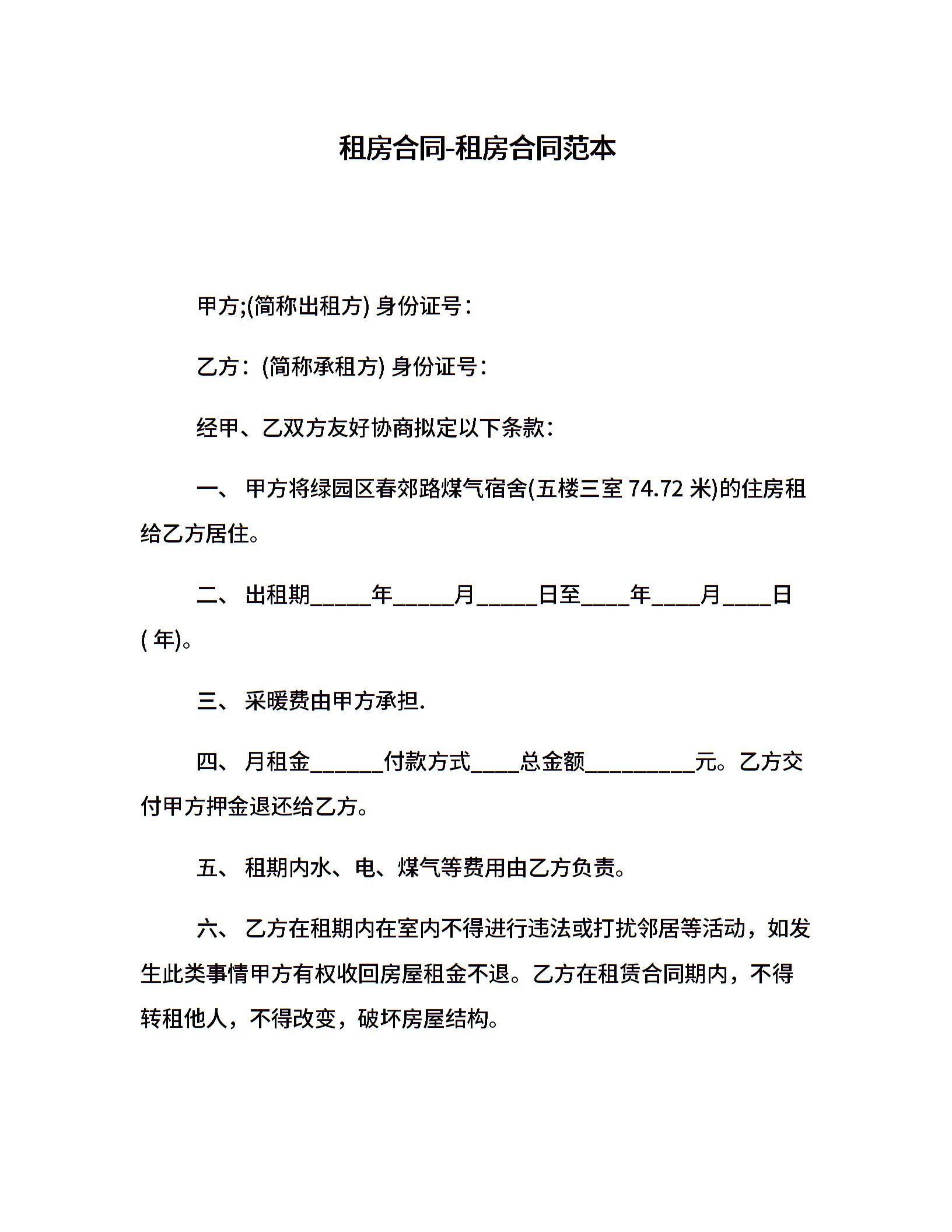租房合同-租房合同范本