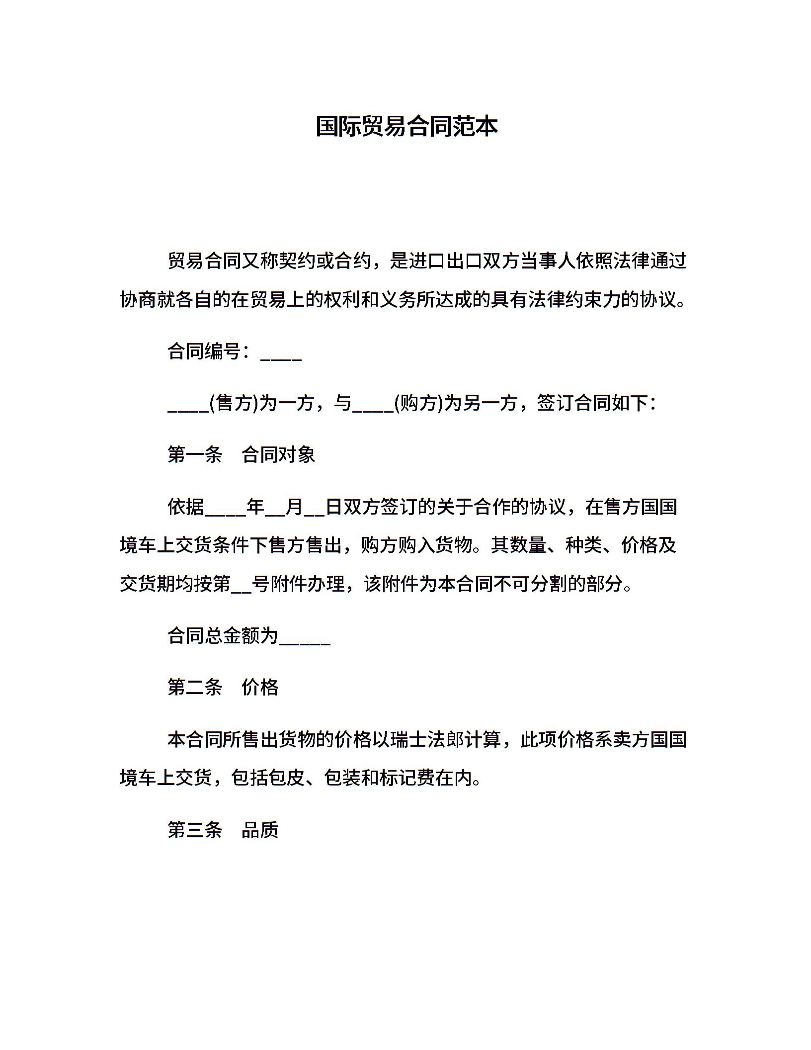 当前位置:量子办公 > 合同模板 > 贸易合同 >