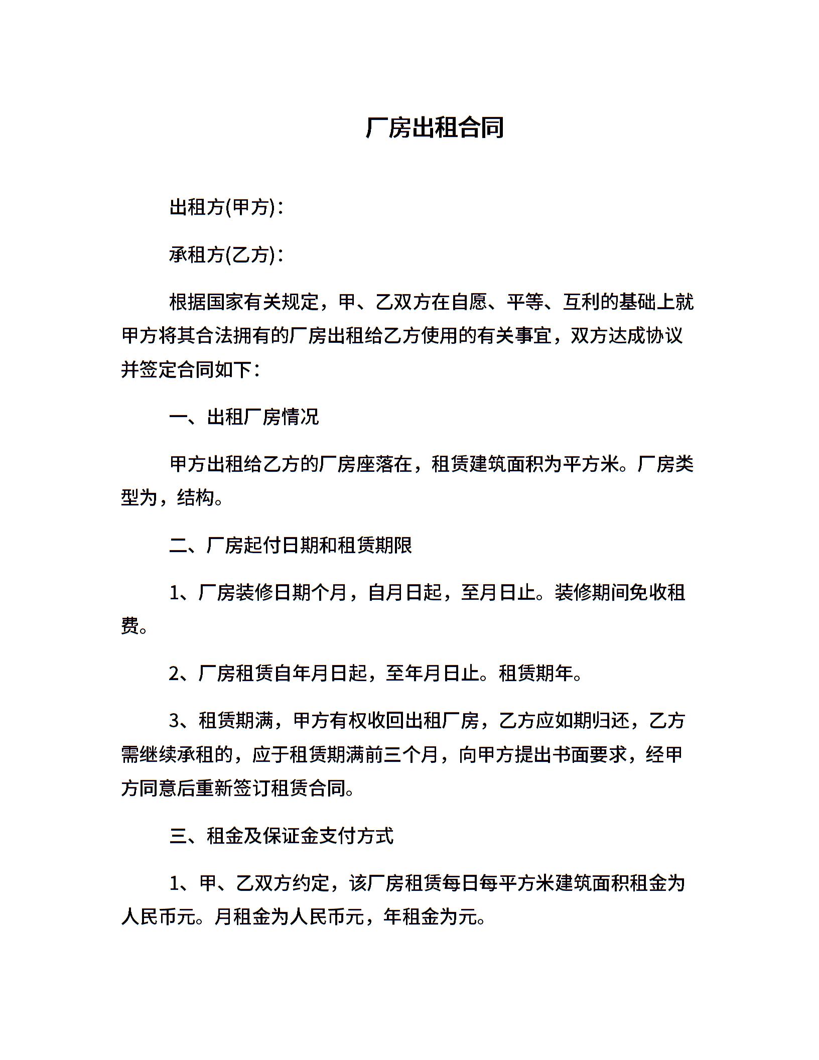 厂房出租合同