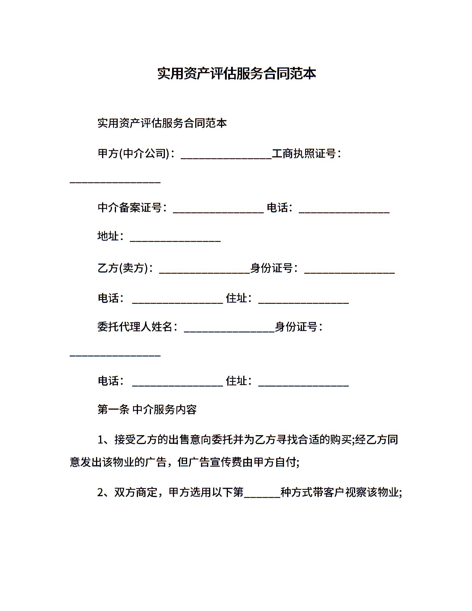 实用资产评估服务合同范本