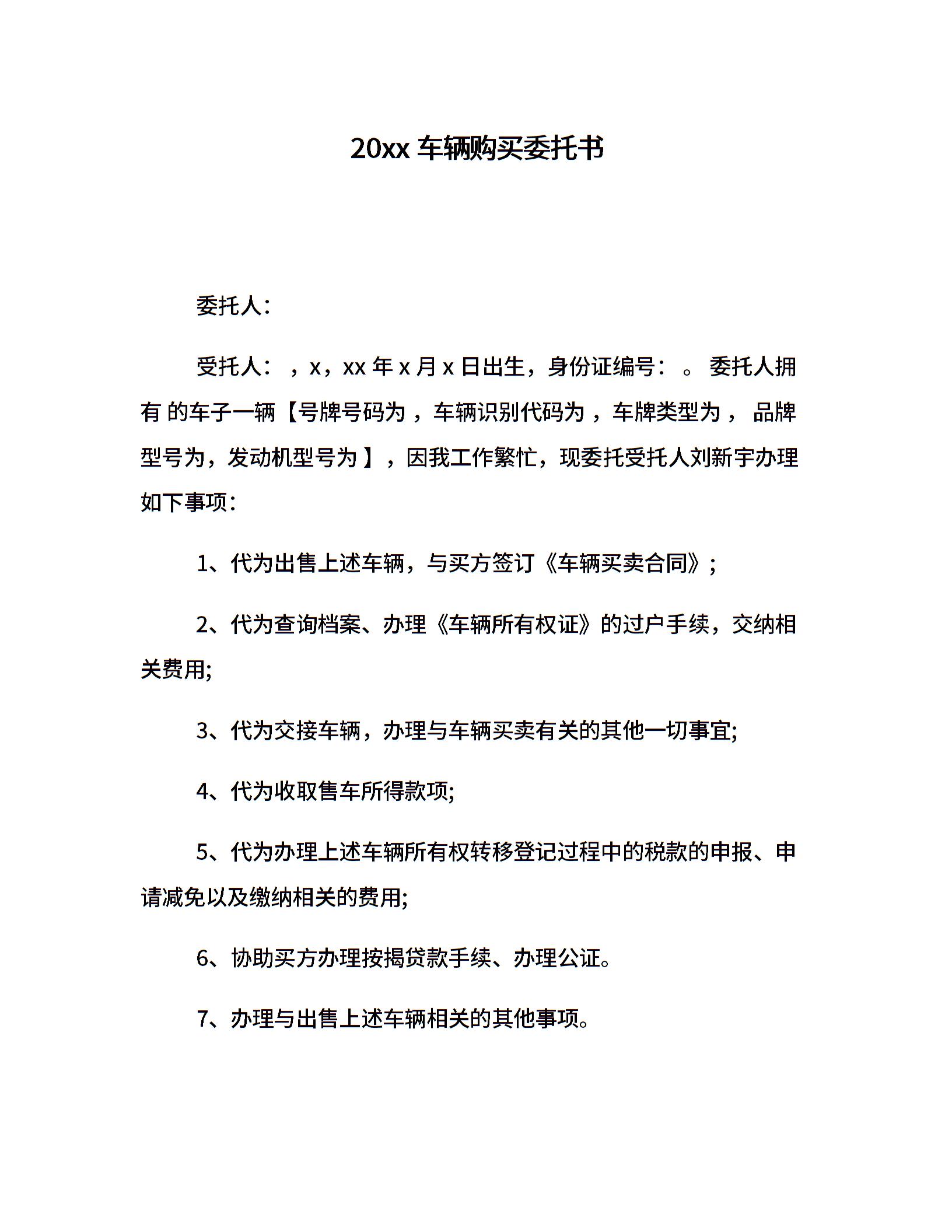 20xx车辆购买委托书