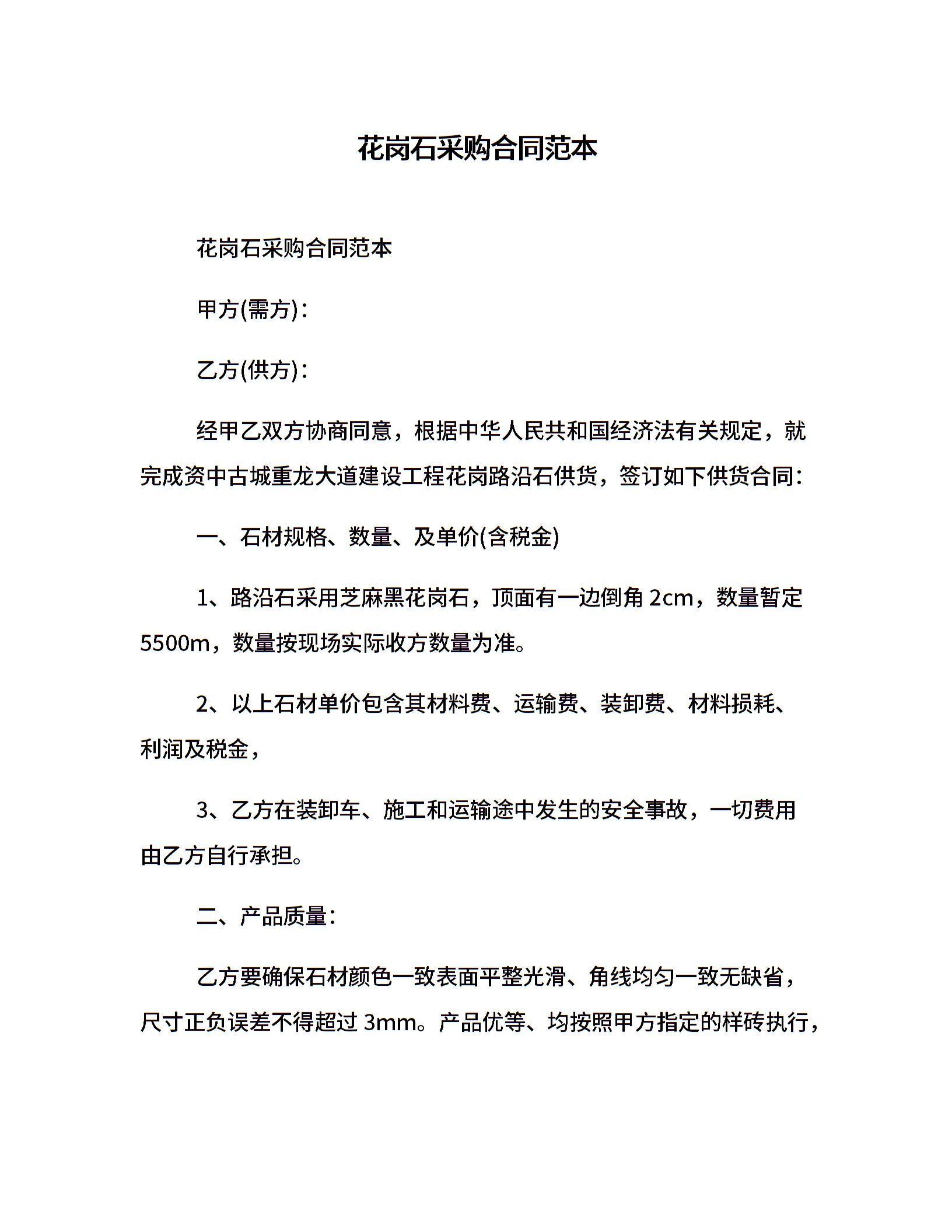 花岗石采购合同范本